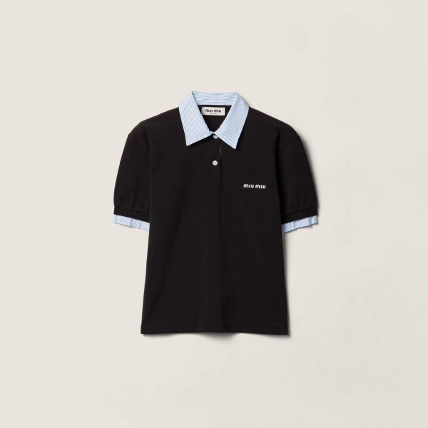 미우미우 자수 포플린 칼라 캐시미어 폴로