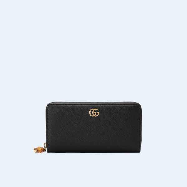 구찌 블랙레더 뱀부 지퍼 장지갑