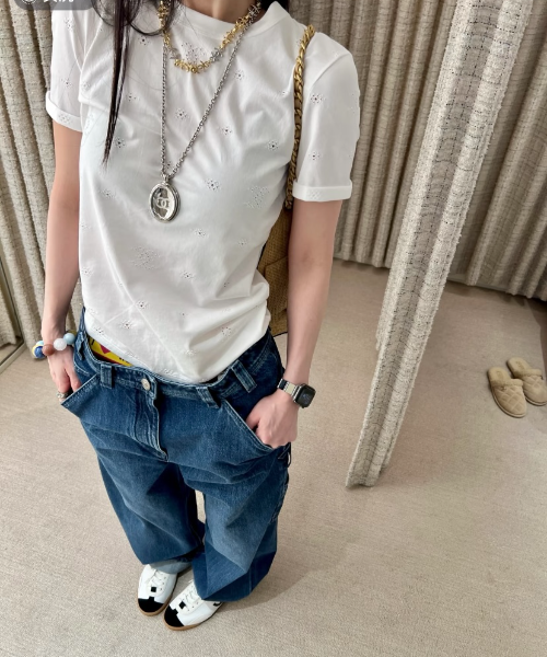 샤넬 플로럴 컷아웃 티셔츠