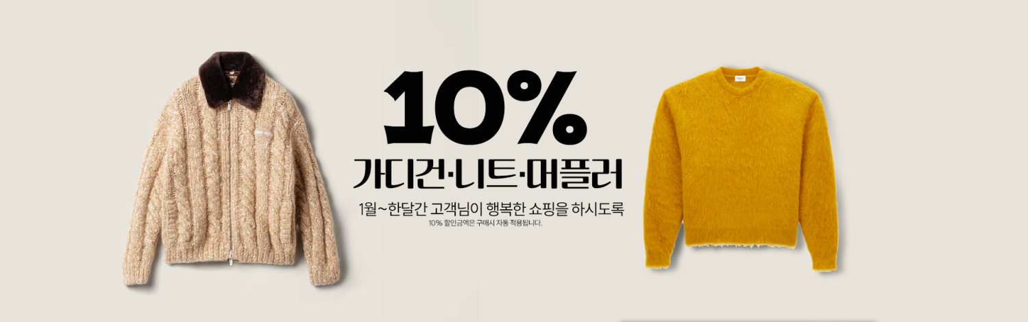 [1월] 가디건ㆍ니트ㆍ머플러 Sale 10%