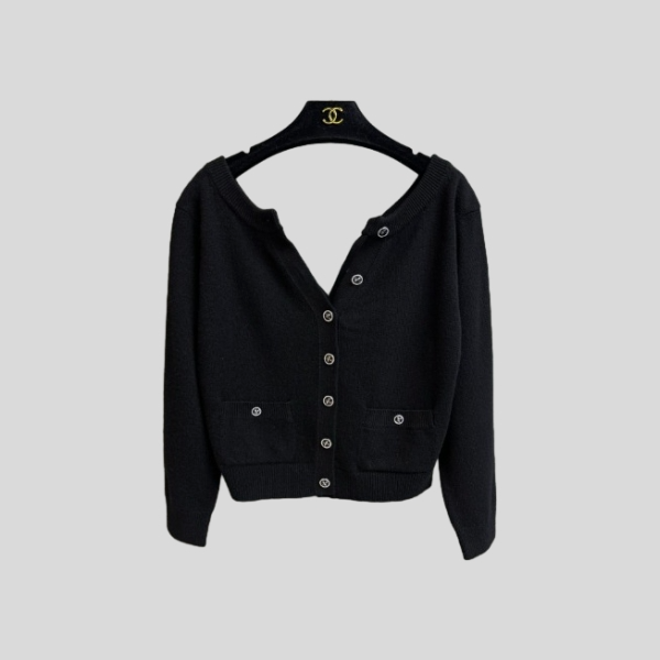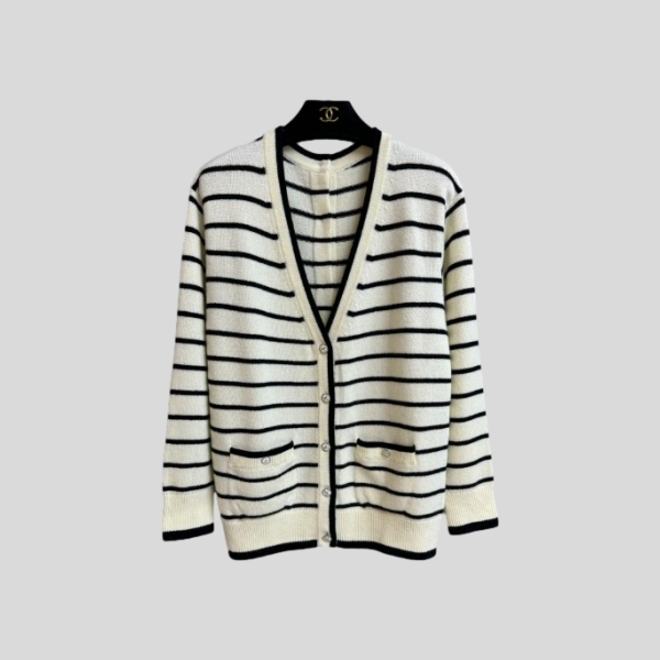 샤넬 스트라이프 캐시미어 가디건 핑크