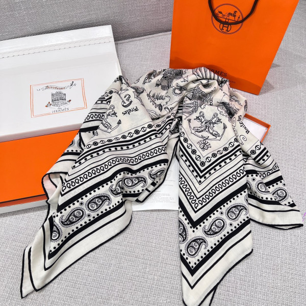 에르메스 실크 캐시미어 타투아지 마린스 숄