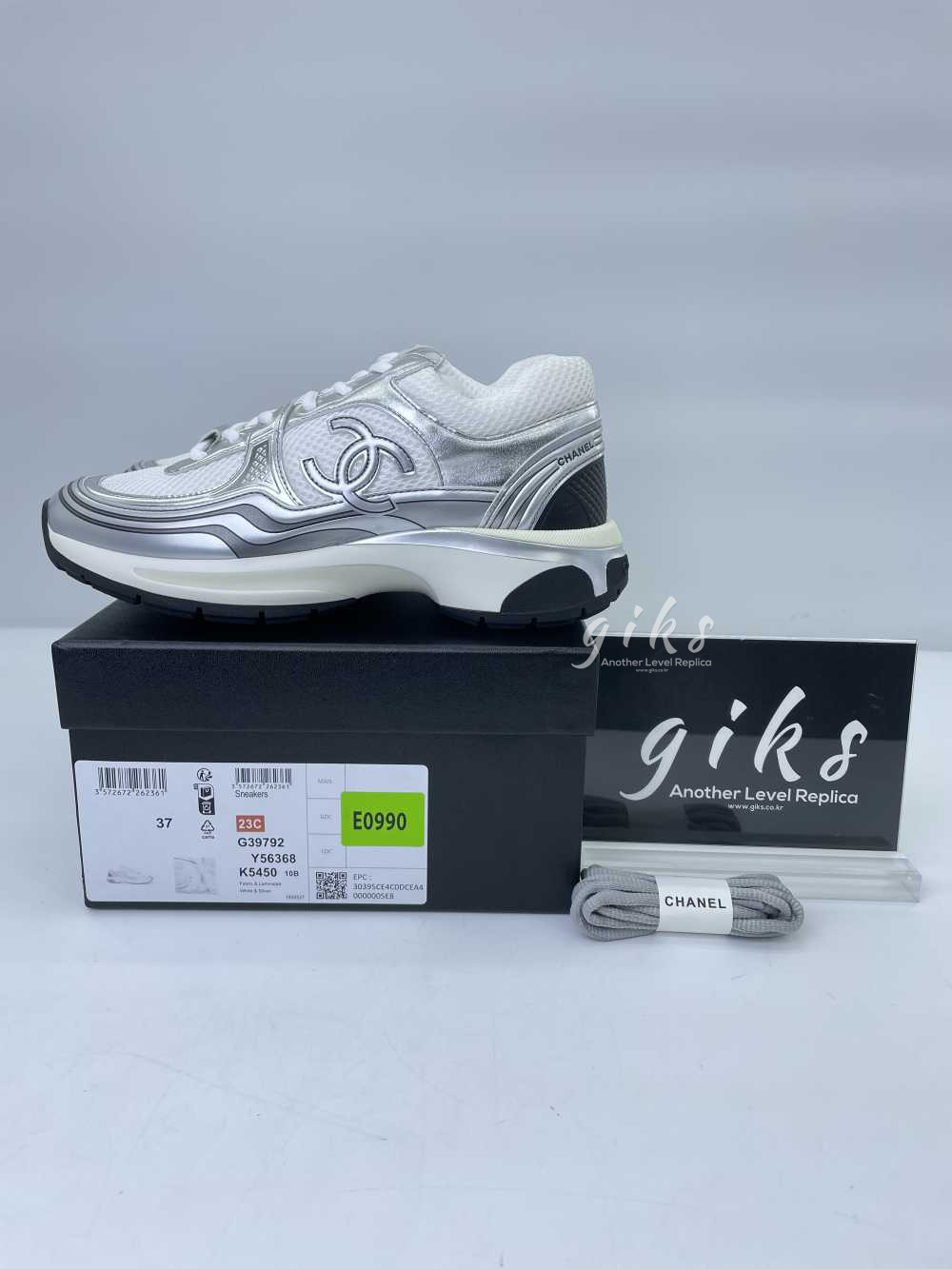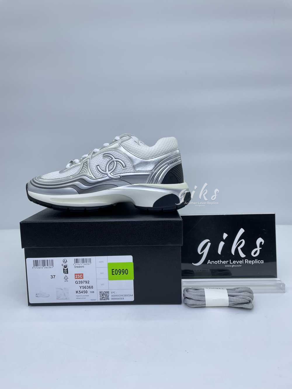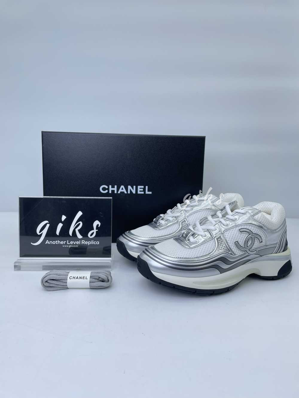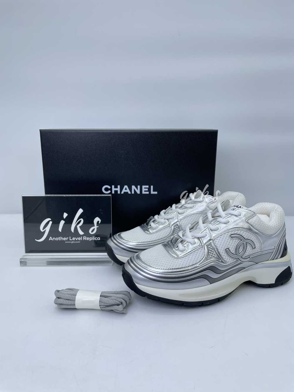 샤넬 CC 로고 샤식스 화이트 실버 테니스 스니커즈