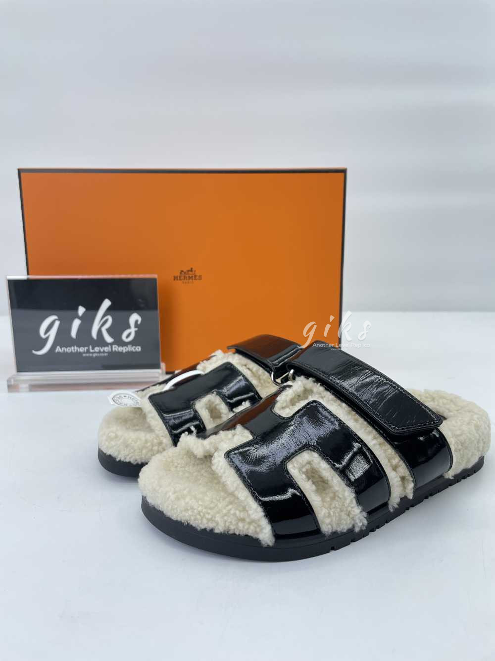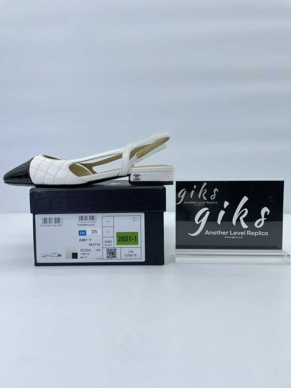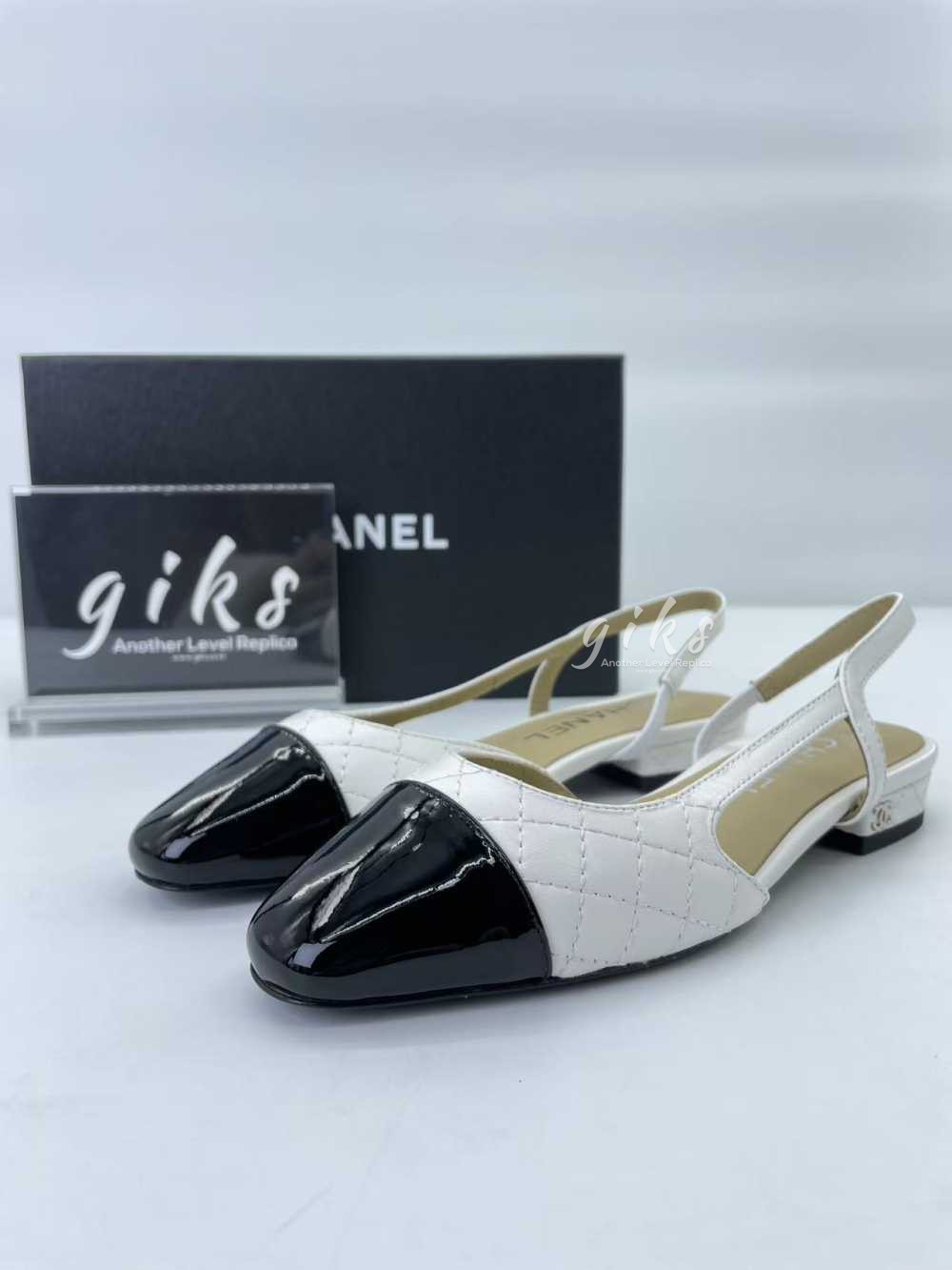 샤넬 슬링백 램스킨 페이턴트 카프스킨 화이트 블랙