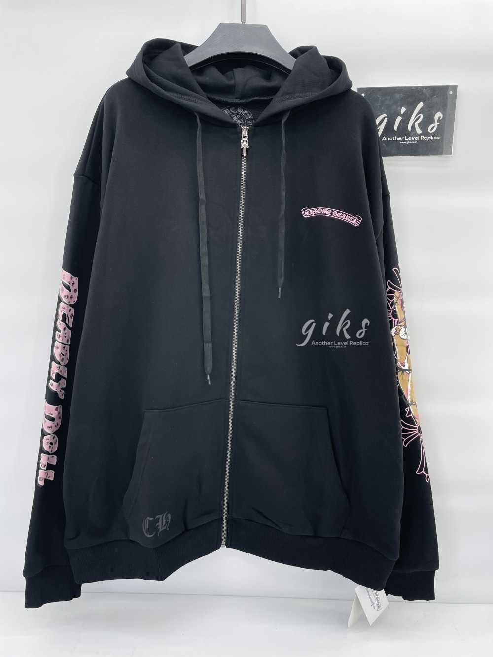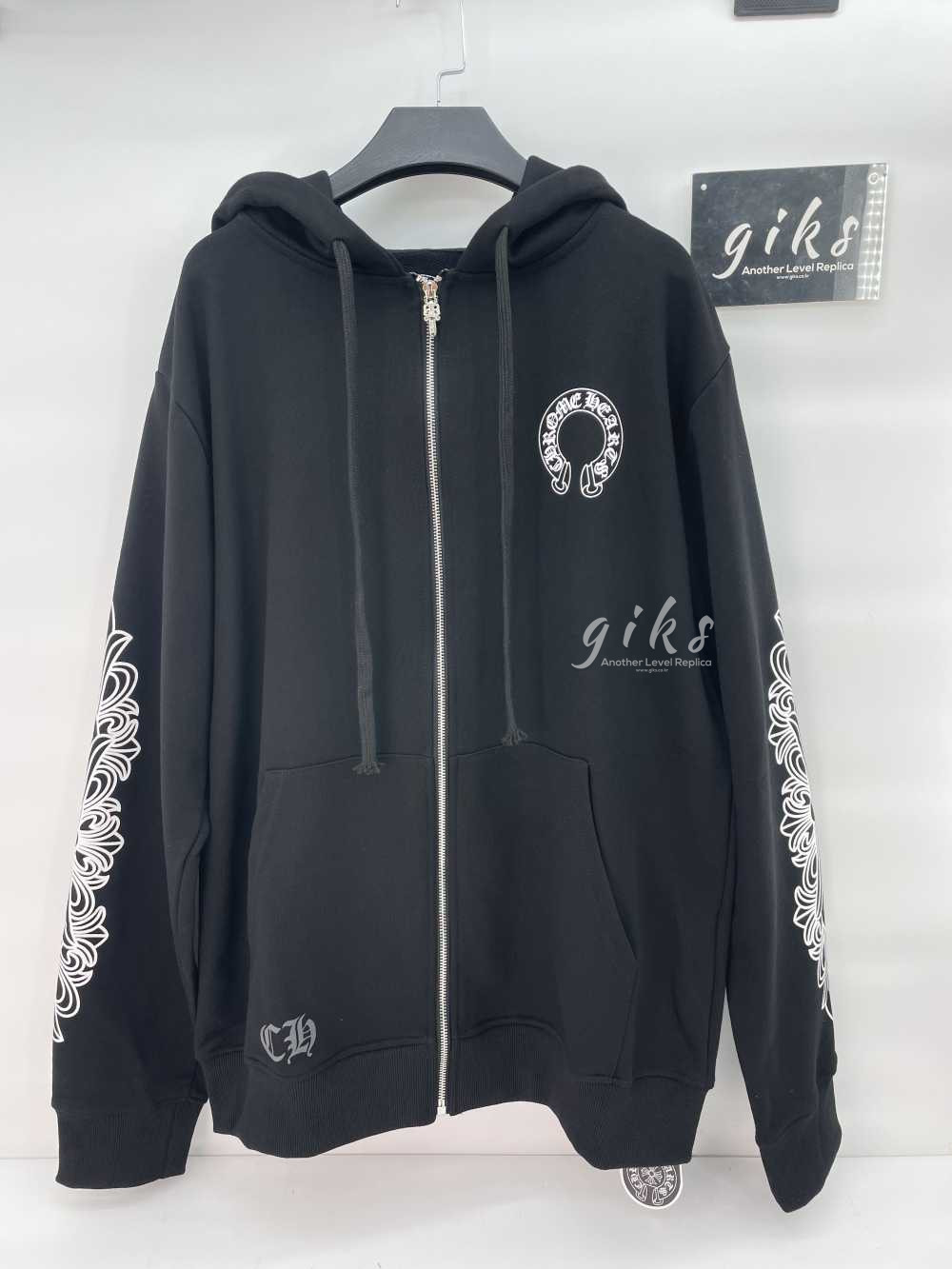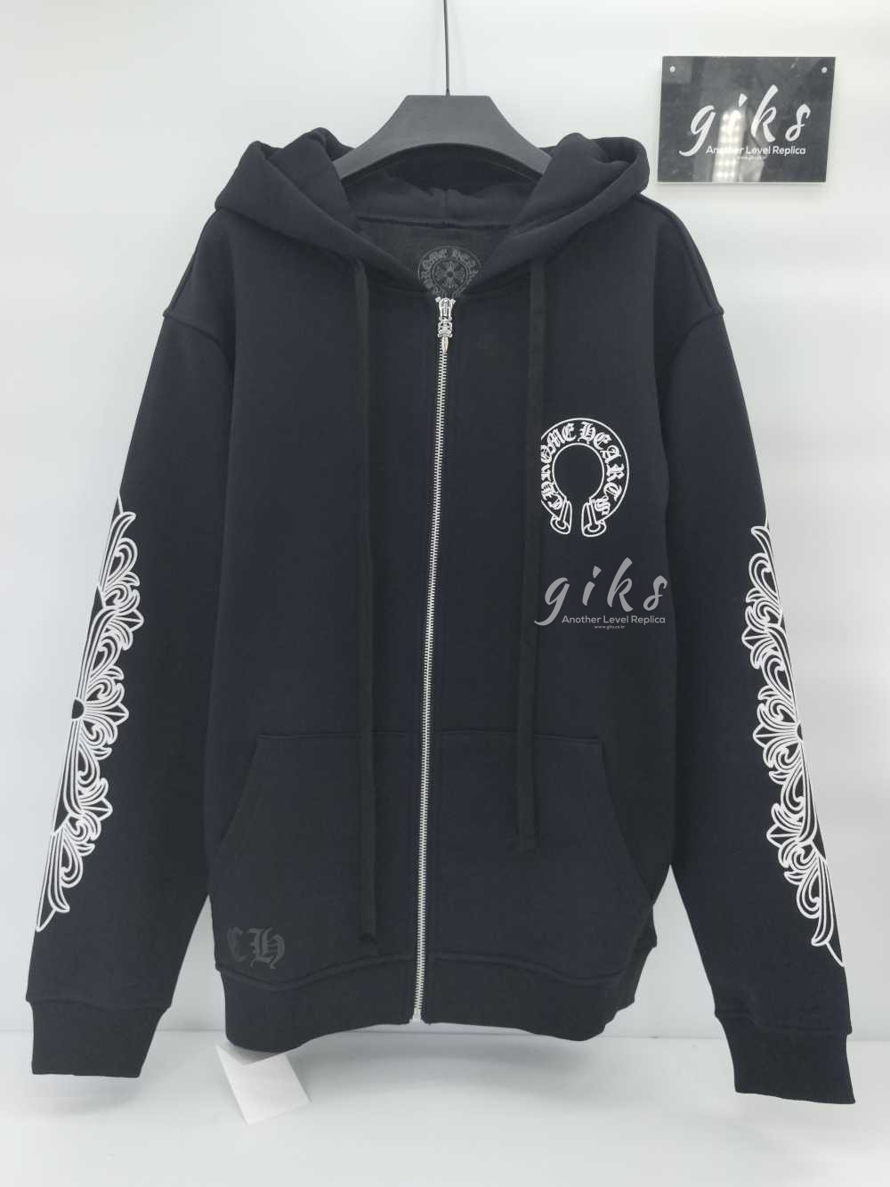 크롬하츠 홀스슈 플로랄 플리스 집업 후드