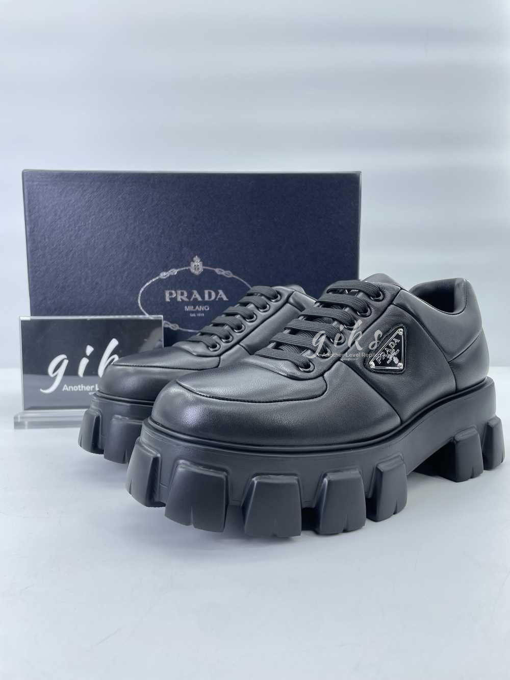프라다 소프트 패딩 나파 가죽 레이스업 슈즈