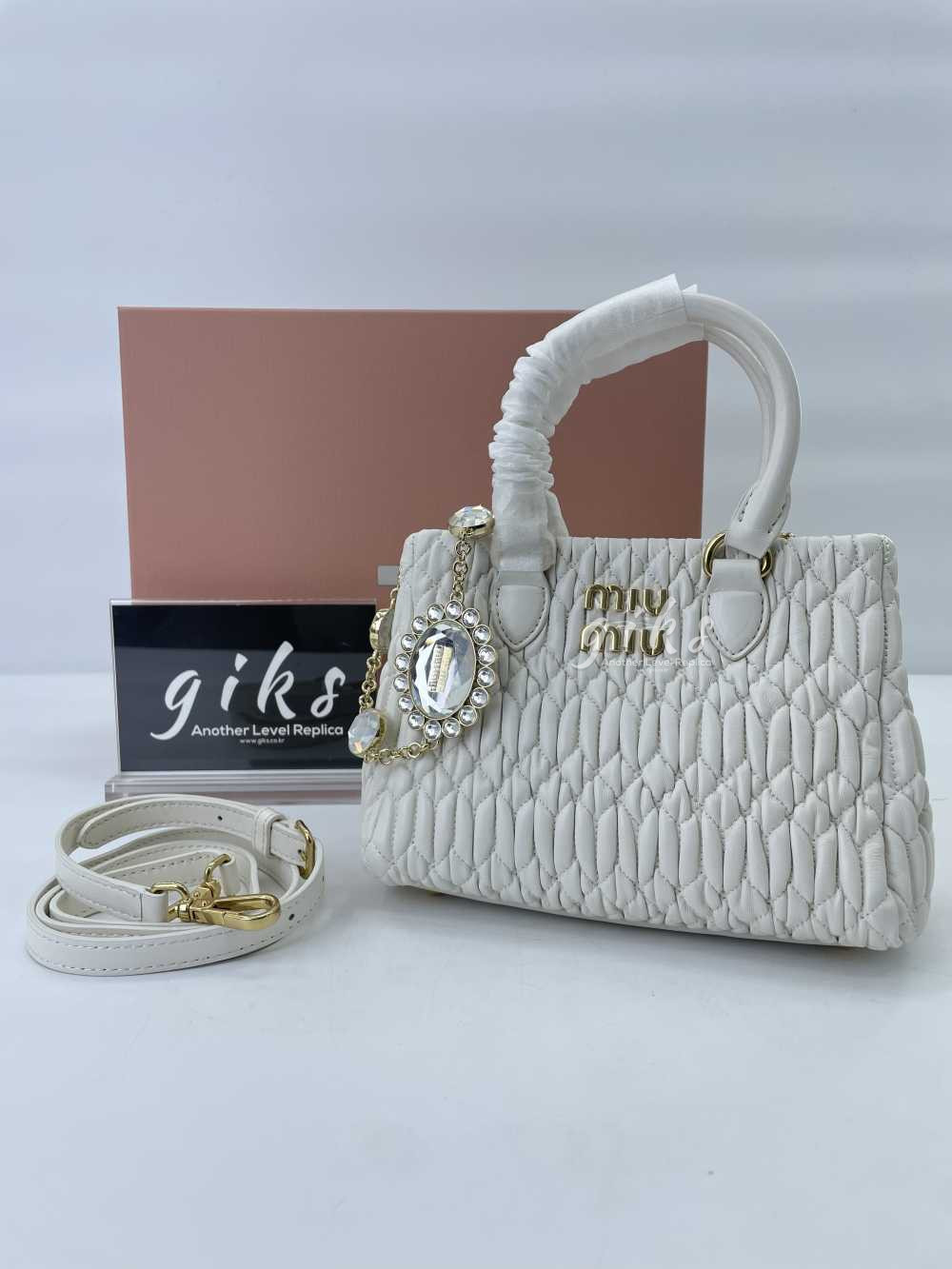 미우미우 크리스털 나파 가죽 핸드백 화이트