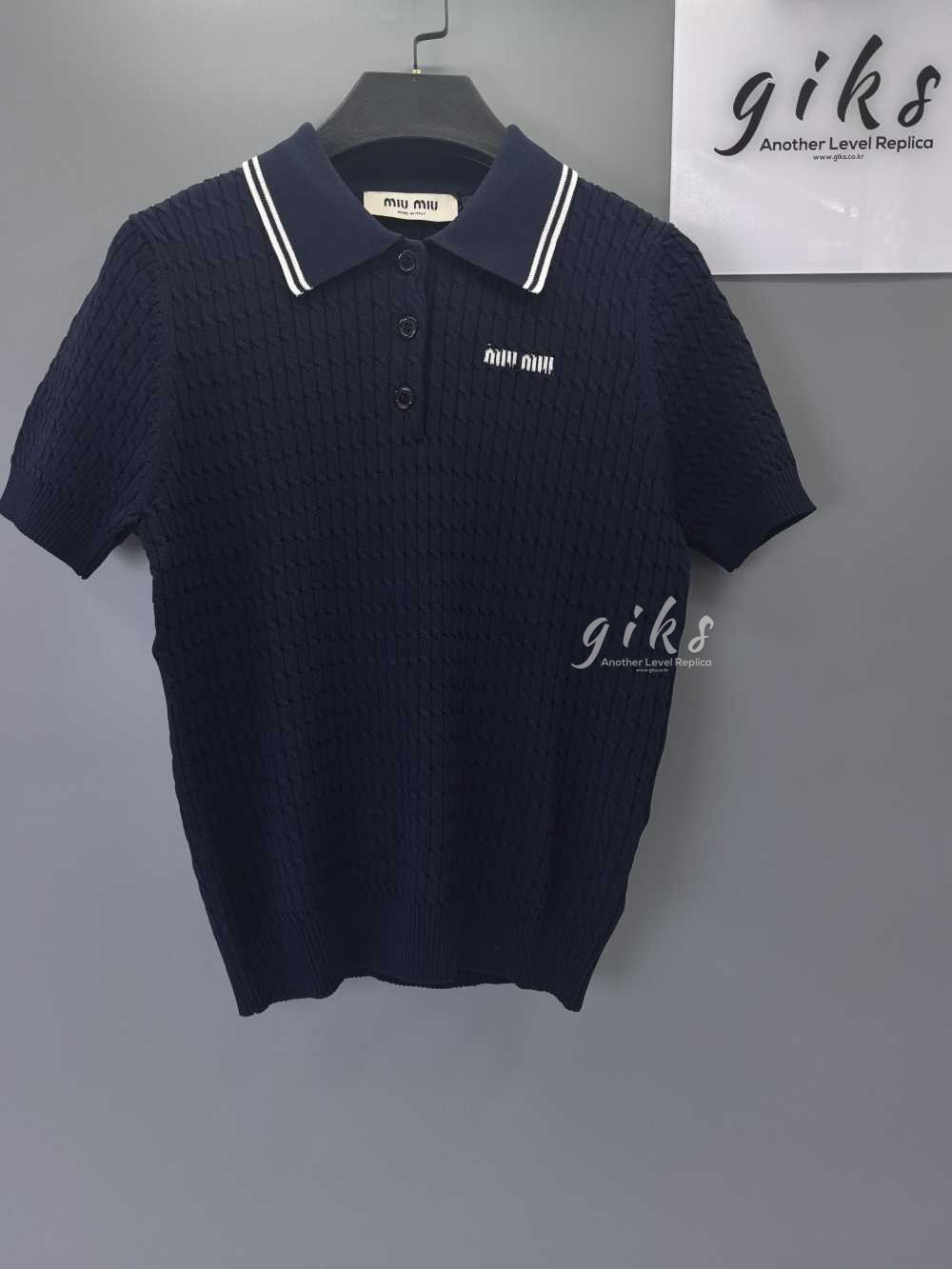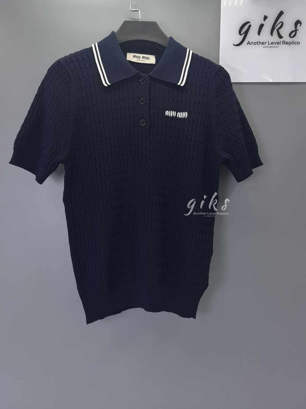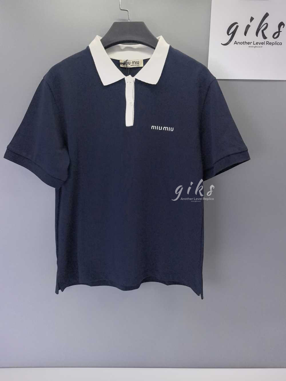 미우 미우 코튼 피케 폴로 셔츠 네이비