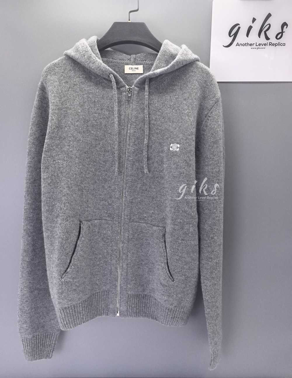 셀린느 옴므 로고 울 캐시미어 블렌드 집업 후드