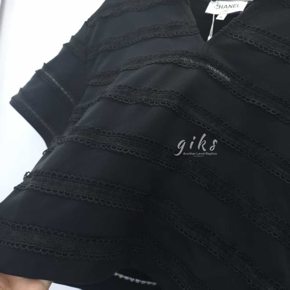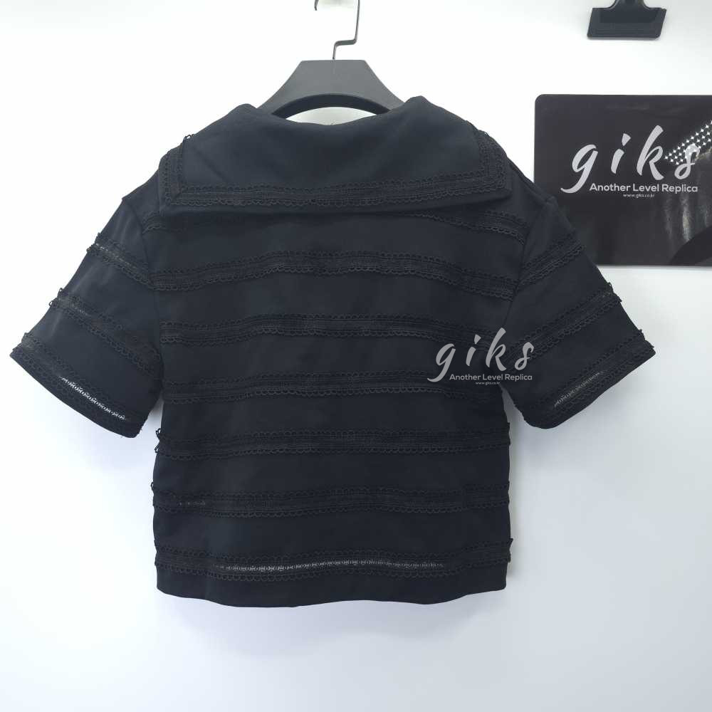 샤넬 레터 컷아웃 레이스 탑 (블랙,화이트)