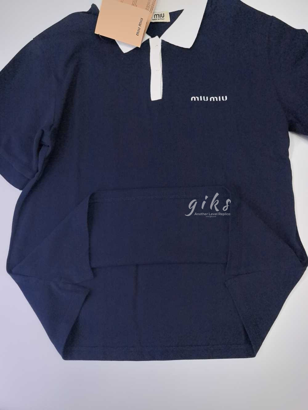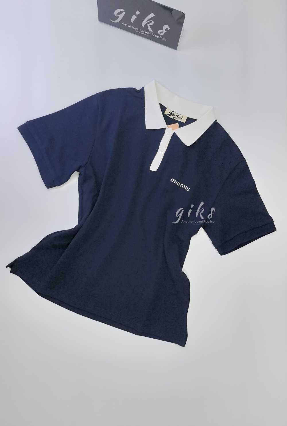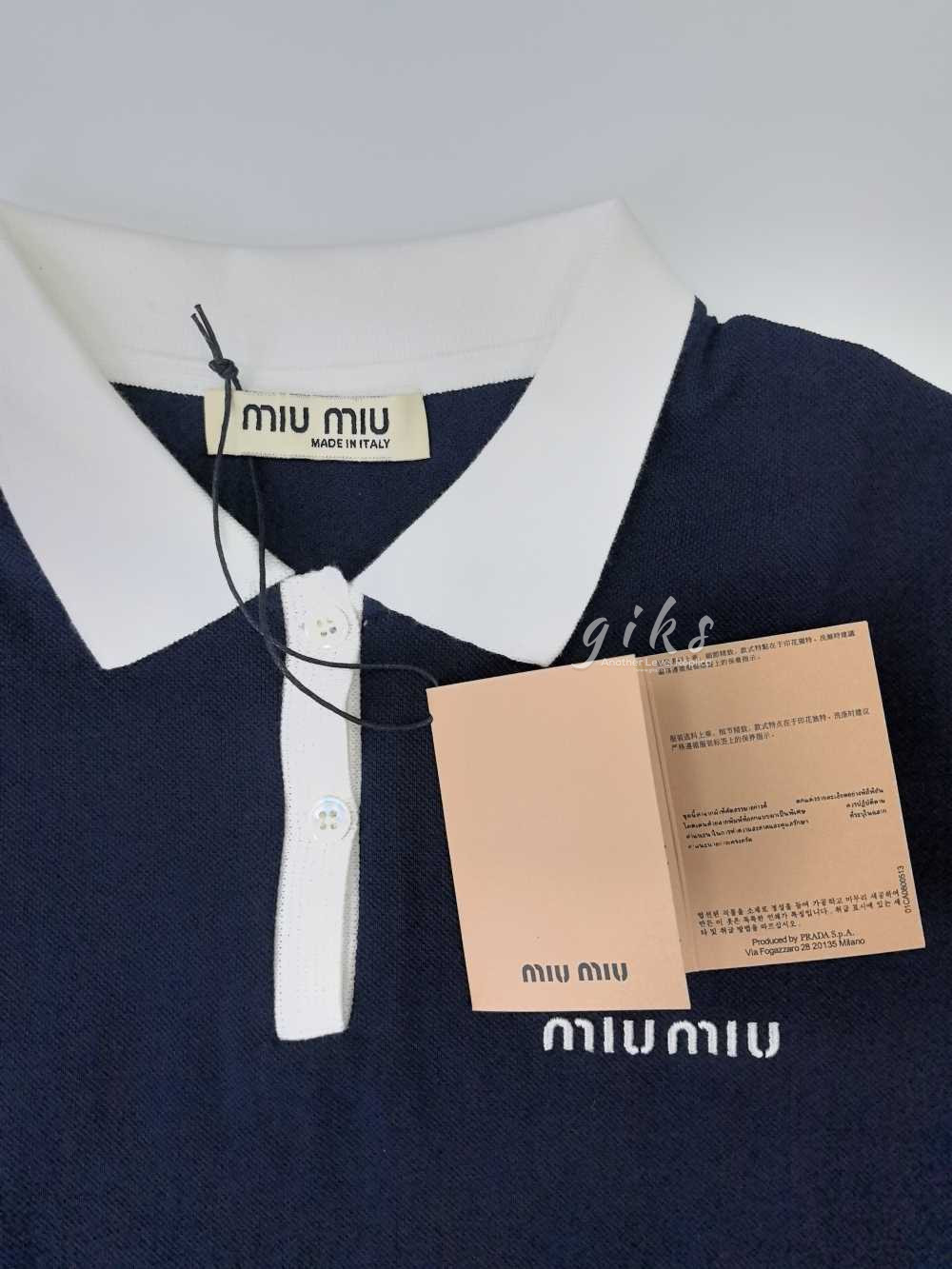 미우 미우 코튼 피케 폴로 셔츠 네이비