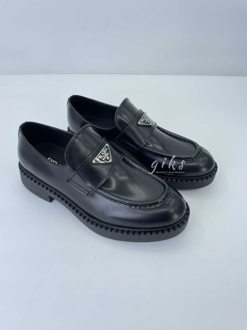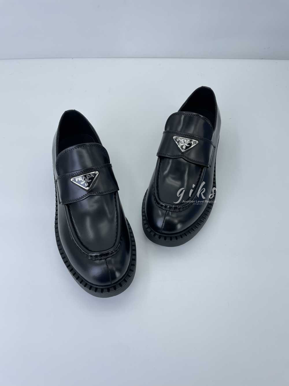 프라다 브러시드 레더 삼각로고 로퍼 1D246M