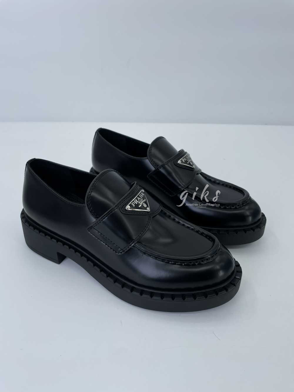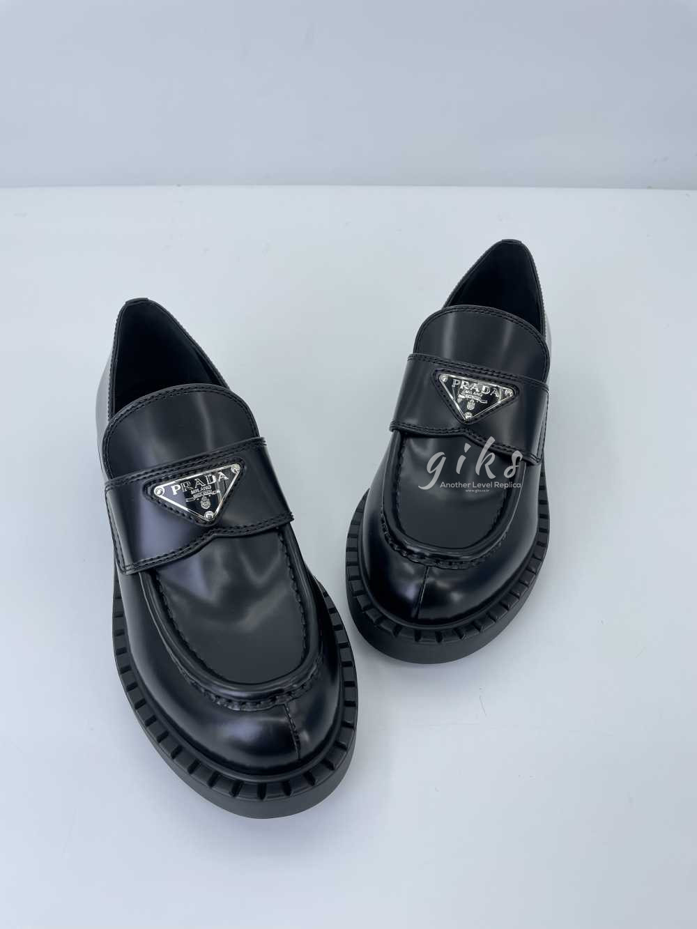 프라다 브러시드 레더 삼각로고 로퍼 1D246M