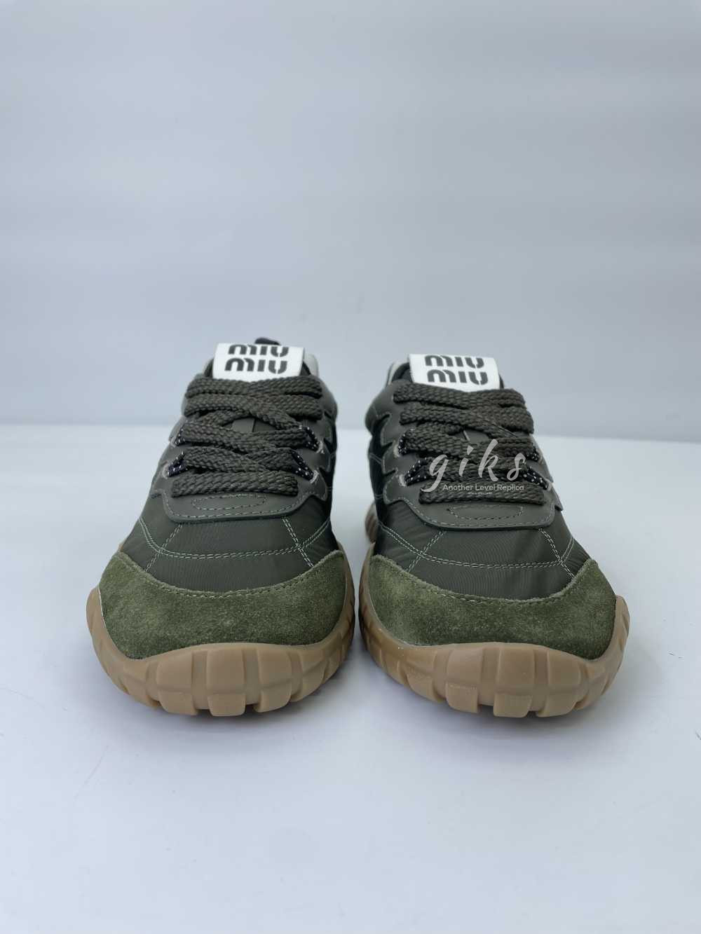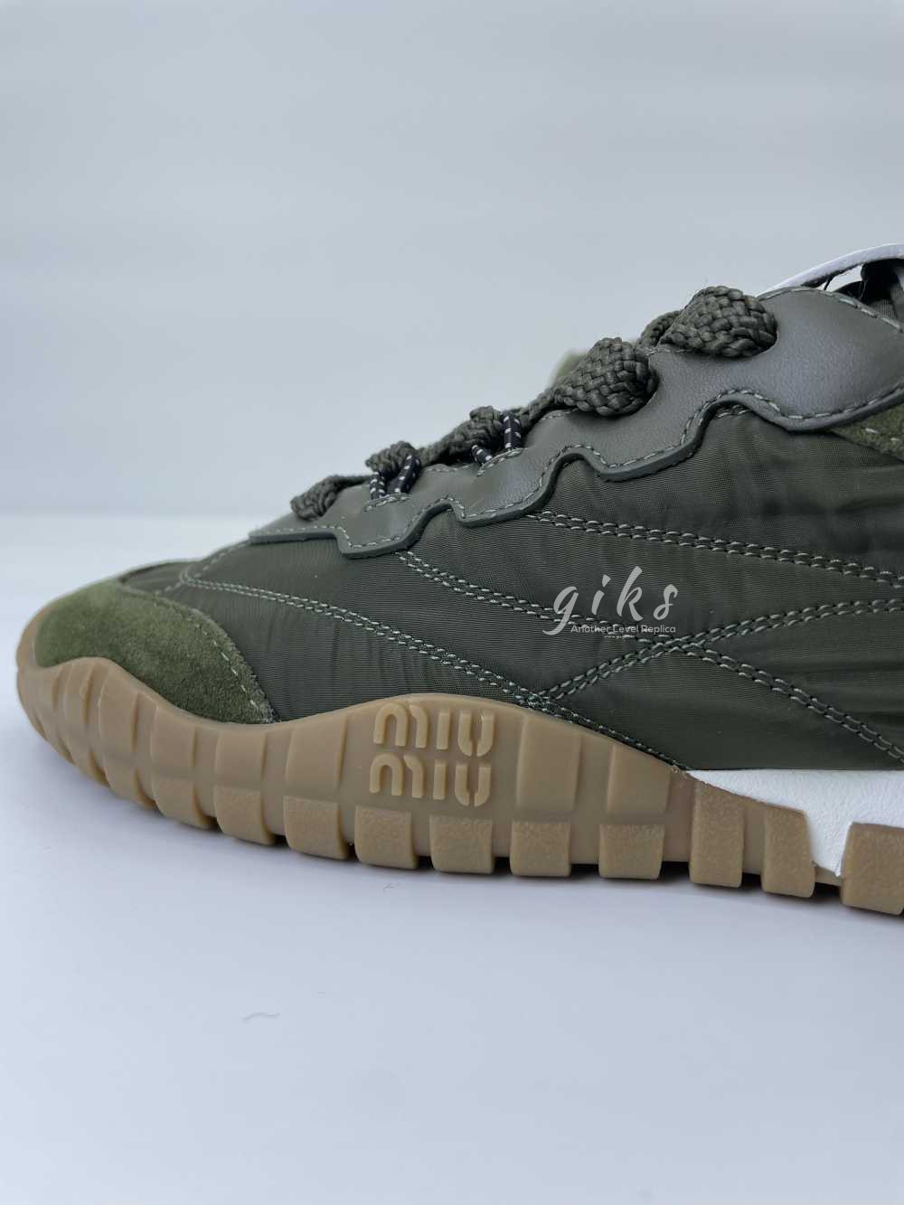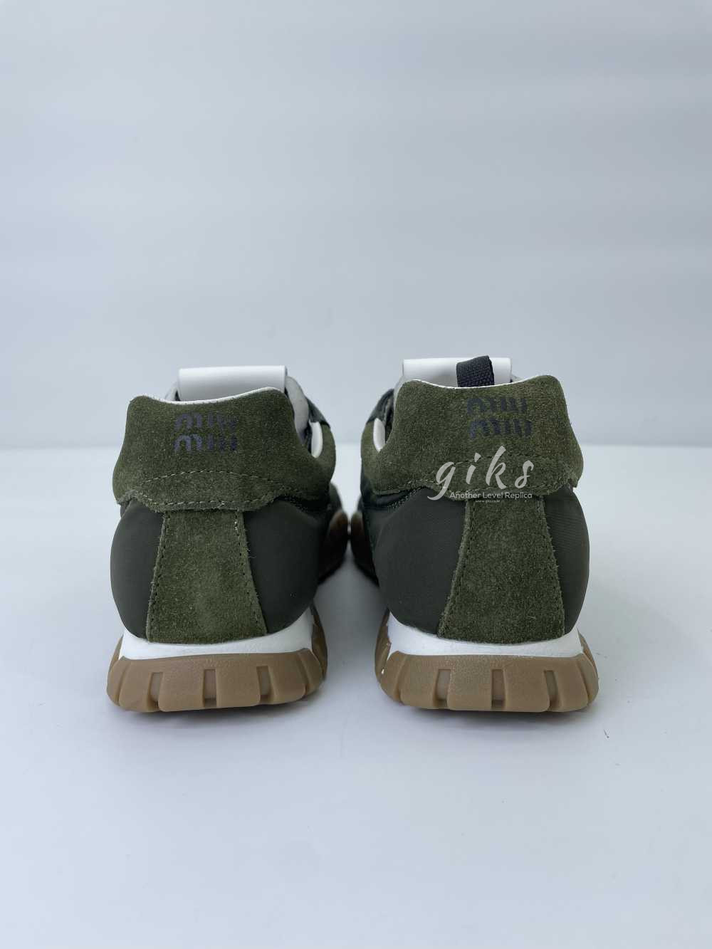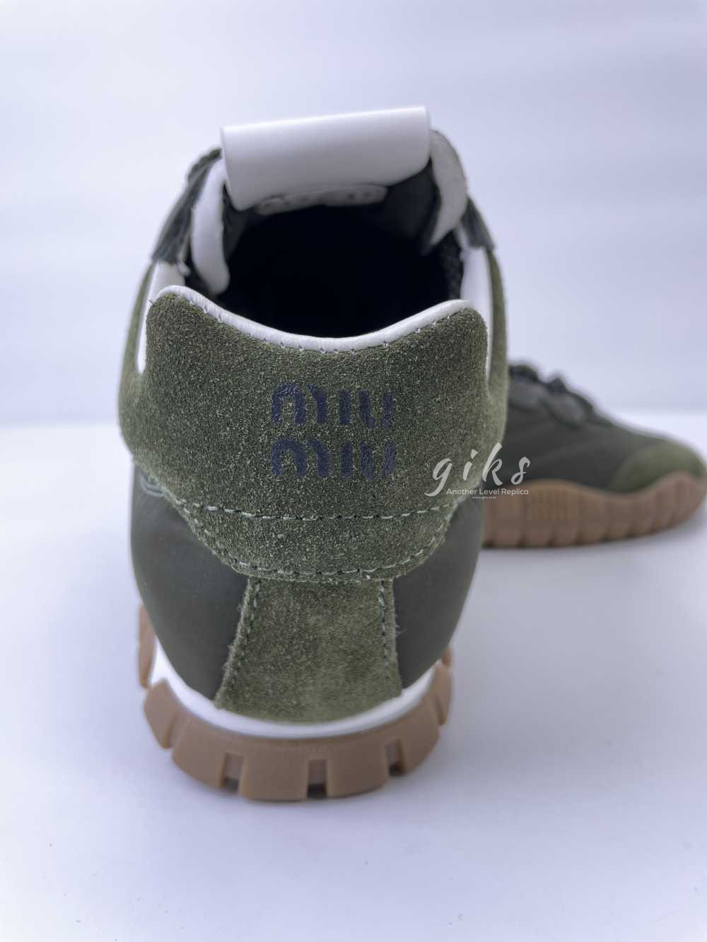 미우 미우 타이어 테크니컬 패브릭 앤 스웨이드 스니커즈 로든 그린
