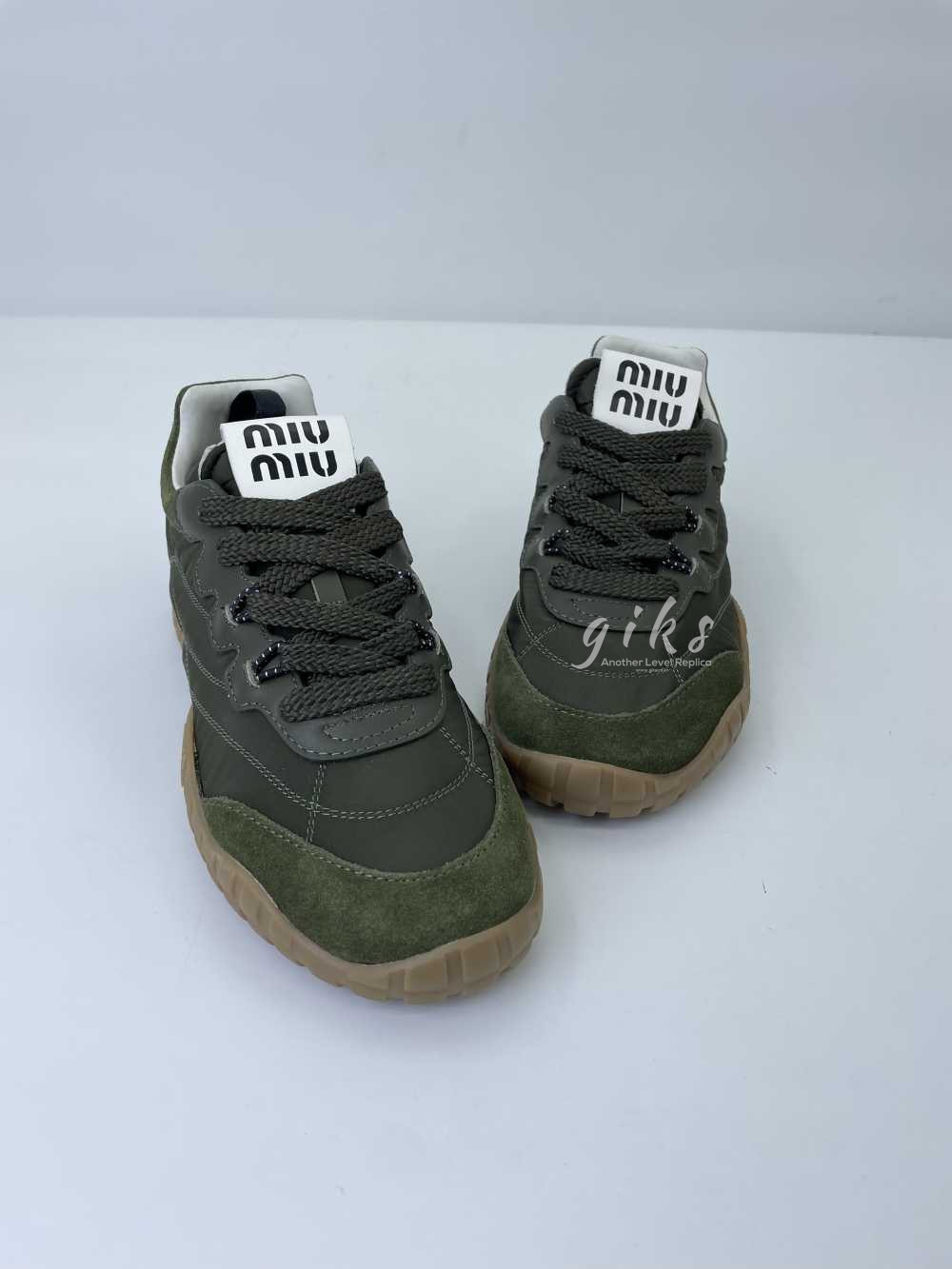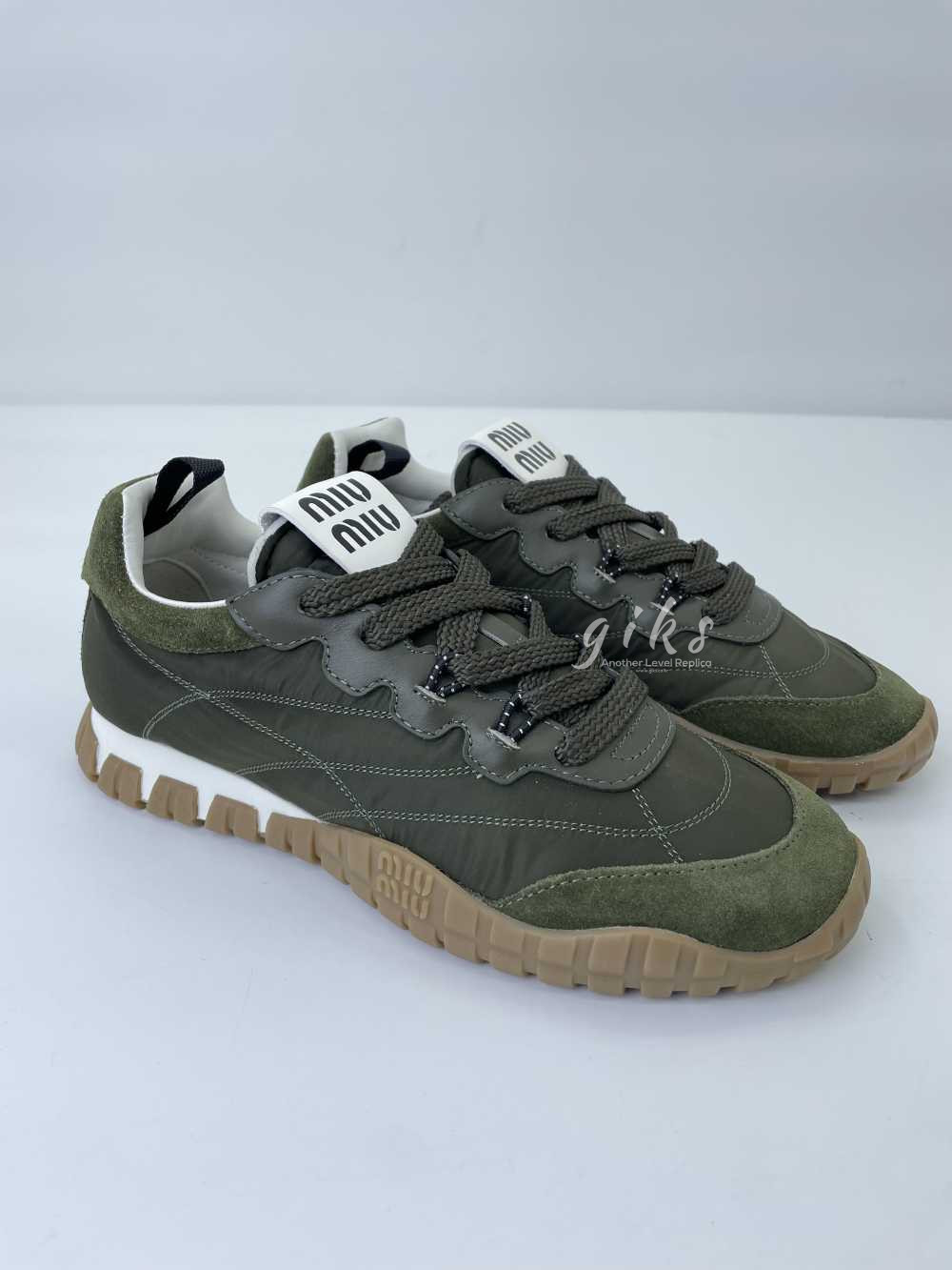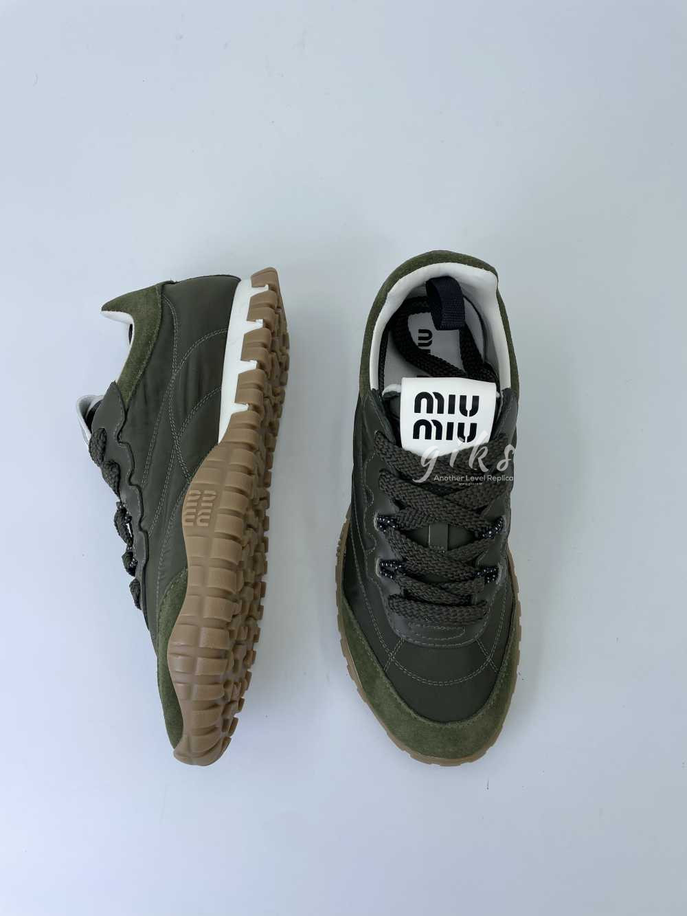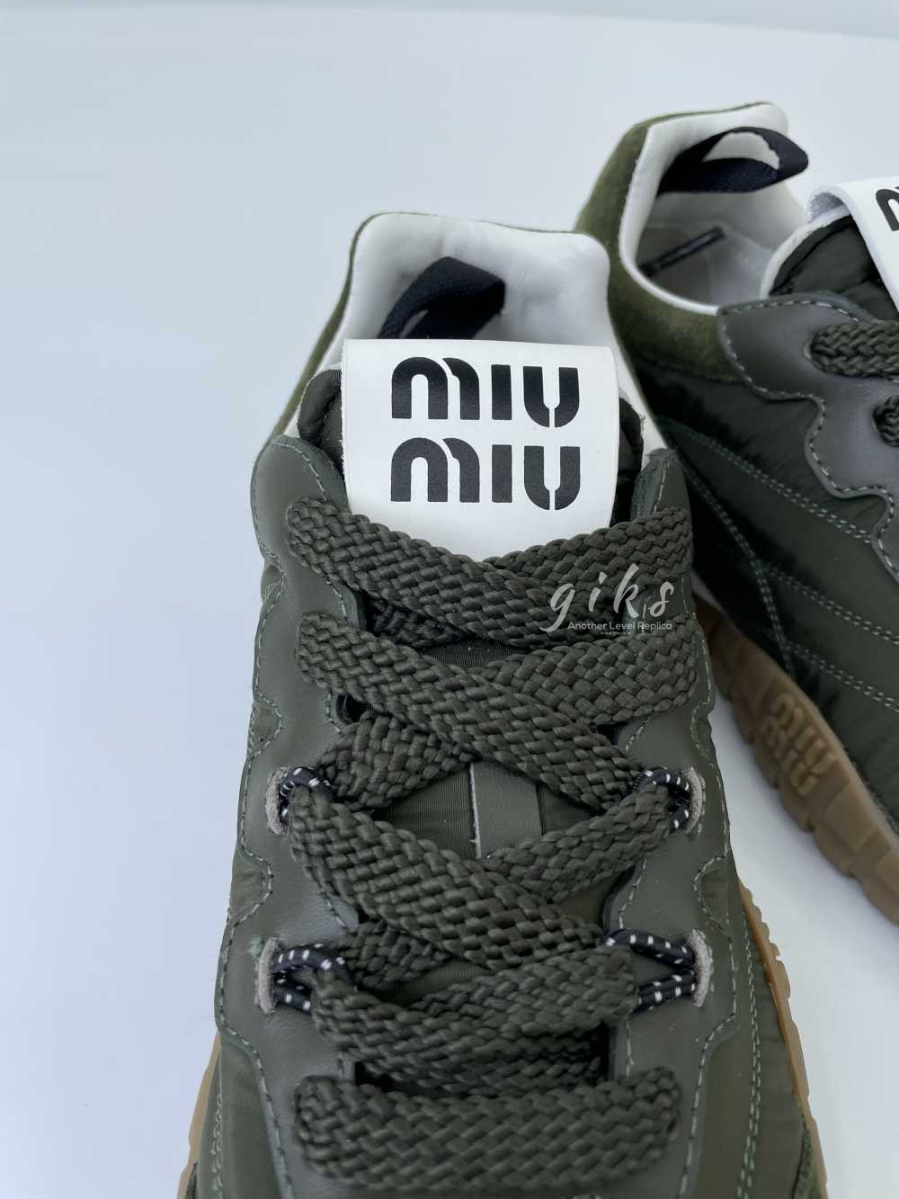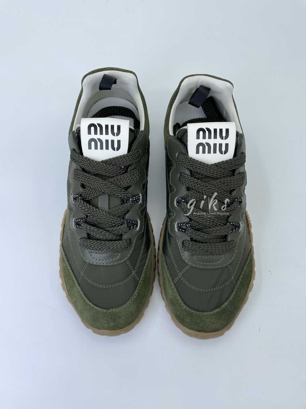 미우 미우 타이어 테크니컬 패브릭 앤 스웨이드 스니커즈 로든 그린