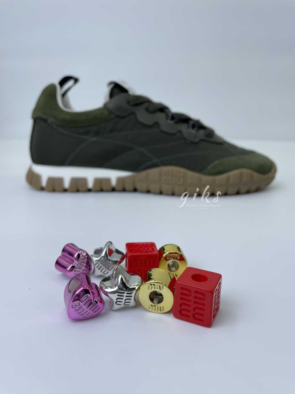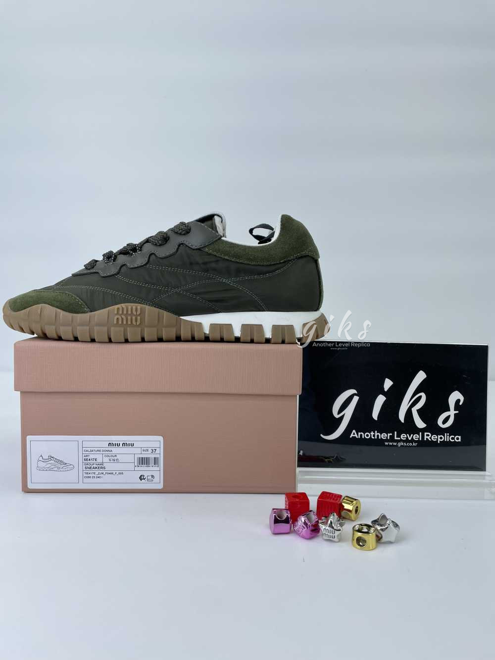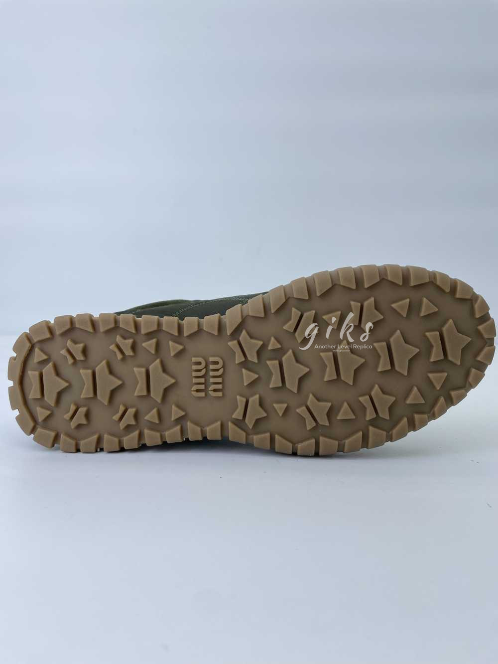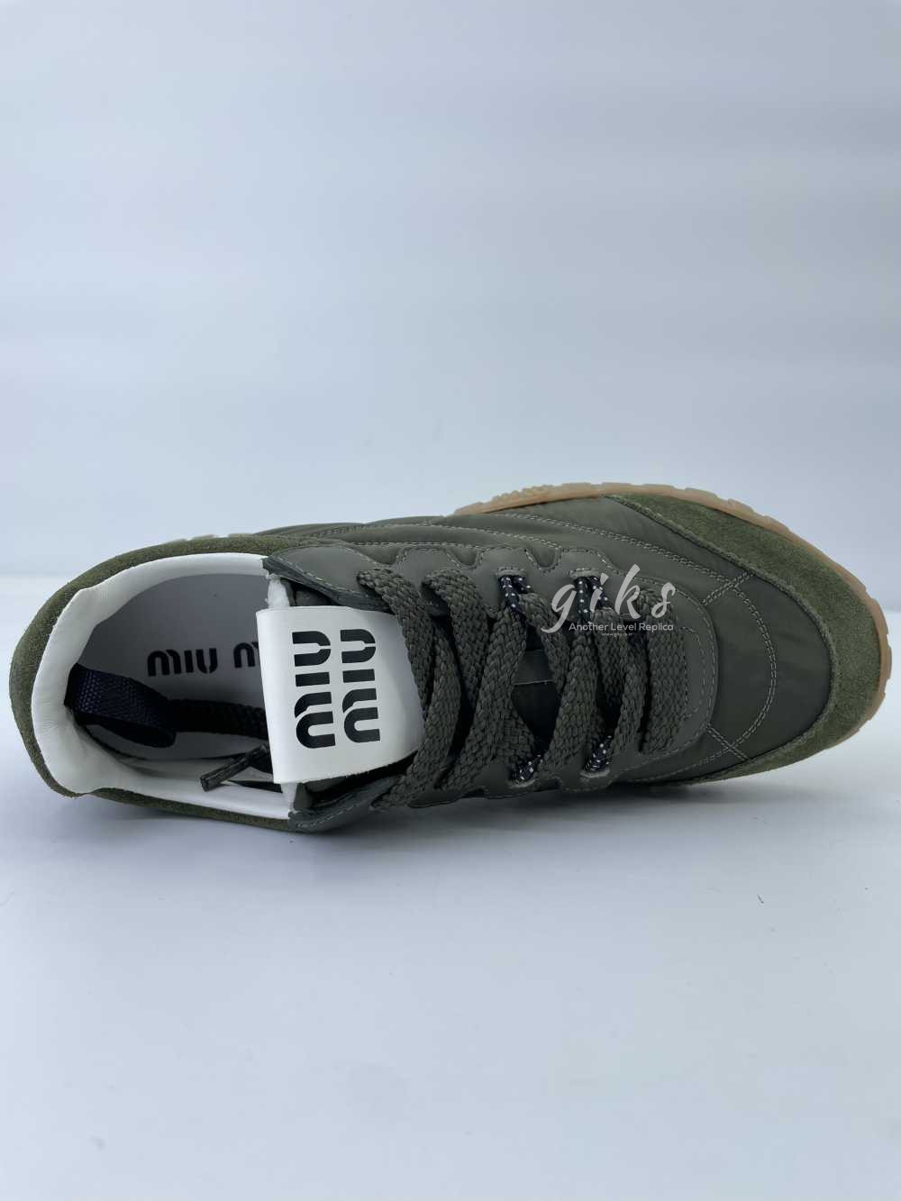 미우 미우 타이어 테크니컬 패브릭 앤 스웨이드 스니커즈 로든 그린