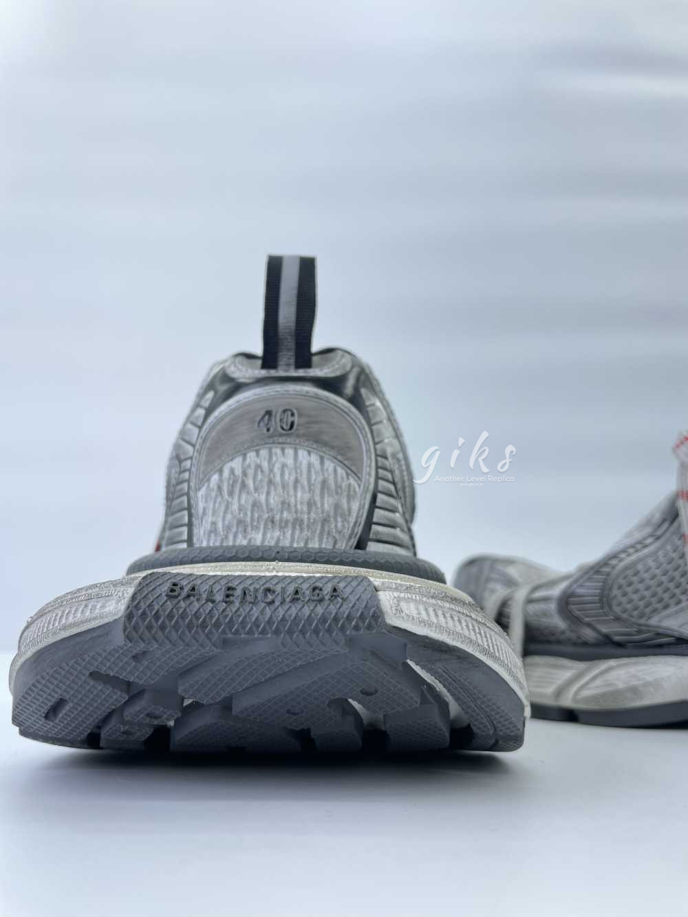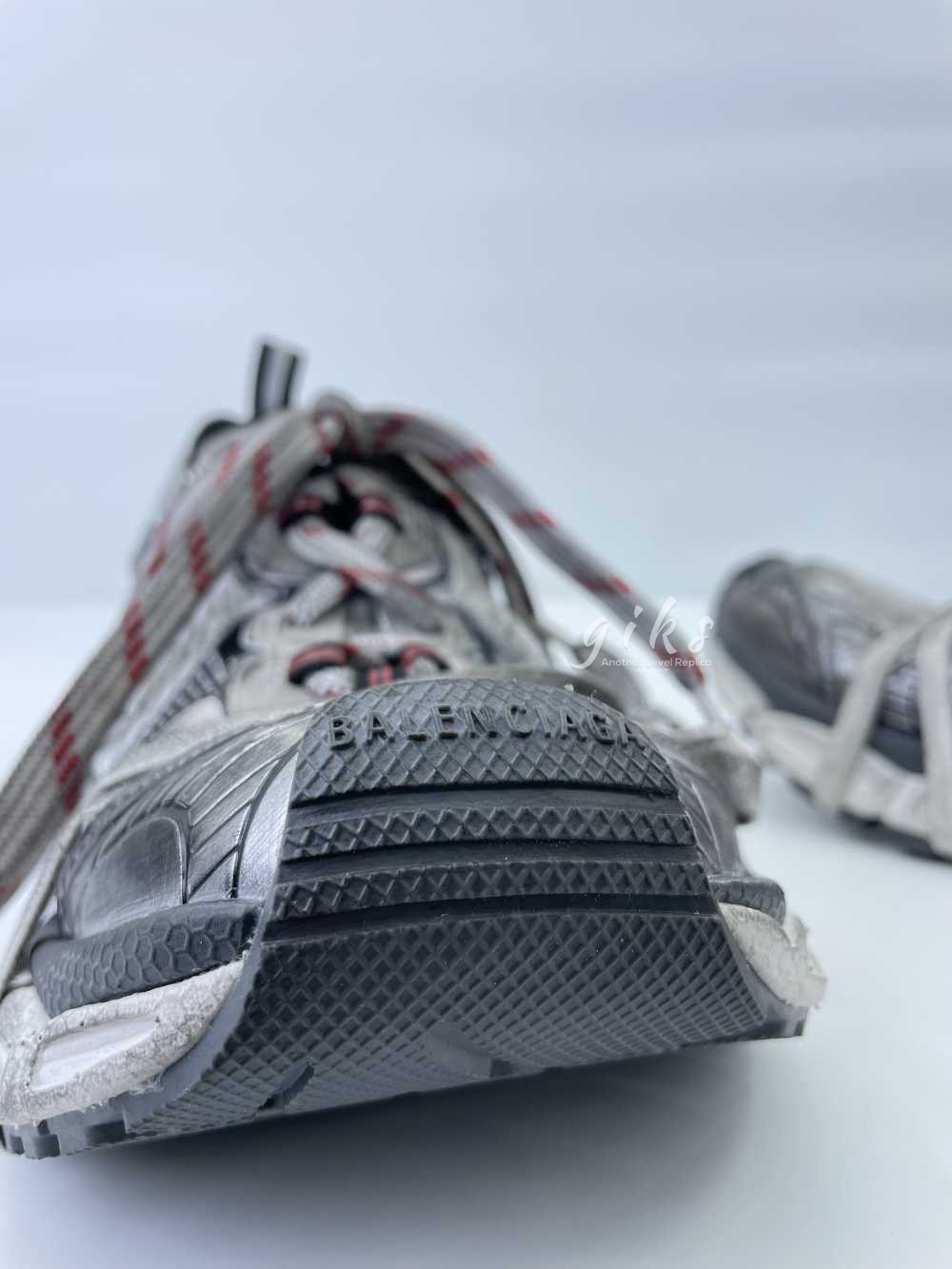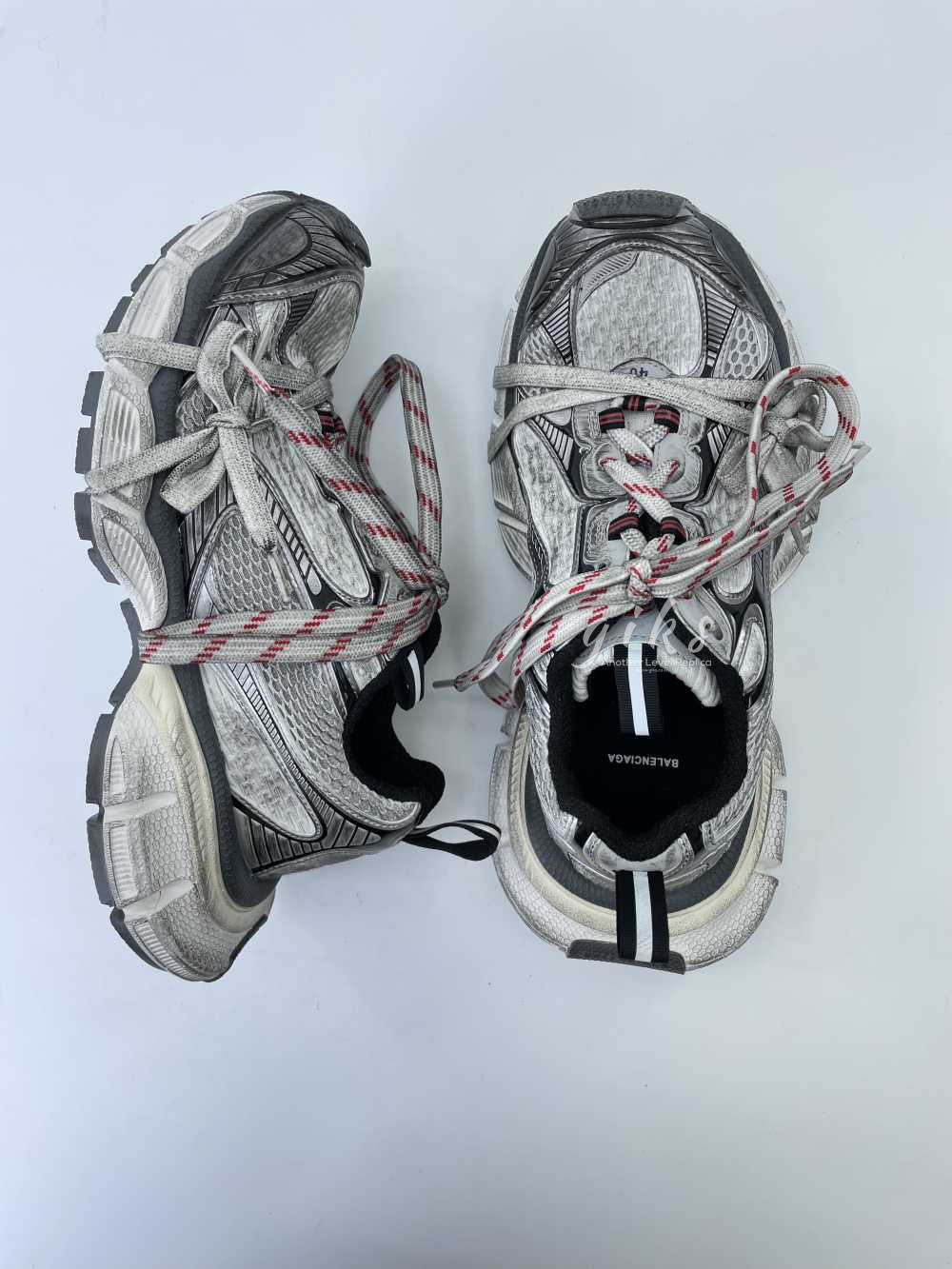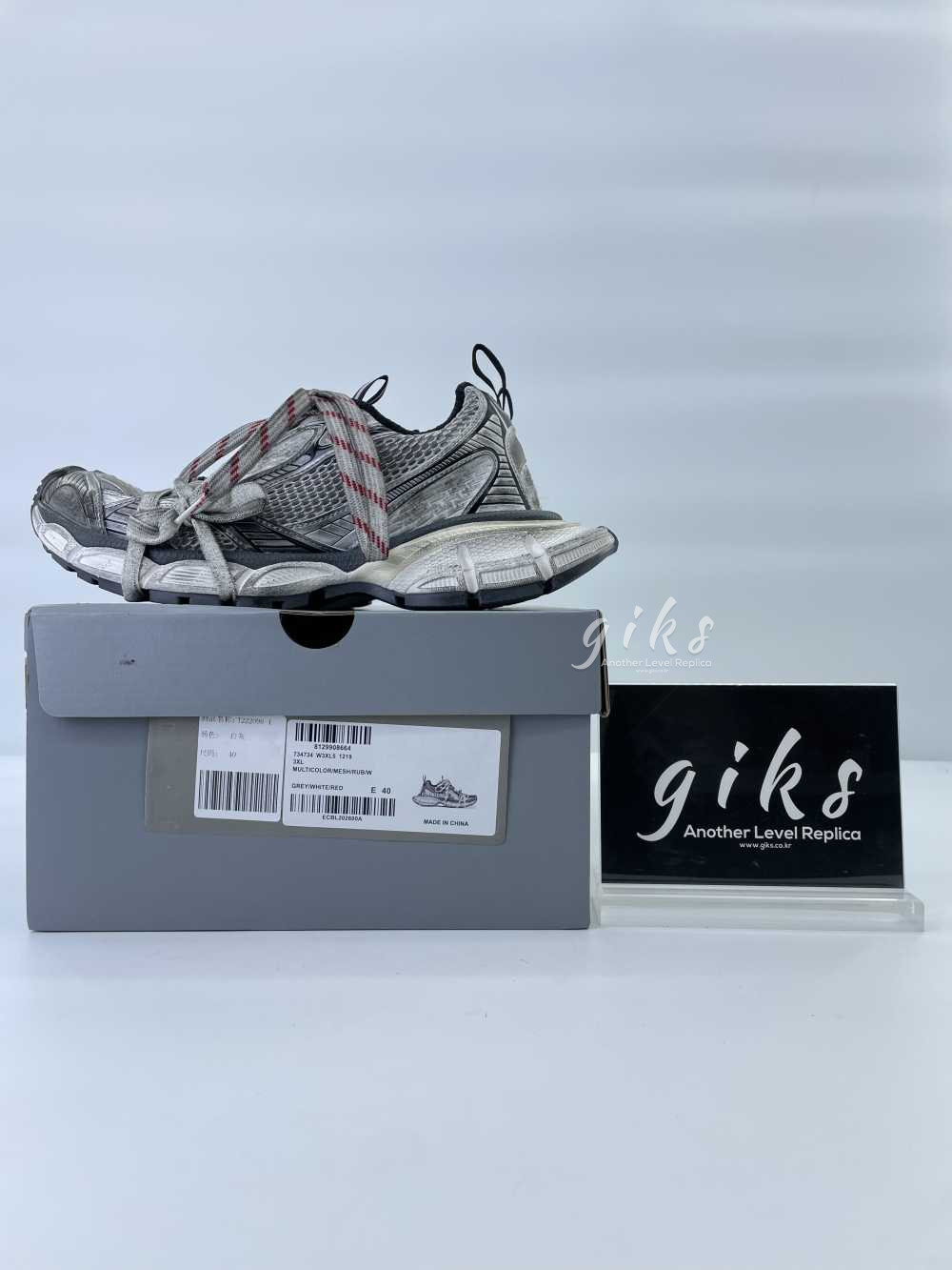 발렌시아가 3XL 그레이 화이트 레드 스니커즈