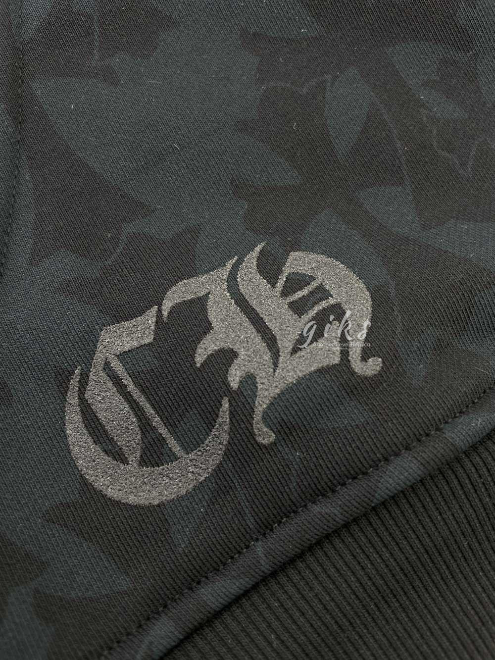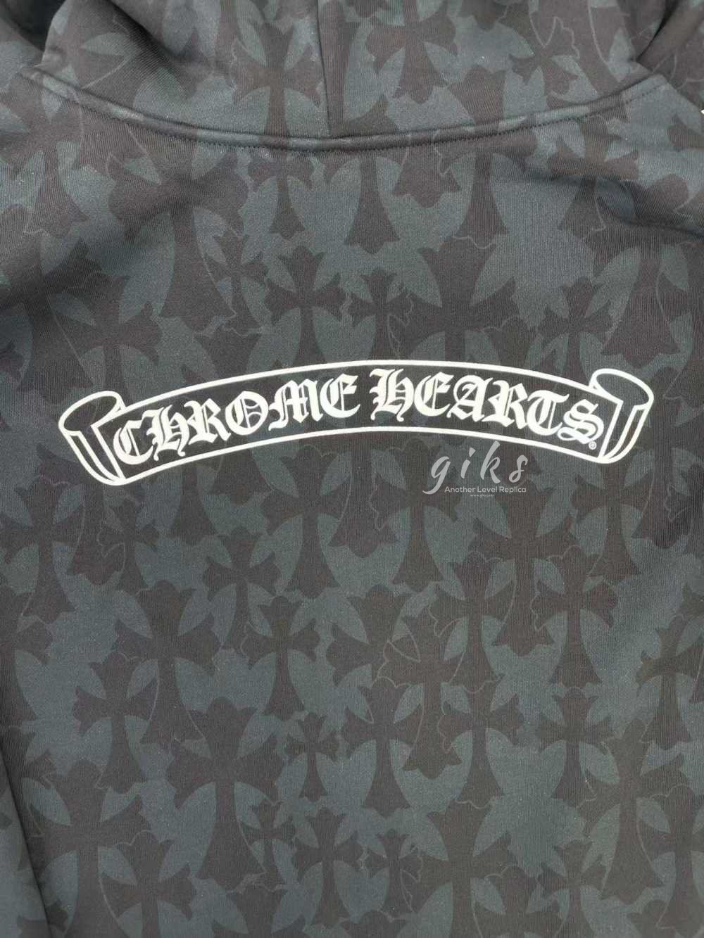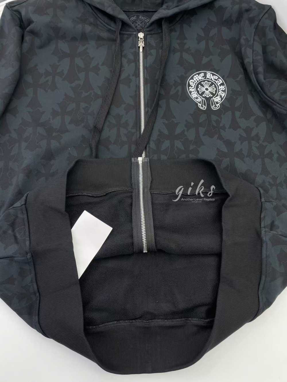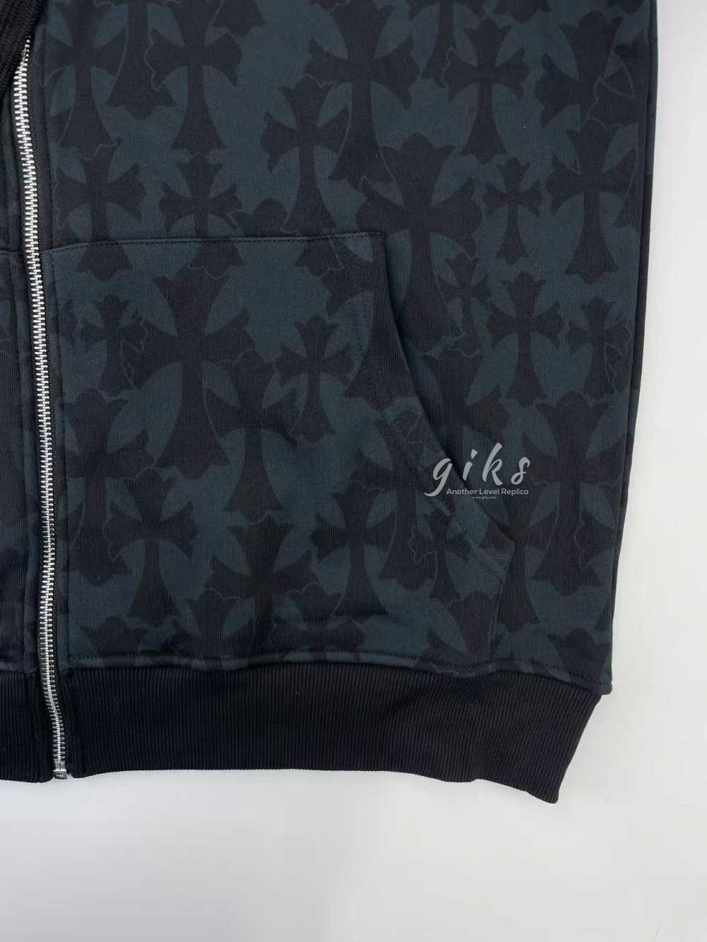 크롬하츠 블랙 토널 모노그램 스크롬 말굽 로고 집업 후디