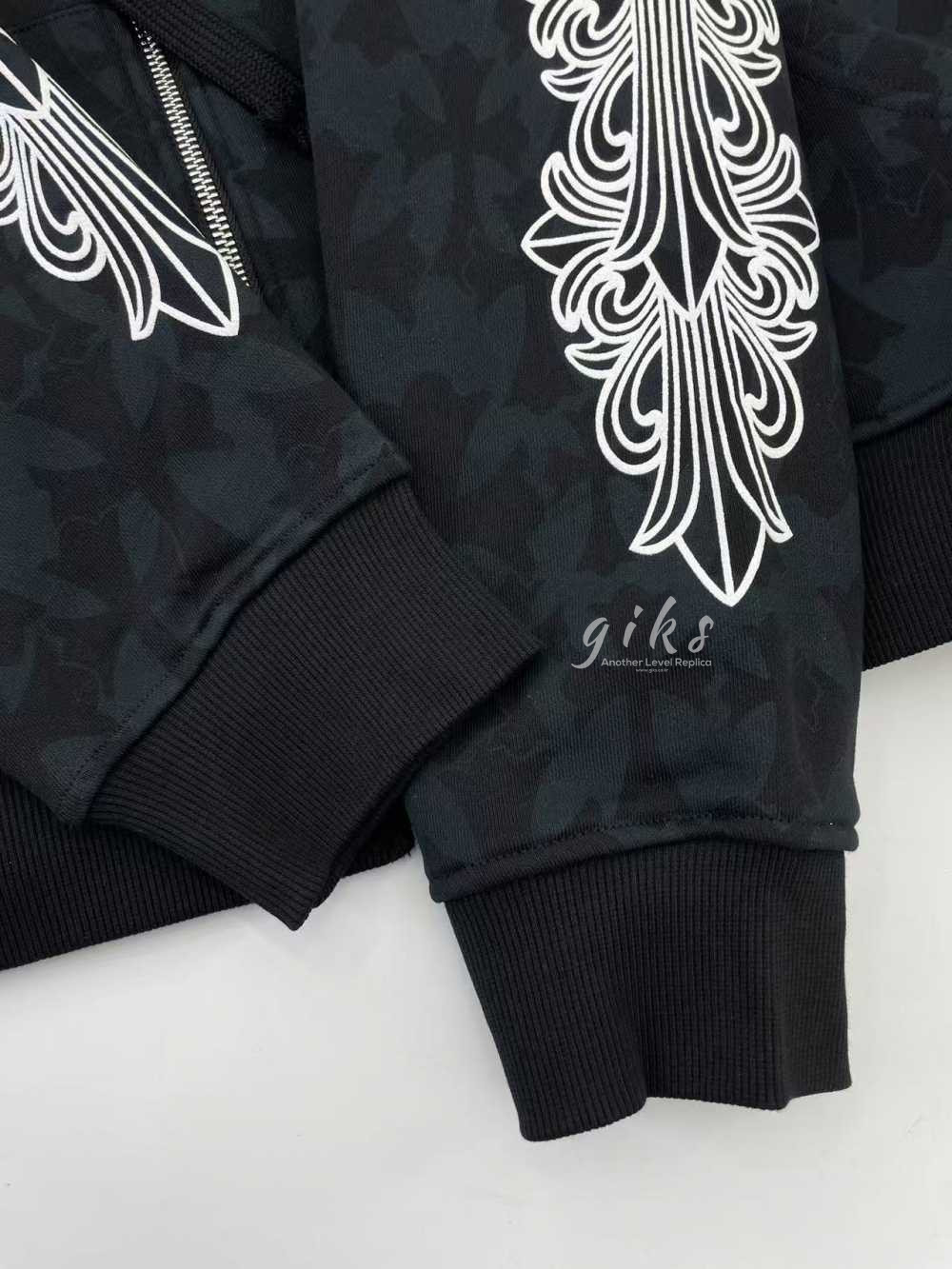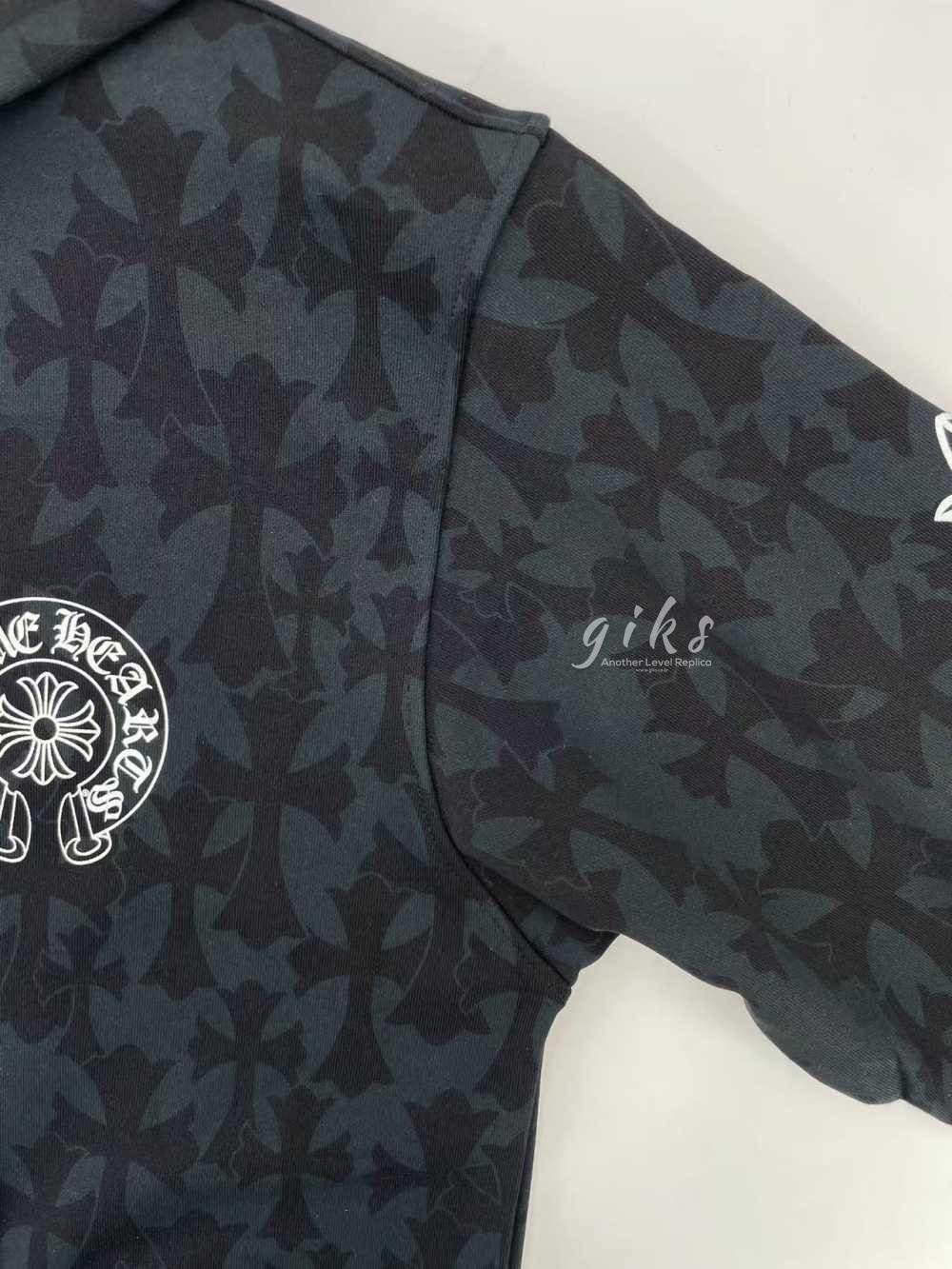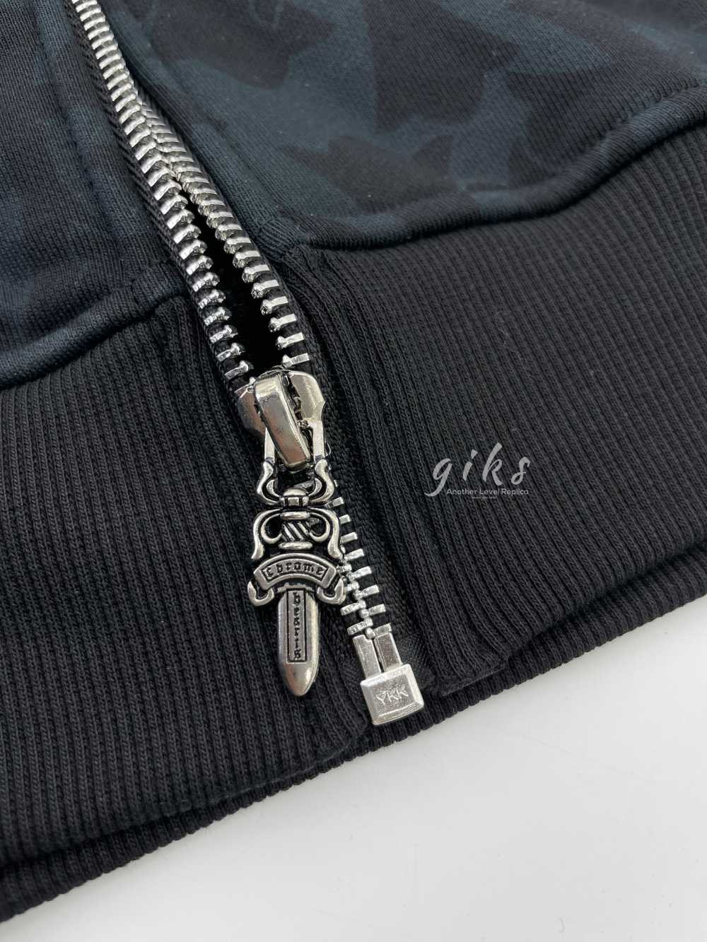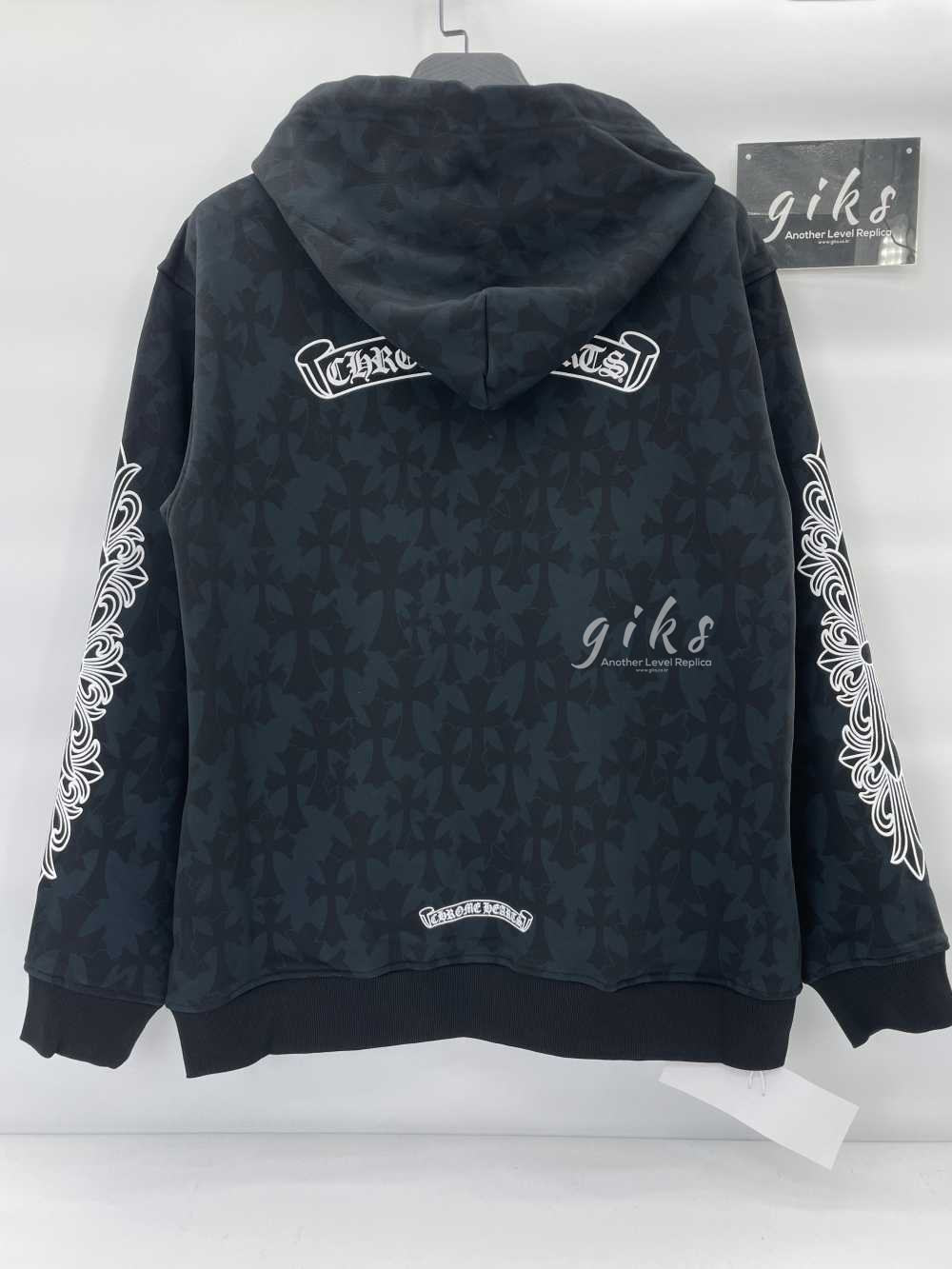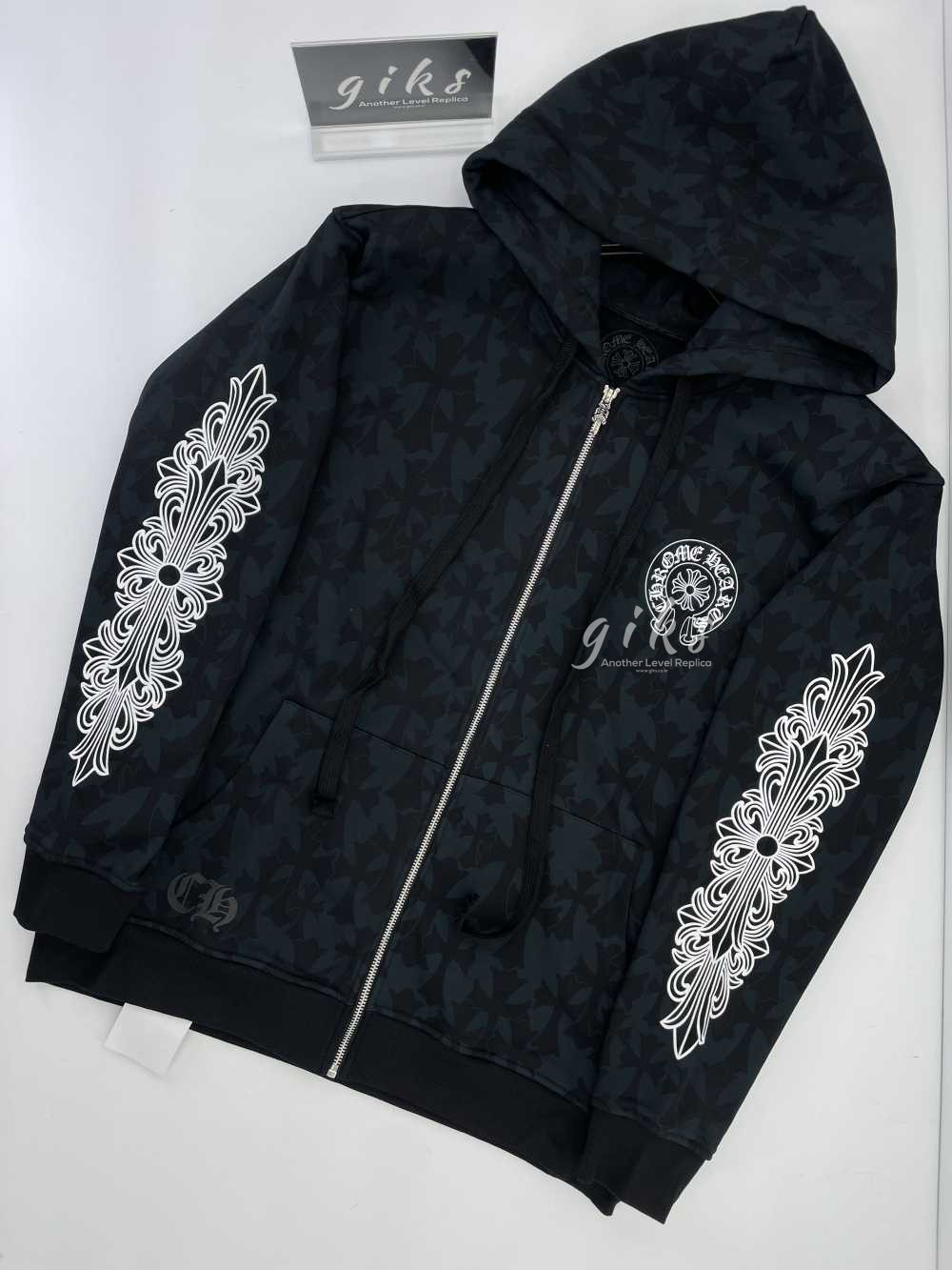 크롬하츠 블랙 토널 모노그램 스크롬 말굽 로고 집업 후디