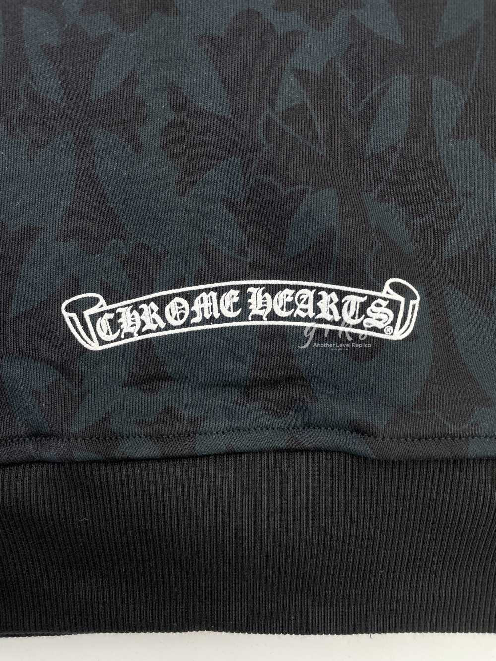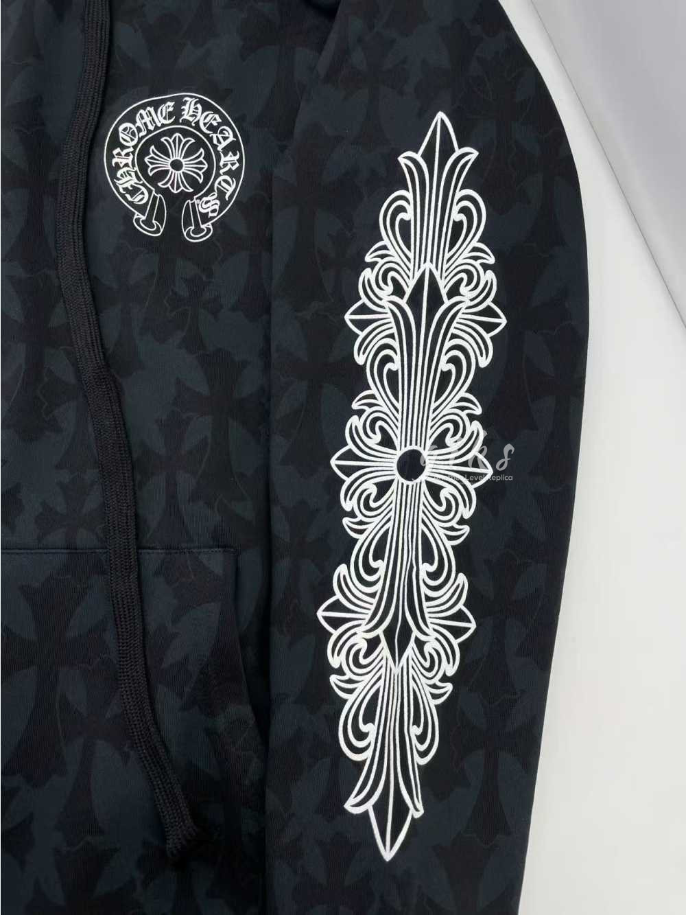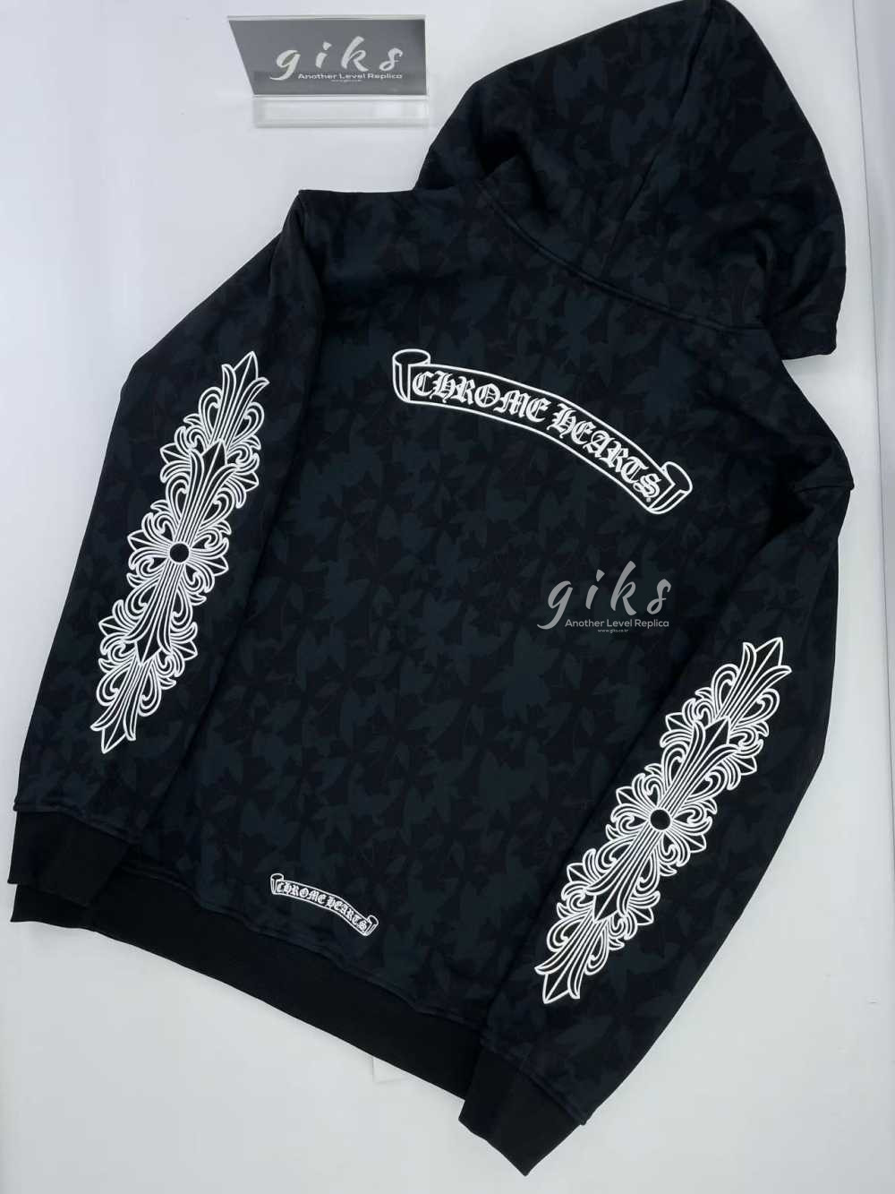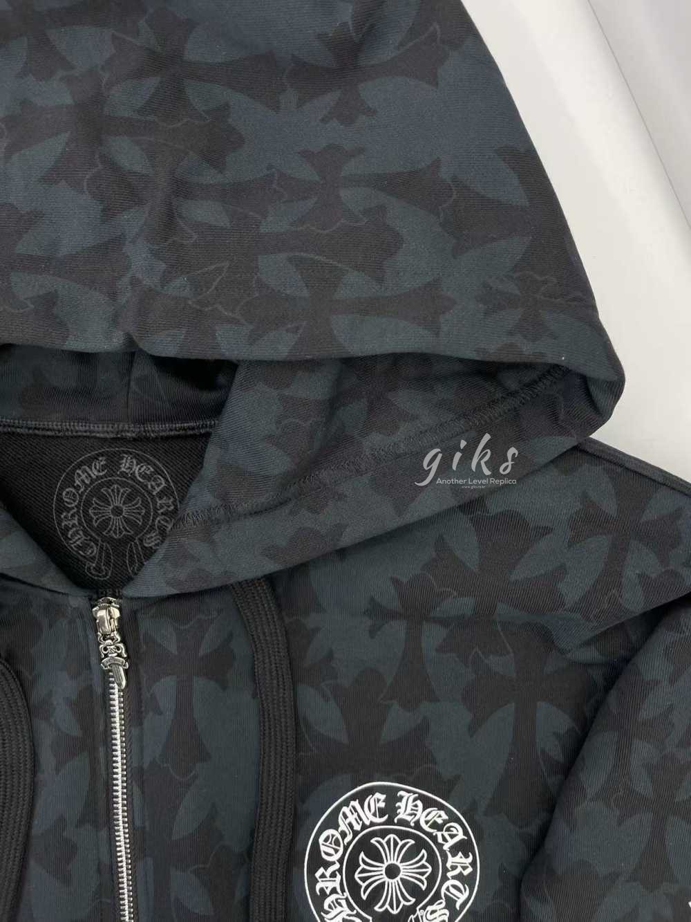 크롬하츠 블랙 토널 모노그램 스크롬 말굽 로고 집업 후디