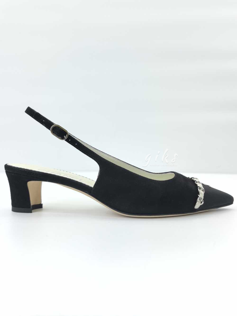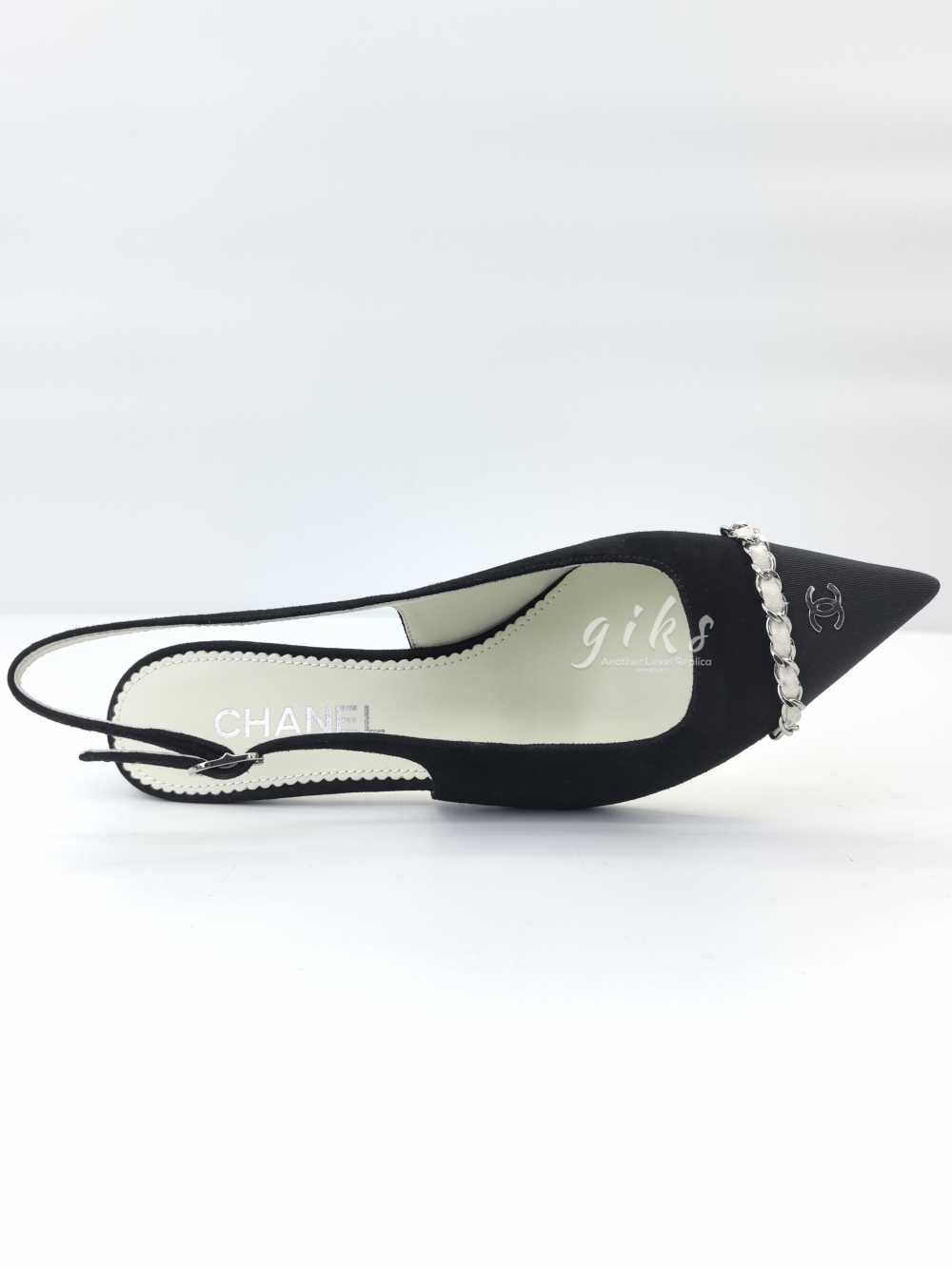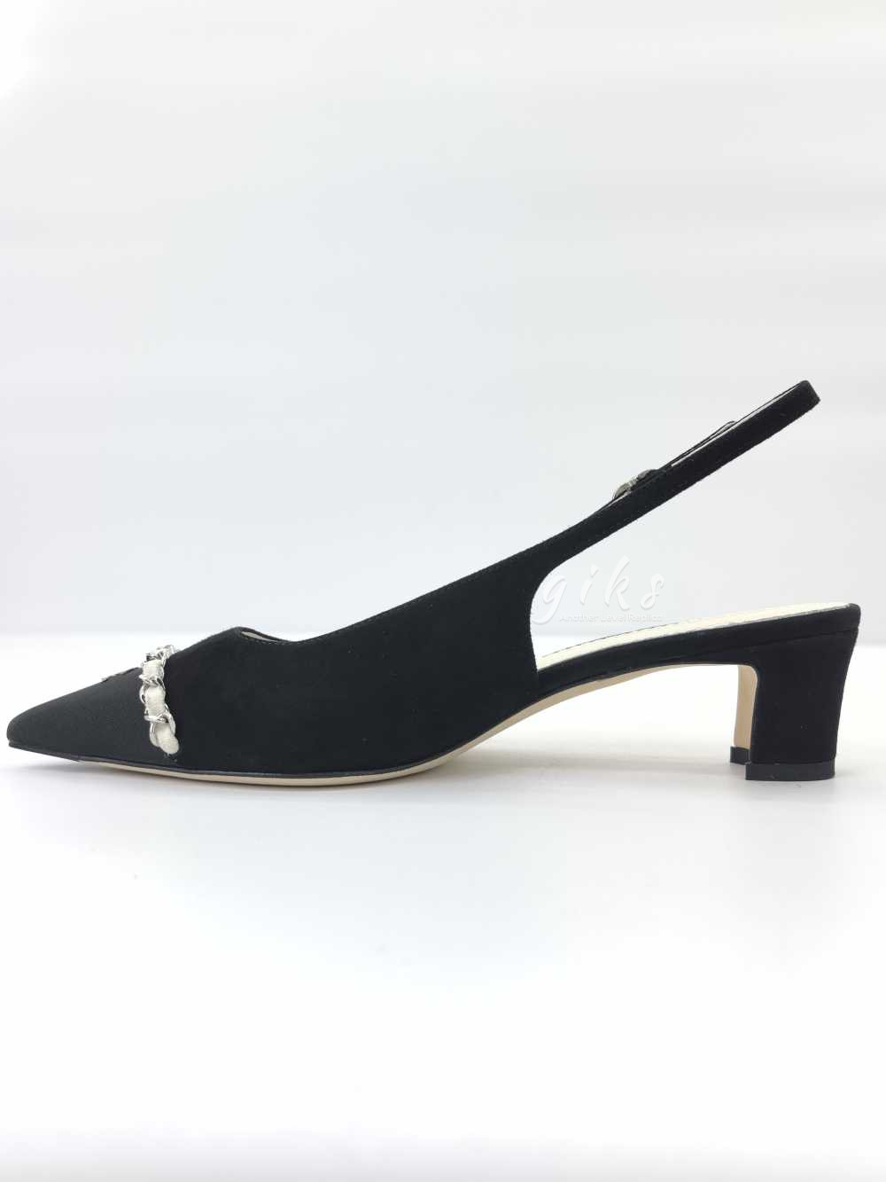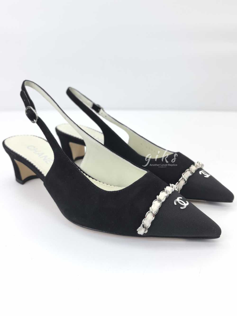 샤넬 슬링백 스웨이드 카프스킨 그로그랭 메탈 & 블랙 라이트 그레이