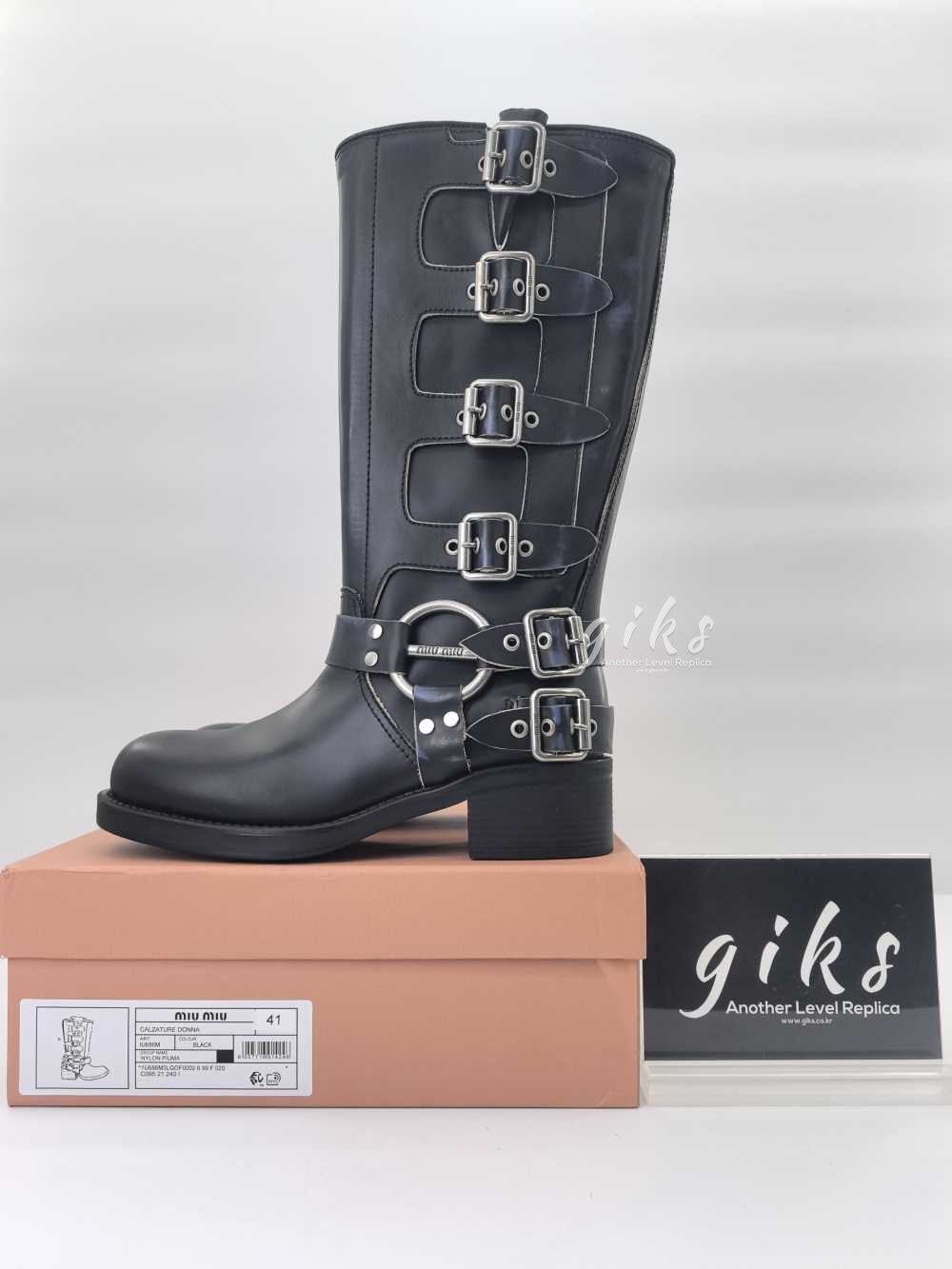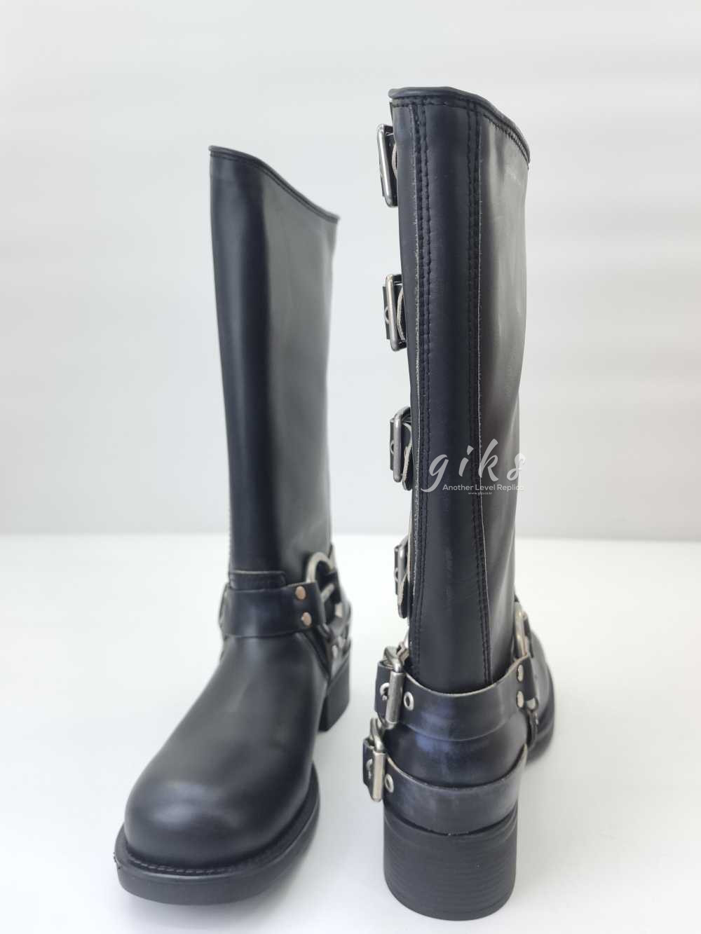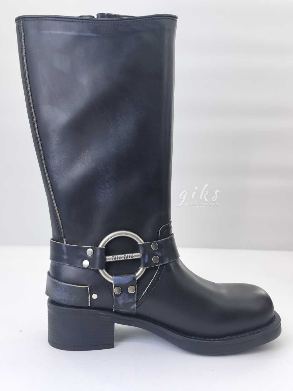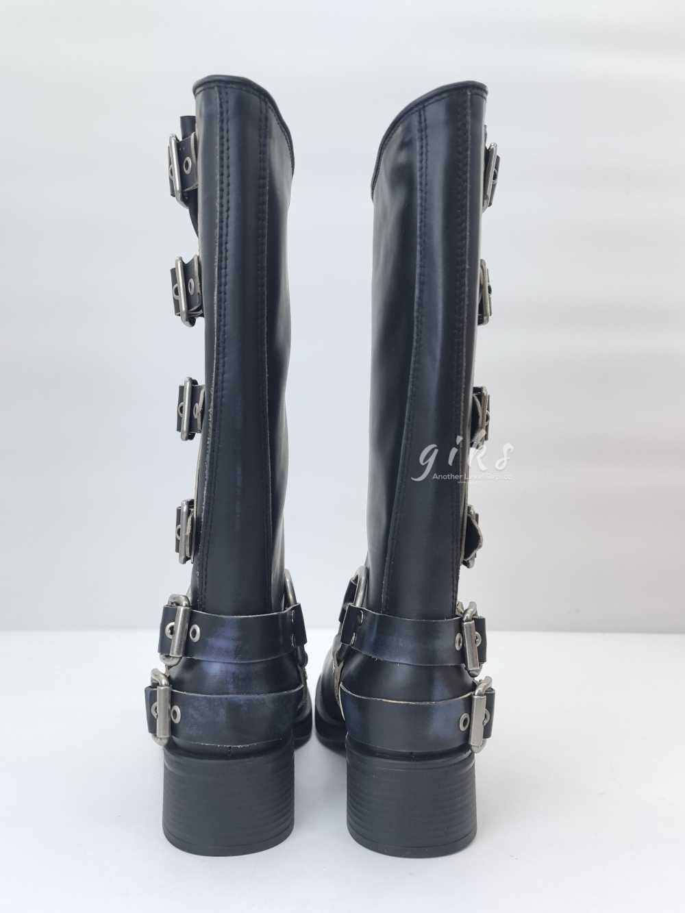미우미우 가죽 바이커 롱 부츠 블랙