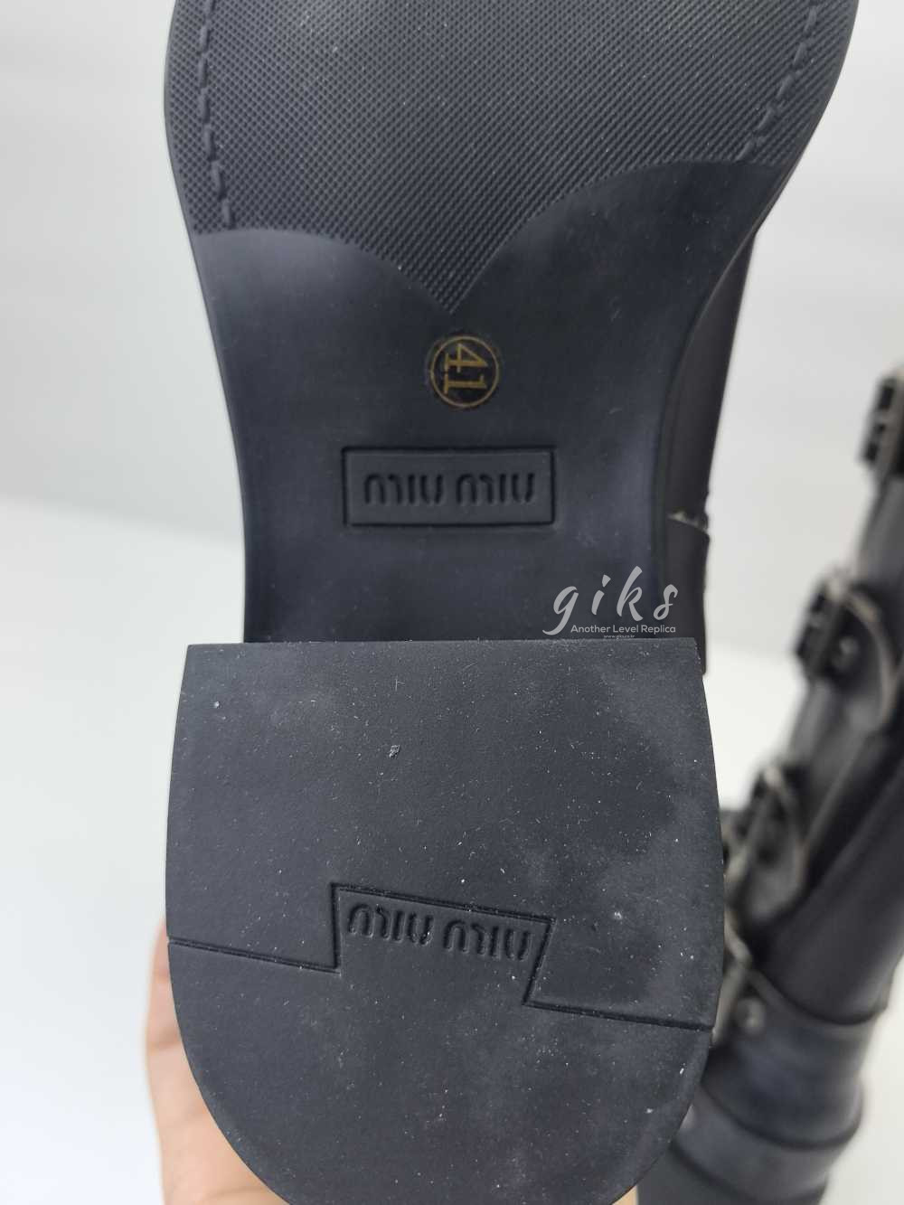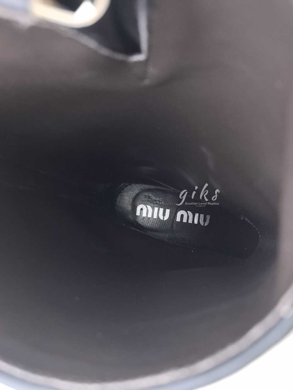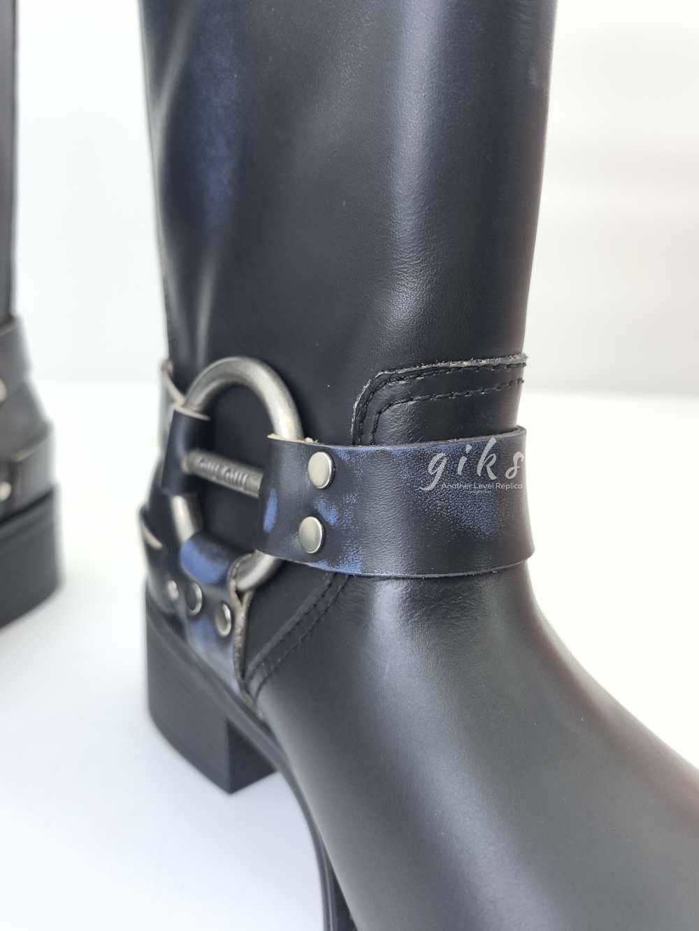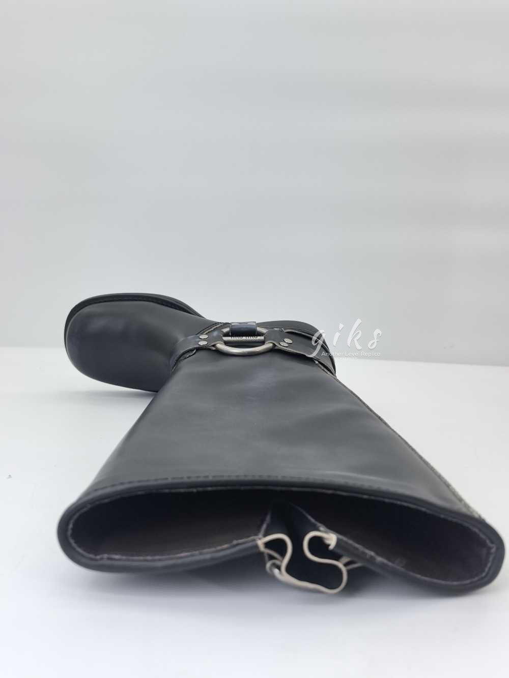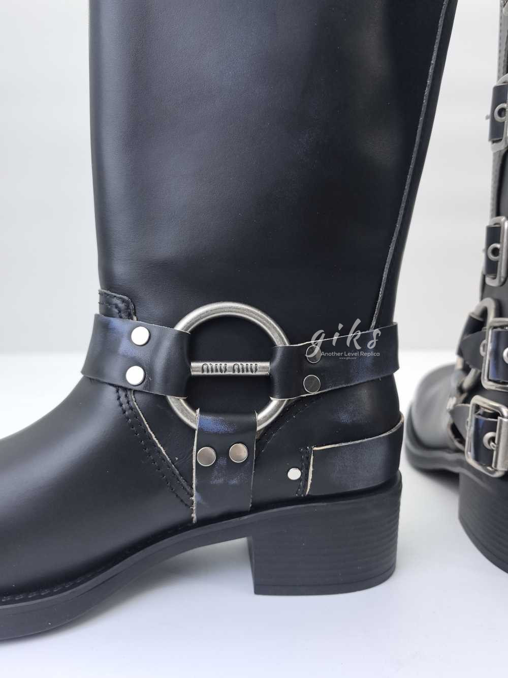 미우미우 가죽 바이커 롱 부츠 블랙
