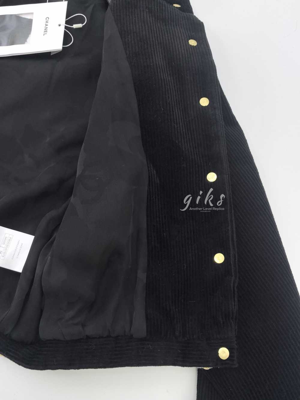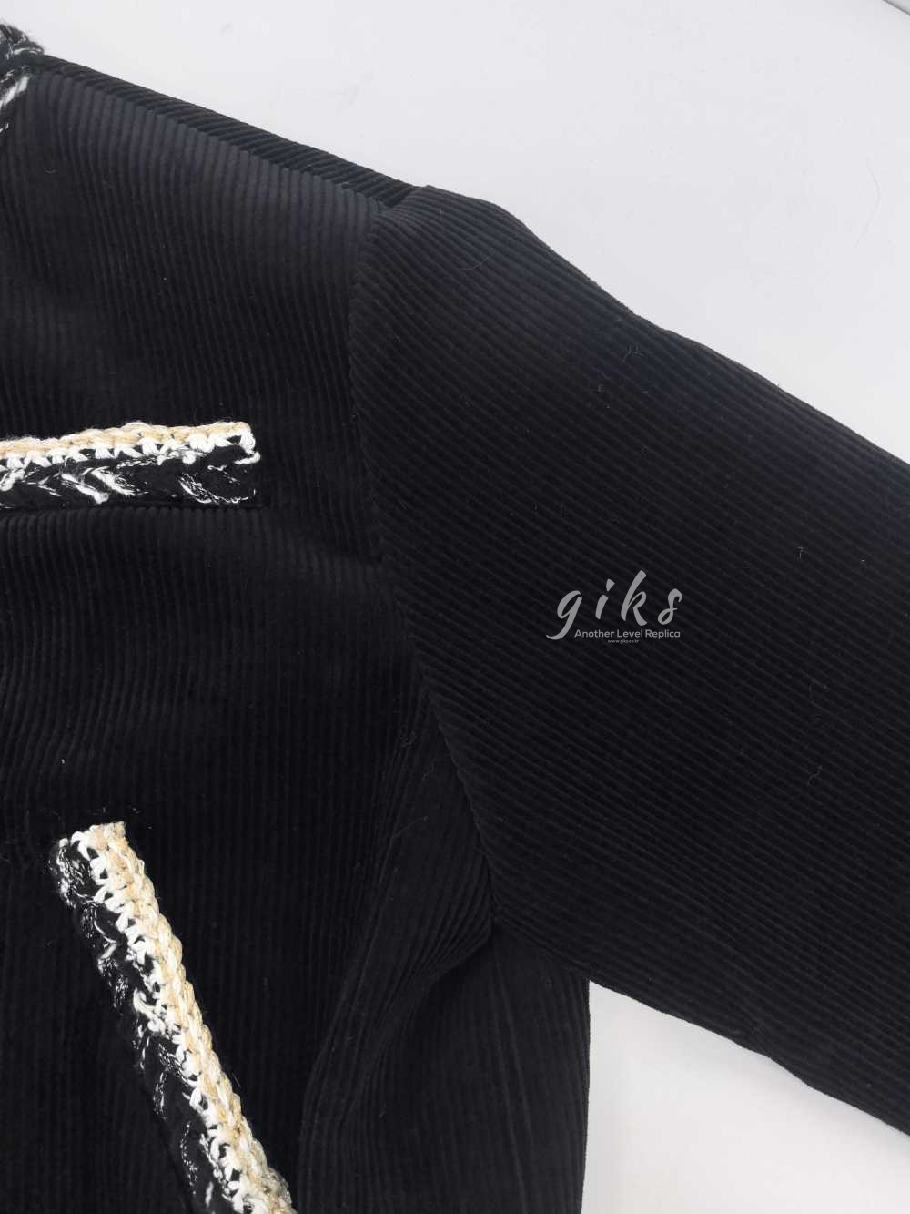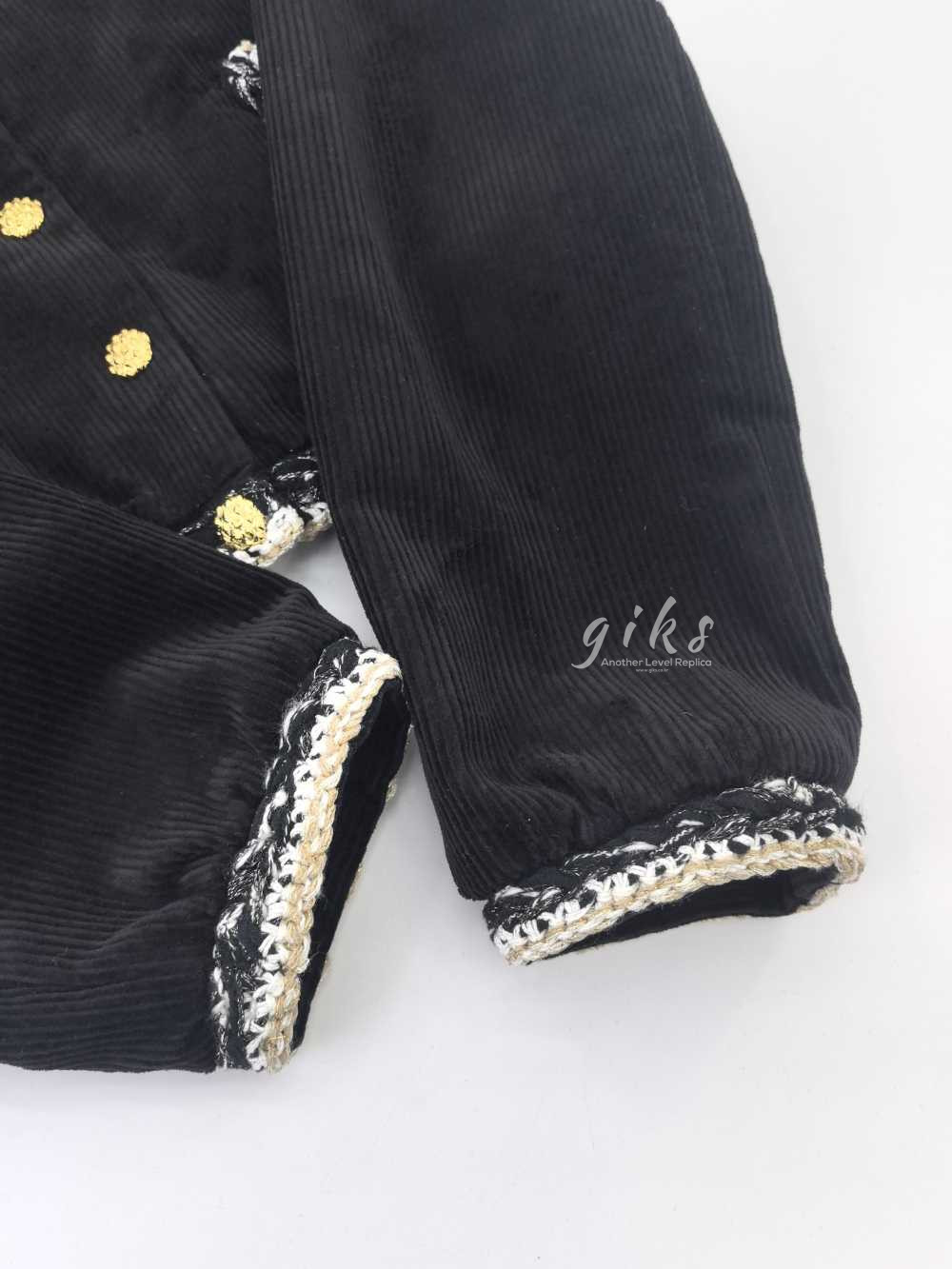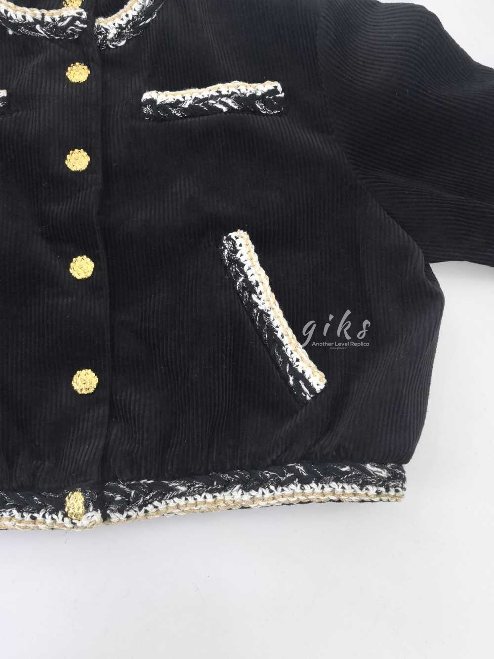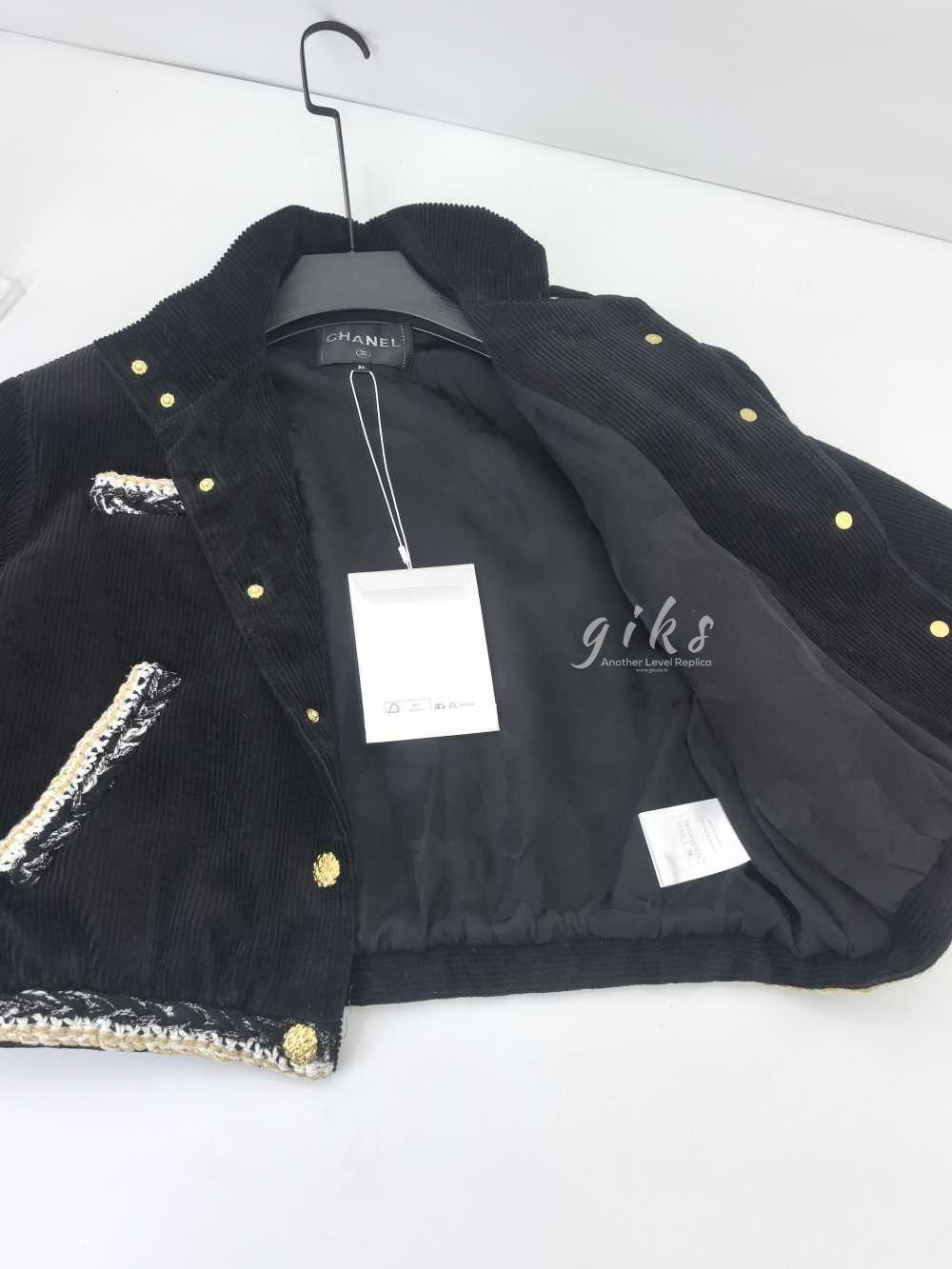 샤넬 블랙 립드 벨벳 블루종 자켓