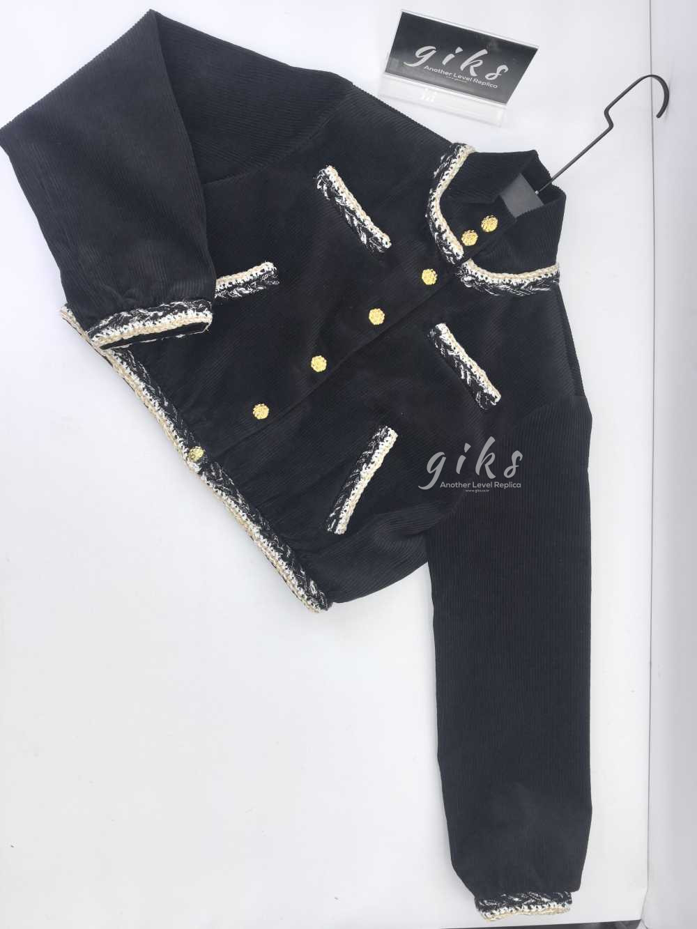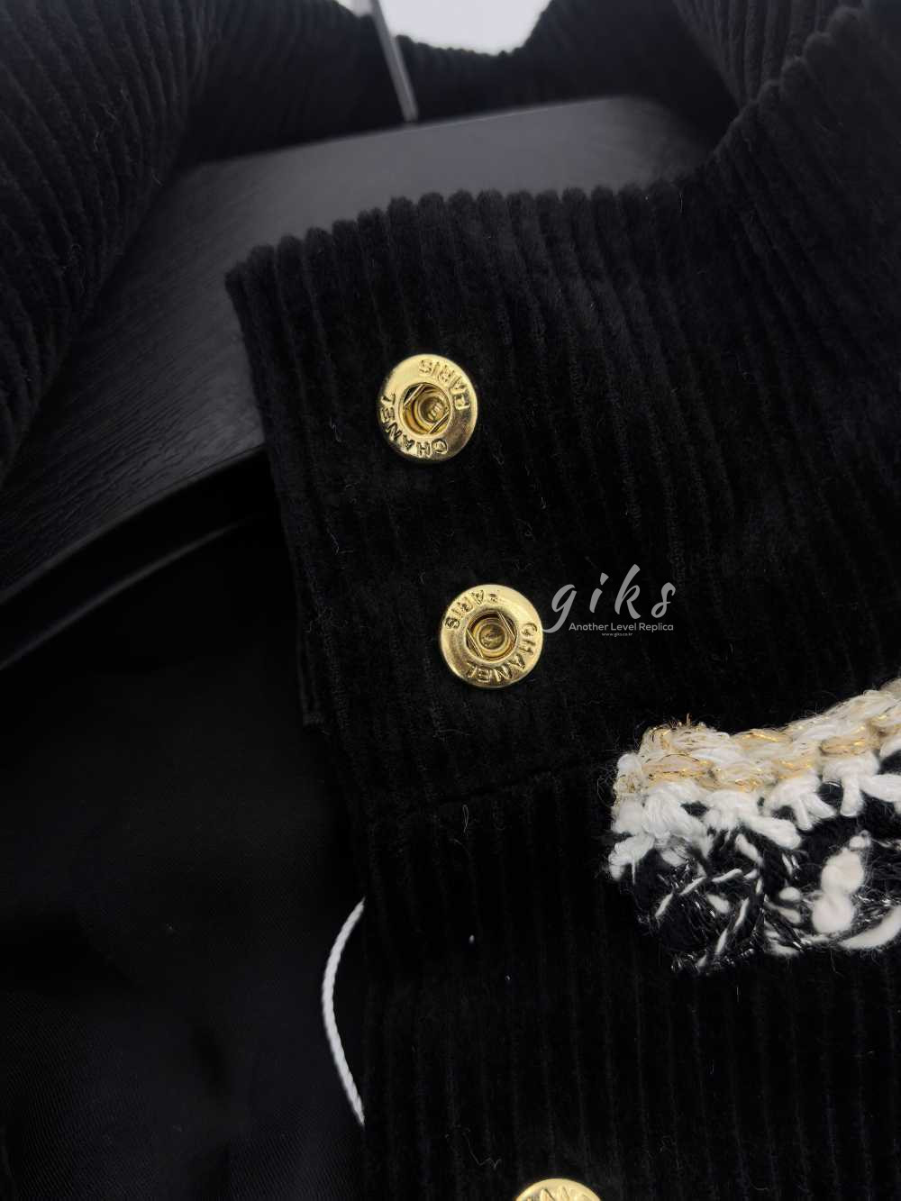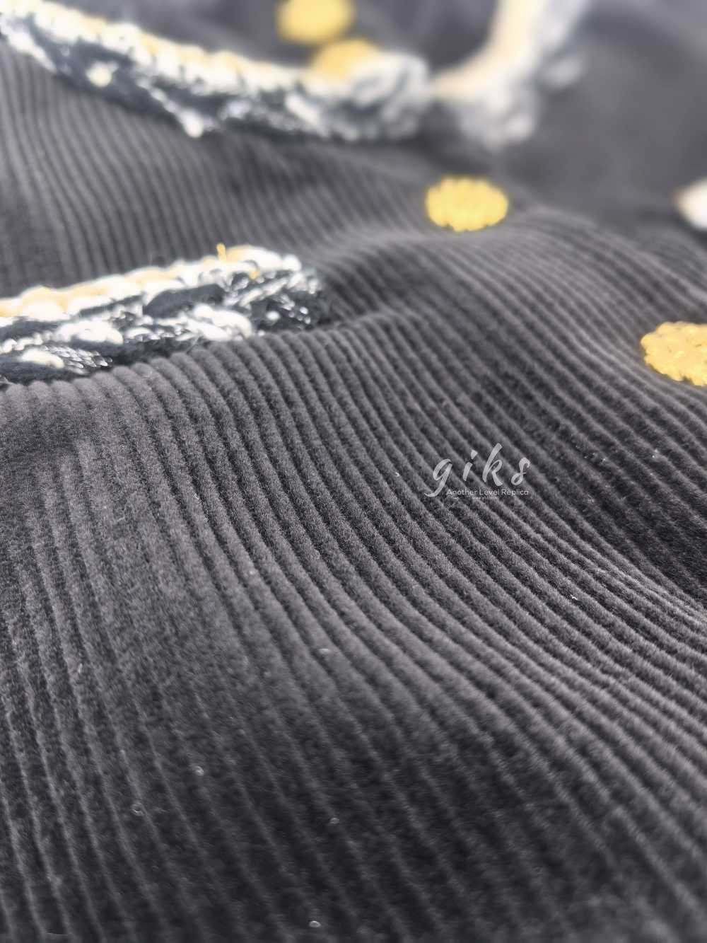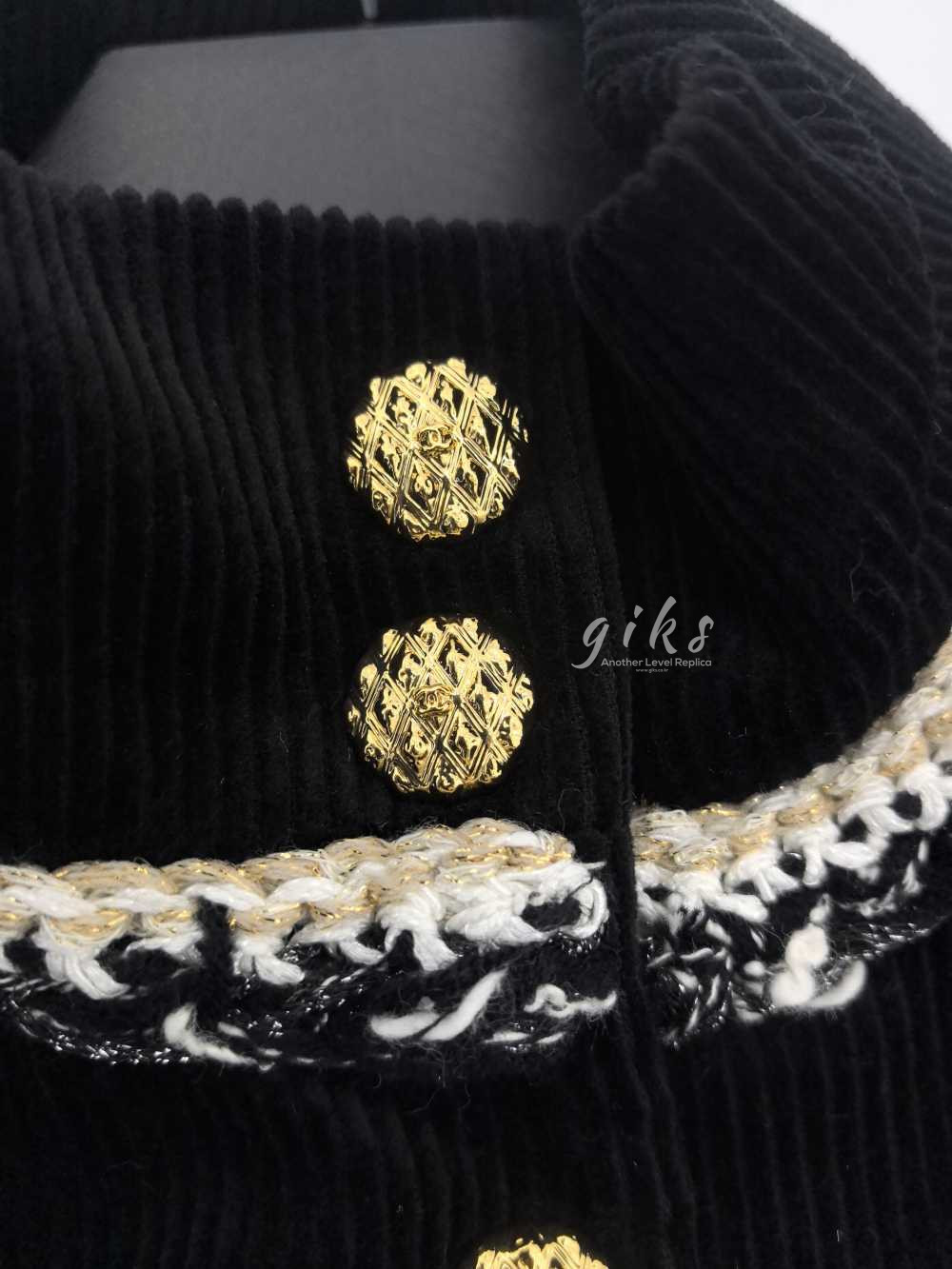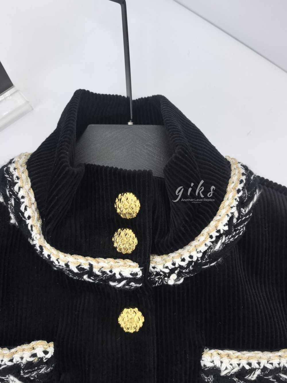 샤넬 블랙 립드 벨벳 블루종 자켓