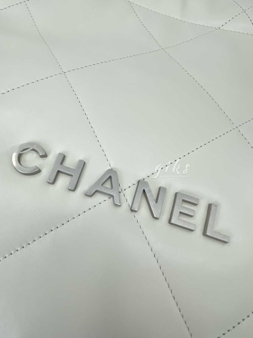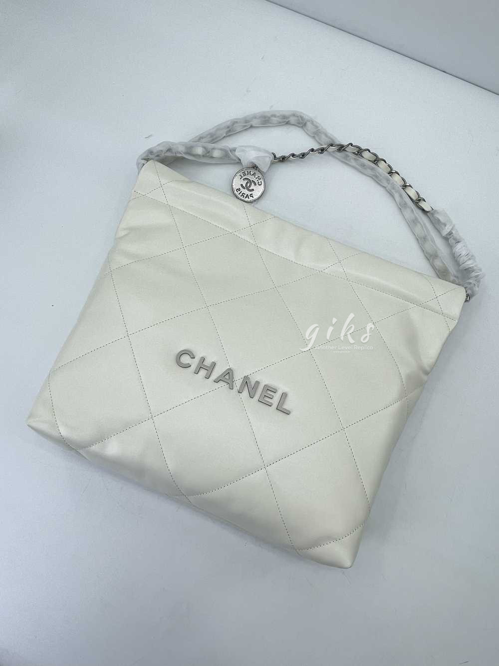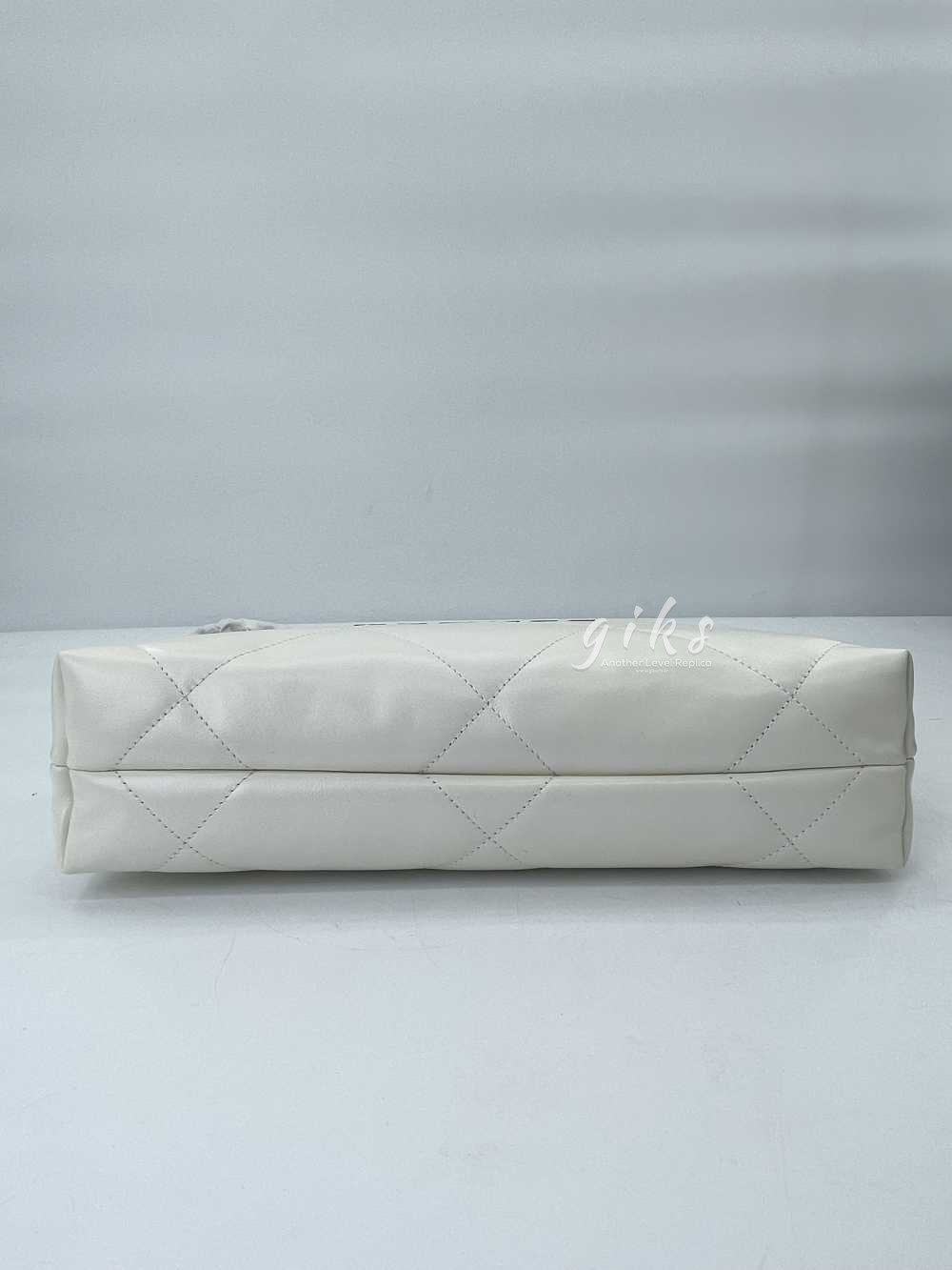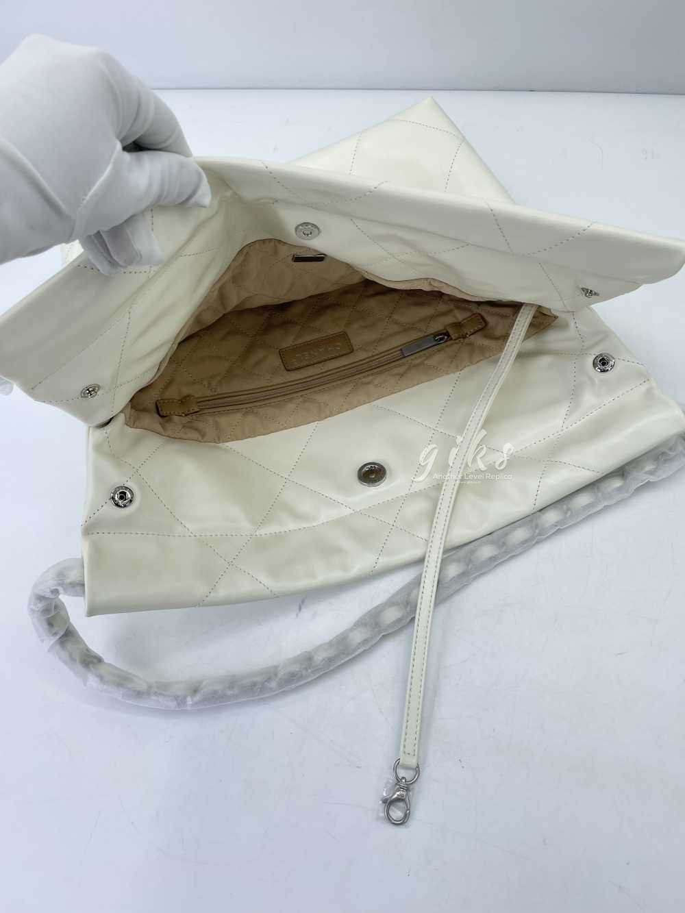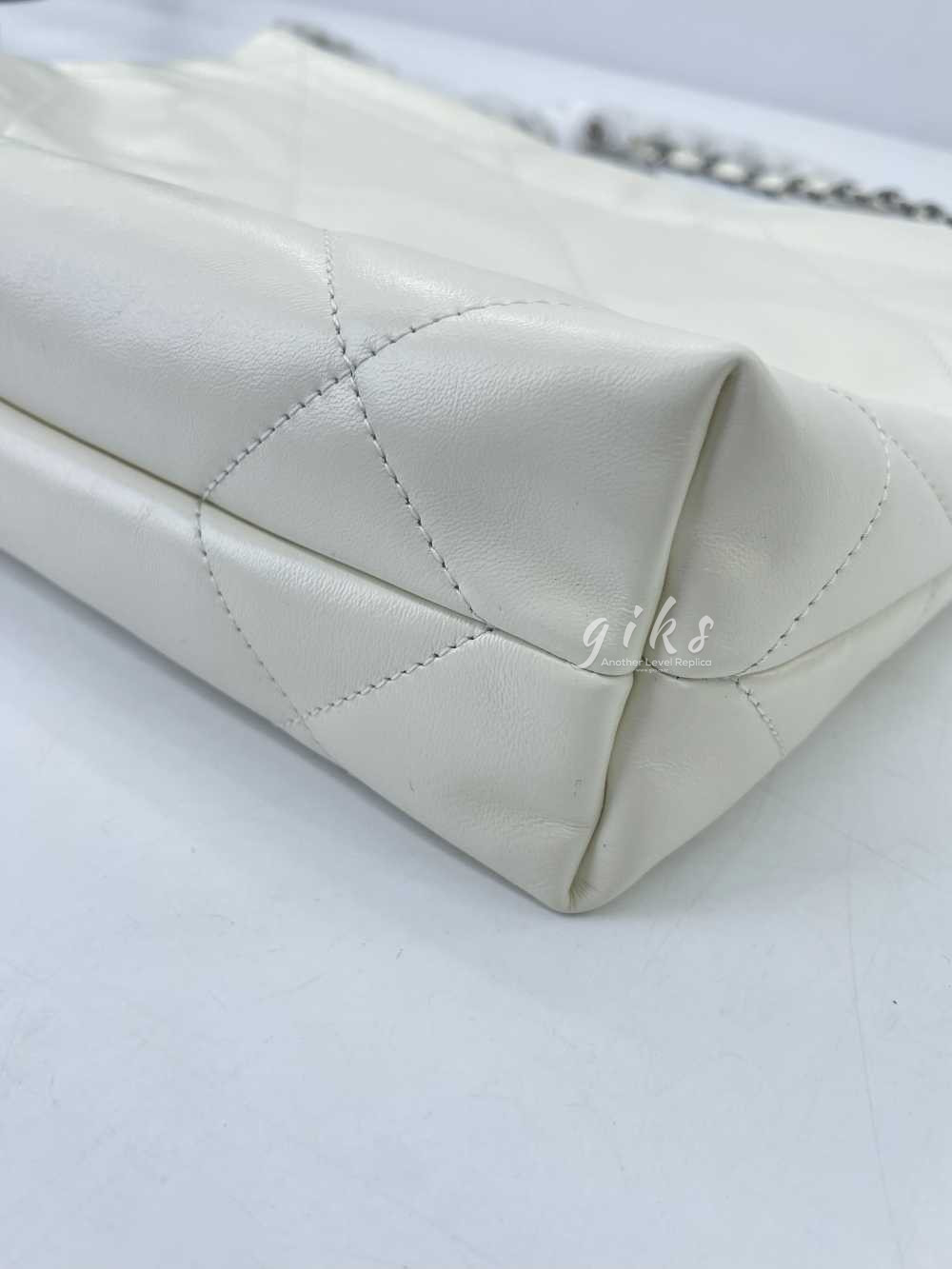 샤넬 22 스몰 핸드백 카프스킨 & 실버 메탈 화이트
