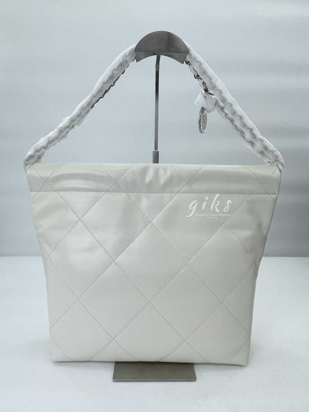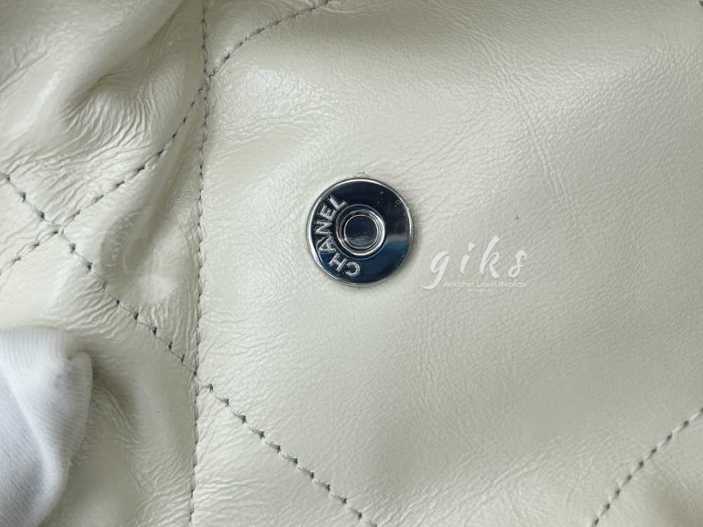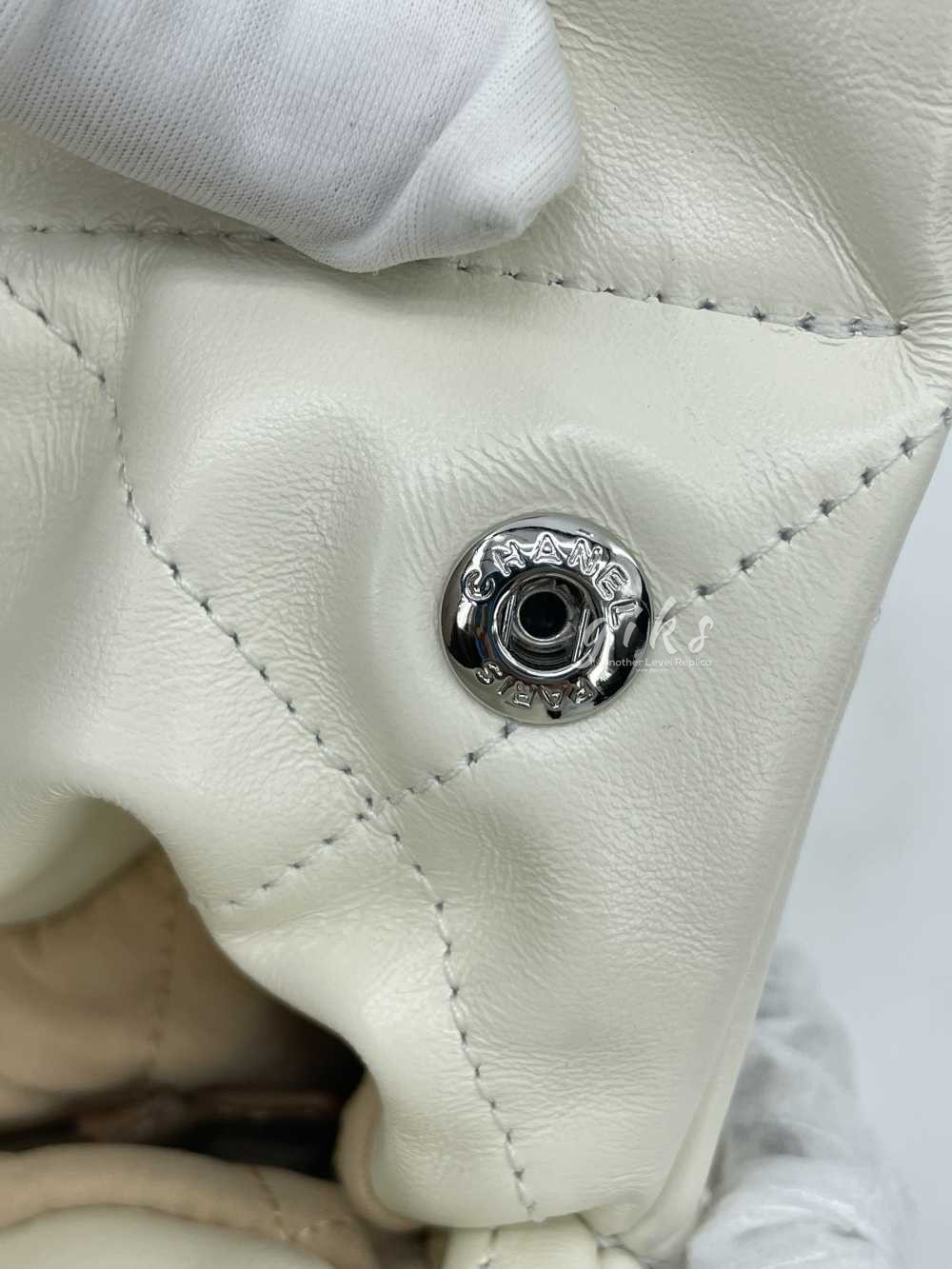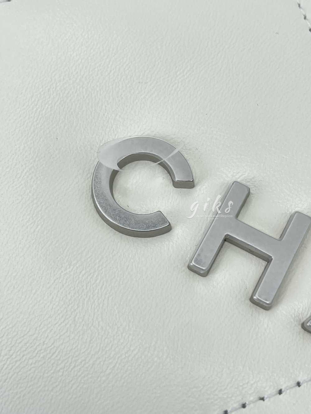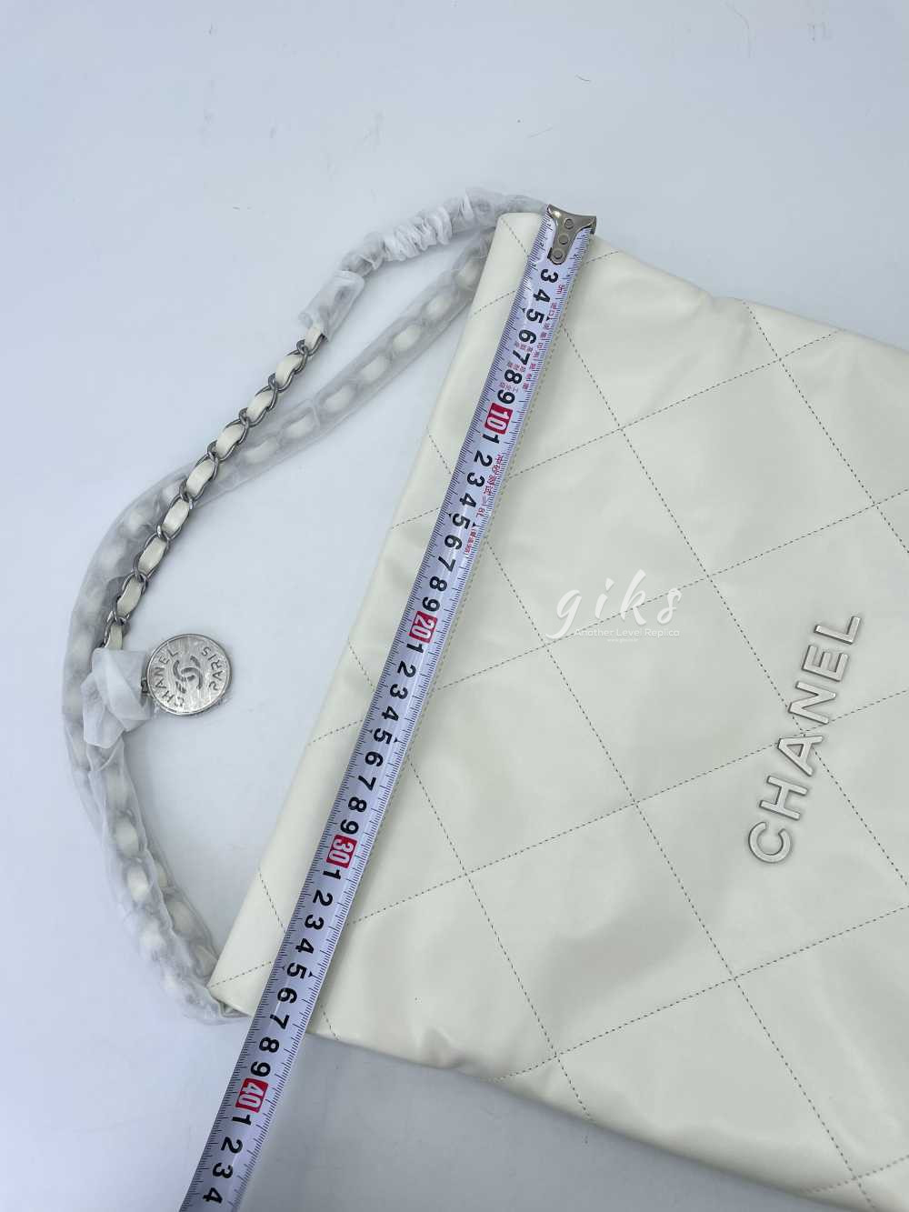 샤넬 22 스몰 핸드백 카프스킨 & 실버 메탈 화이트