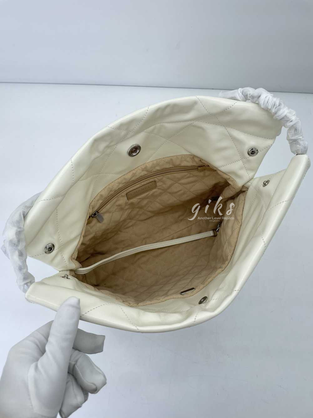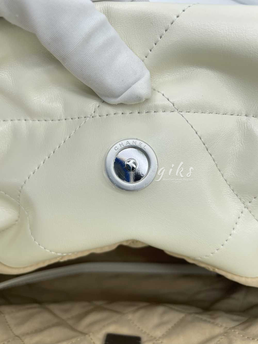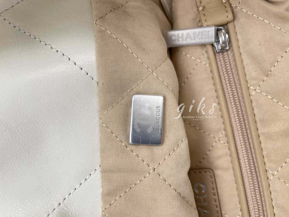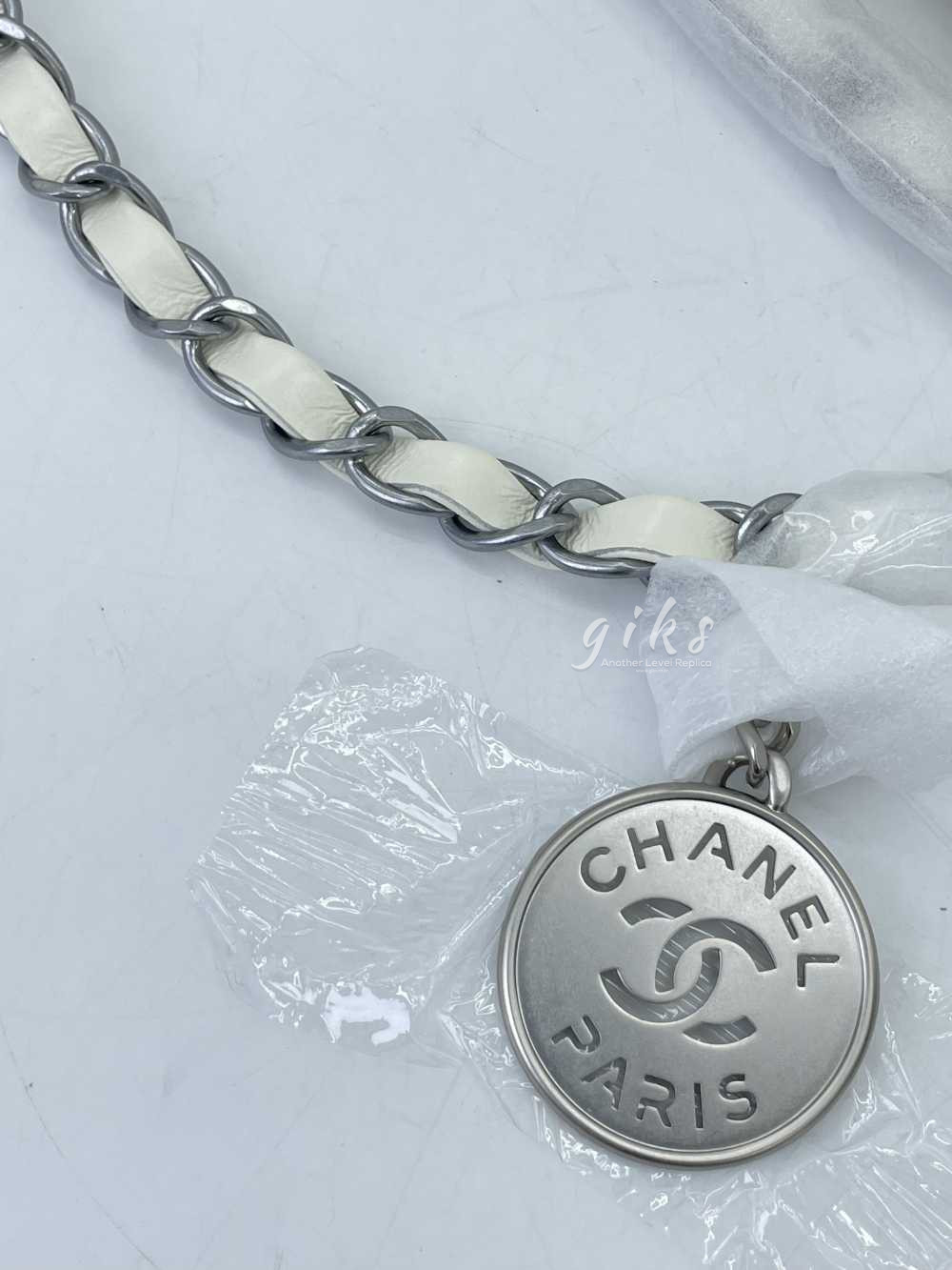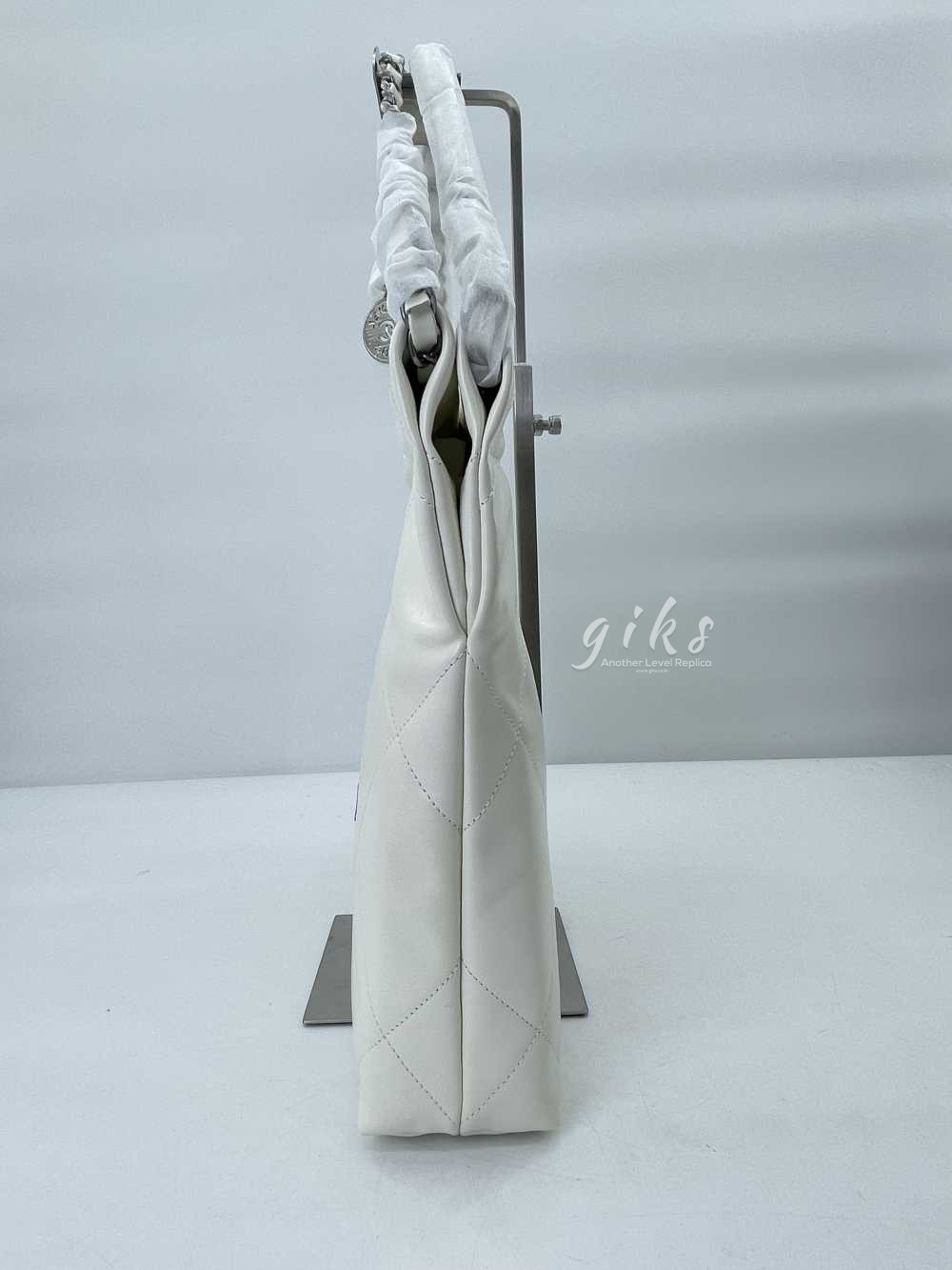 샤넬 22 스몰 핸드백 카프스킨 & 실버 메탈 화이트