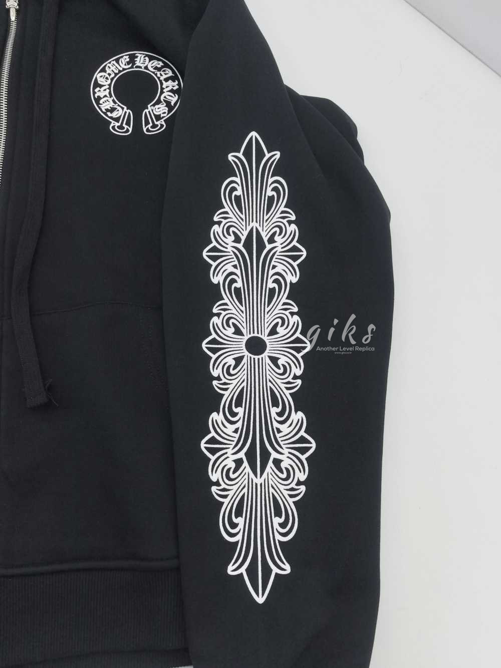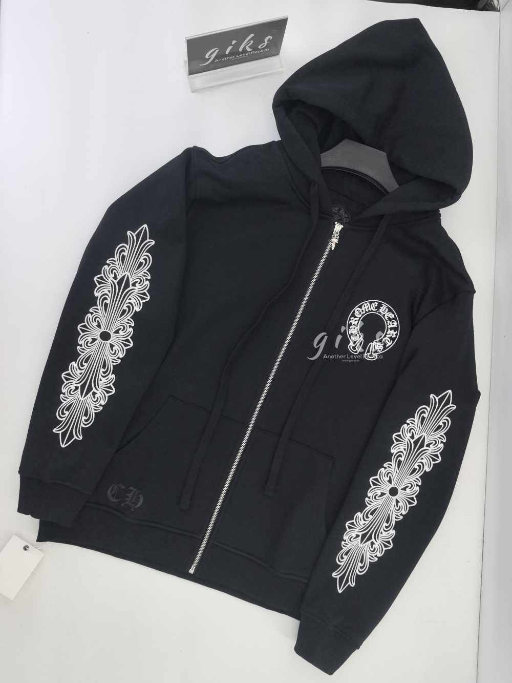 크롬하츠 홀스슈 플로랄 플리스 집업 후드
