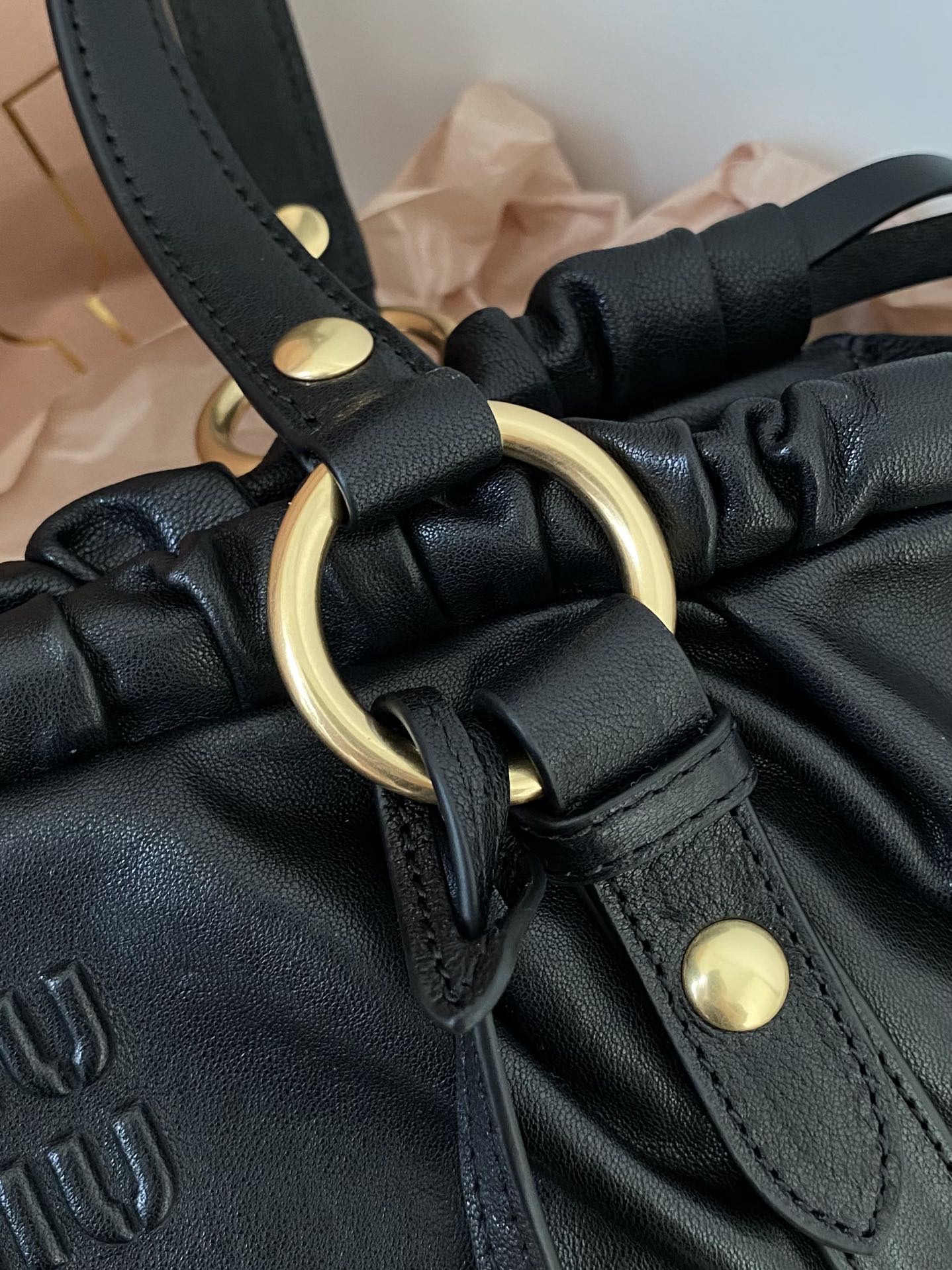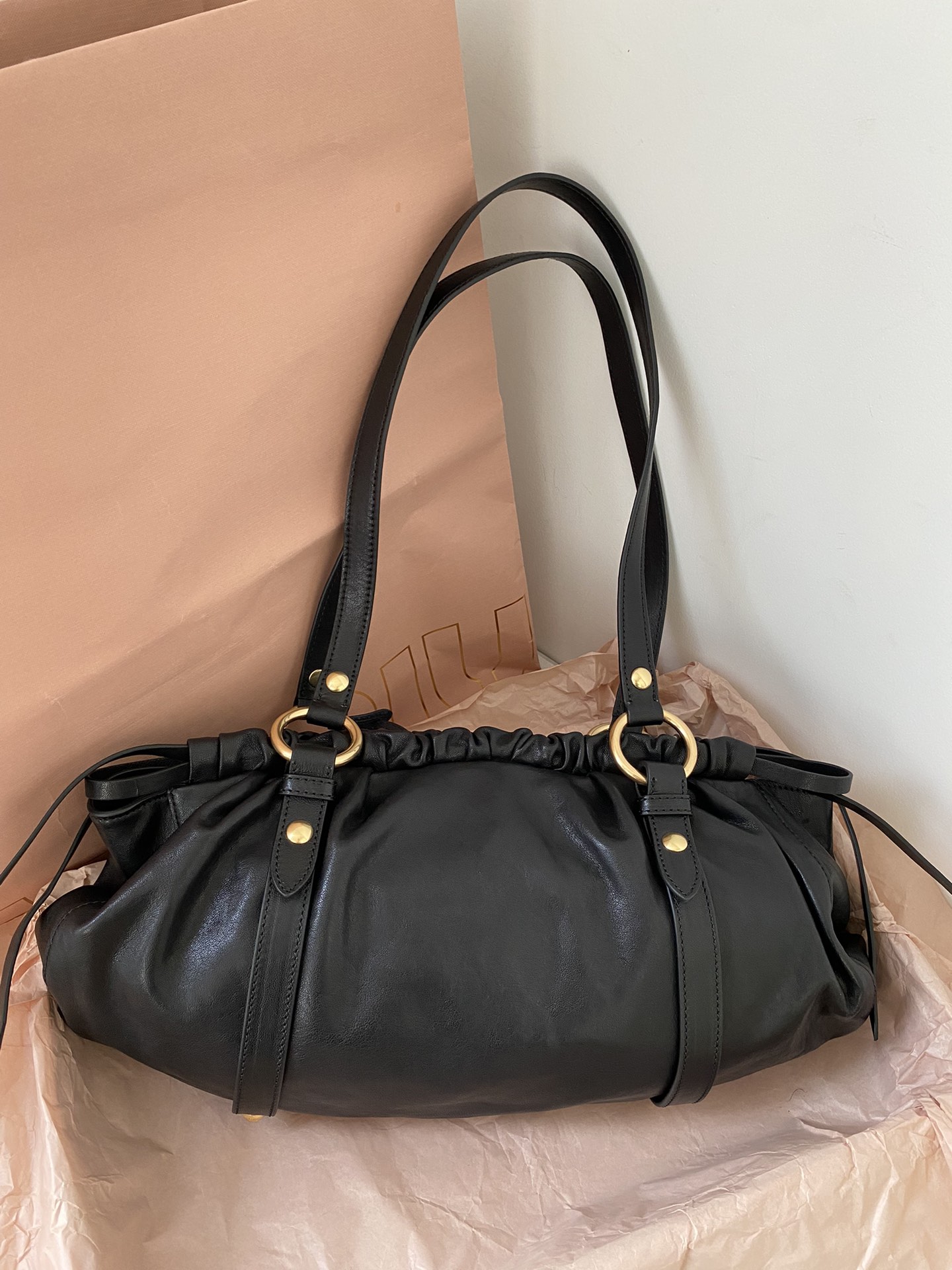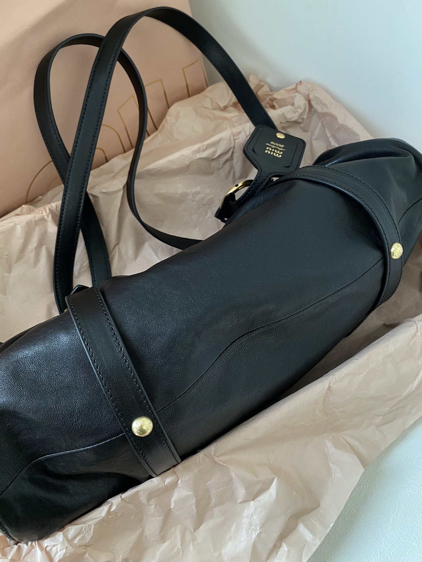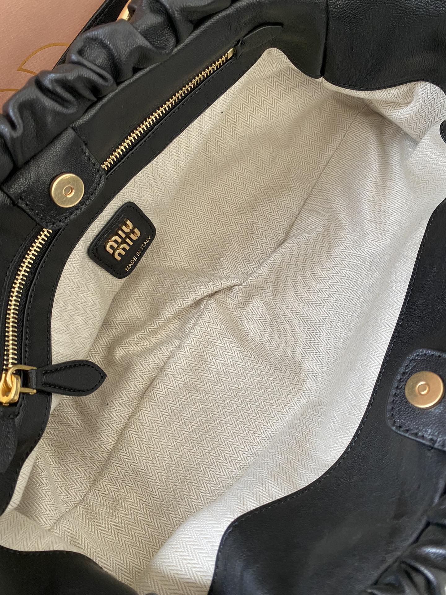 미우미우 마테라쎄 나파 가죽 토트백 블랙