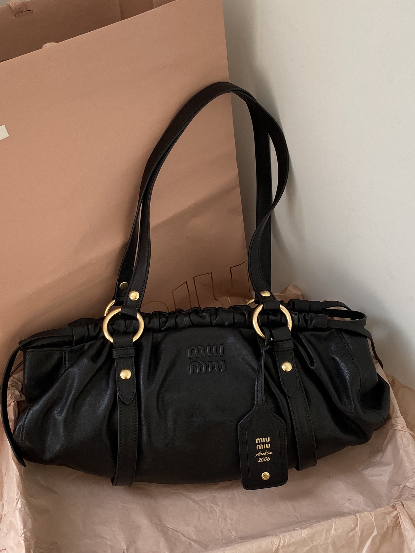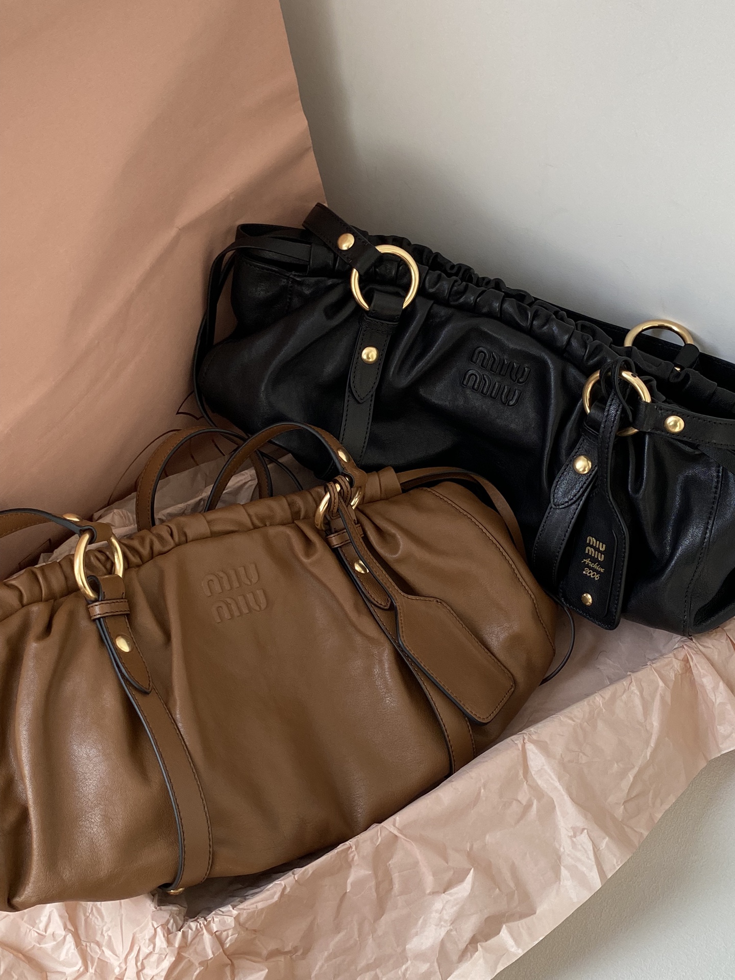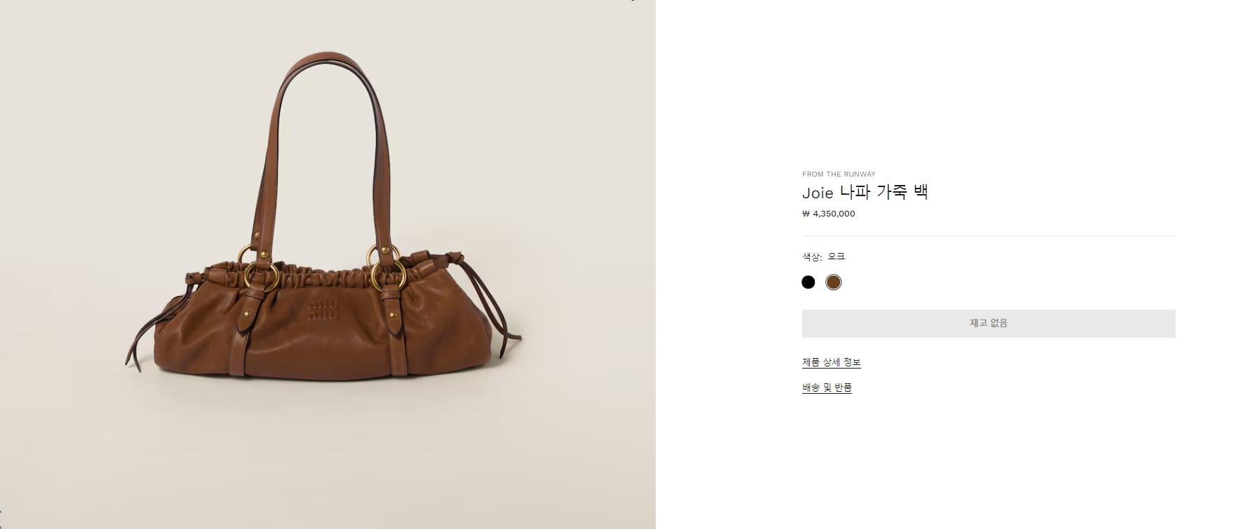 미우미우 Joei 나파 가죽 백 (오크,블랙)