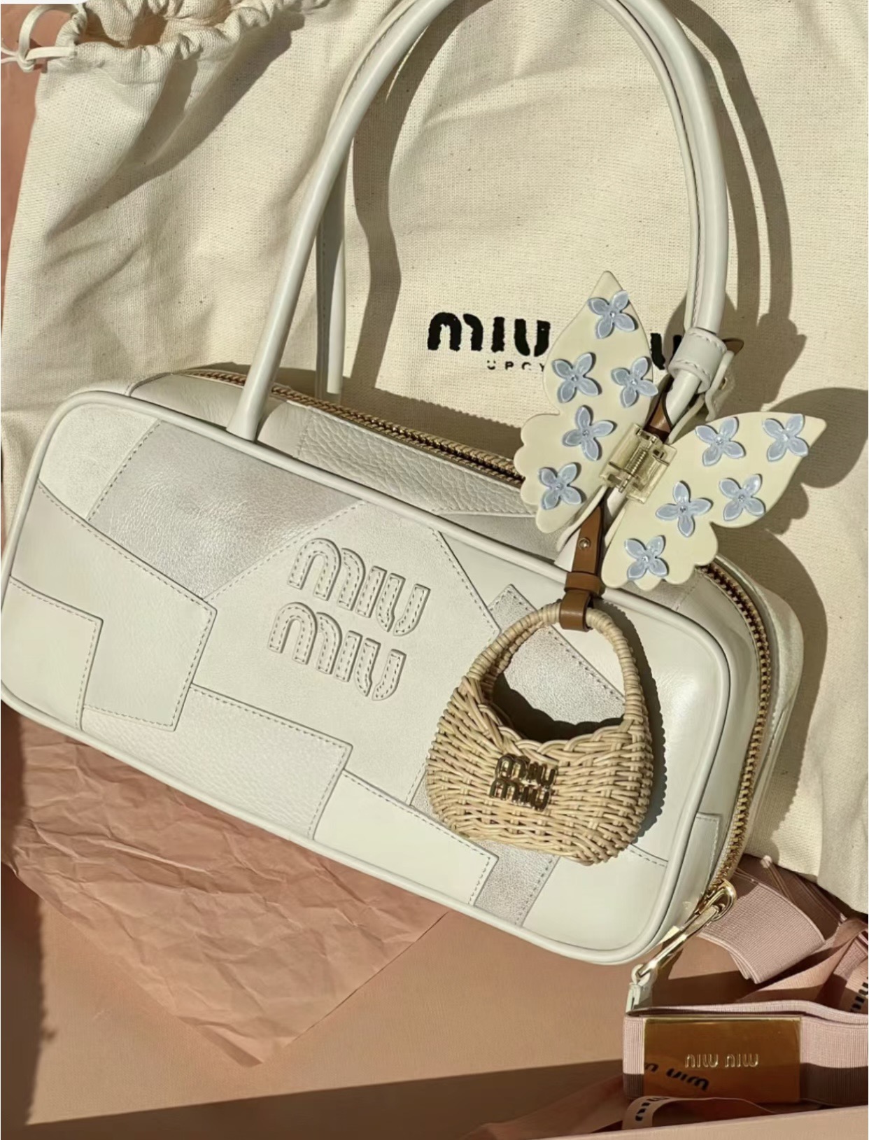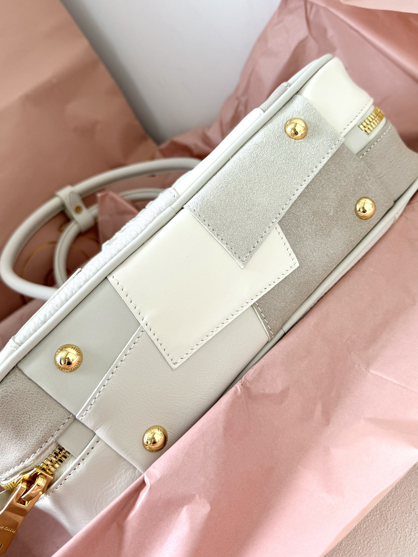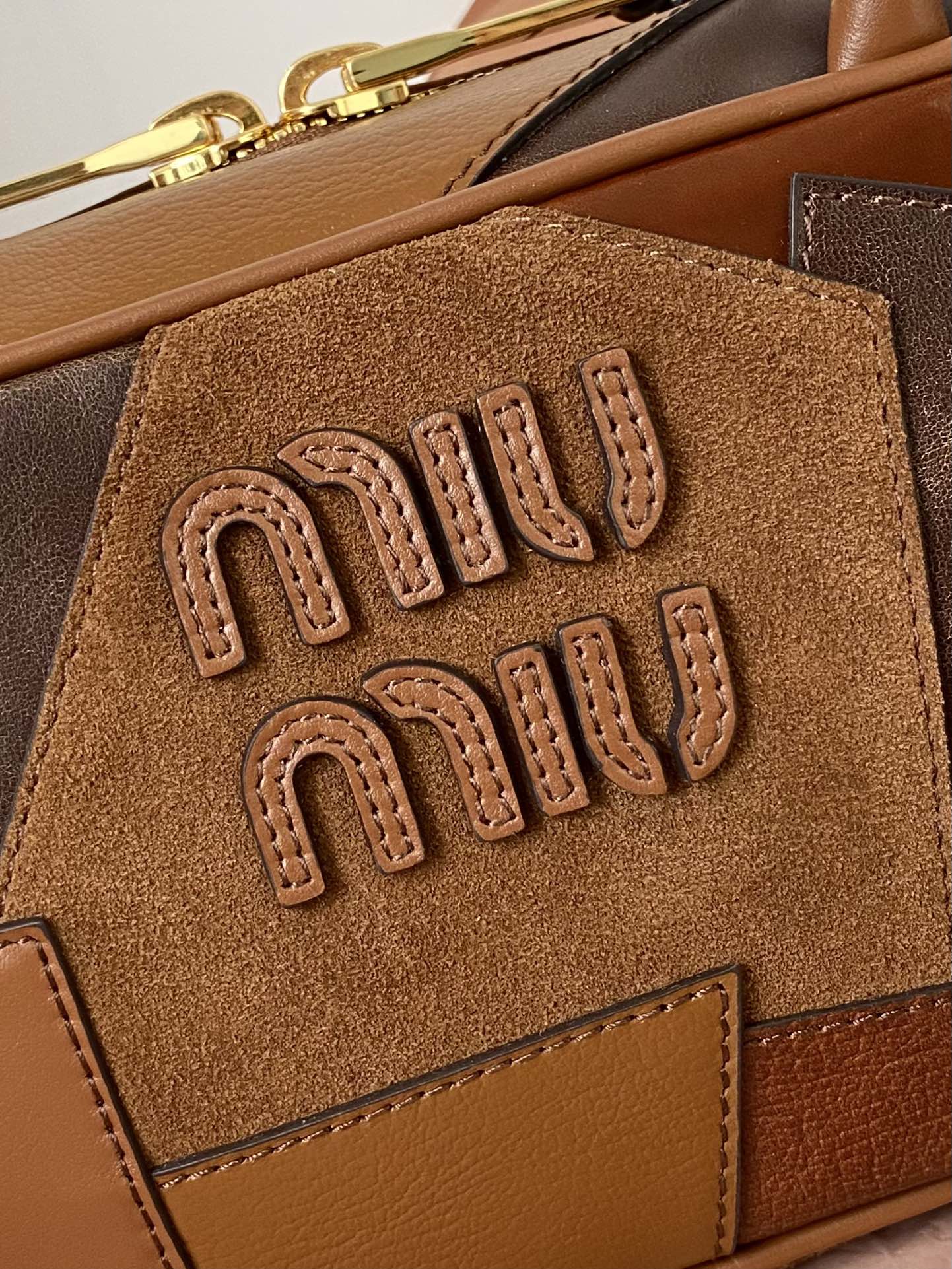 미우미우 아르카디 가죽 패치워크 백 (오크,화이트)
