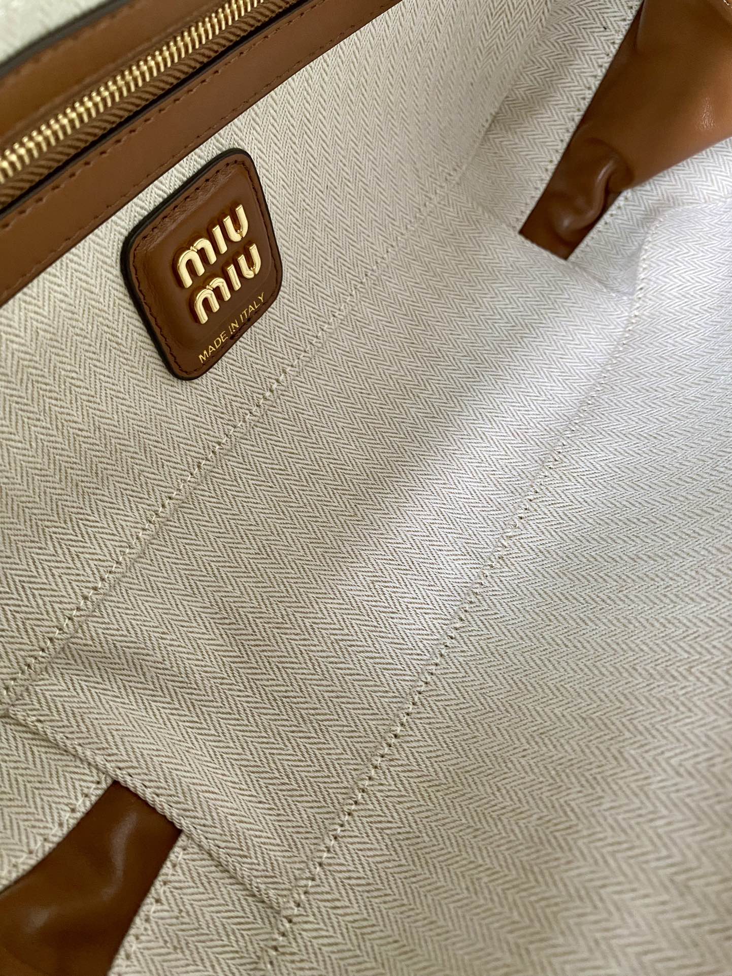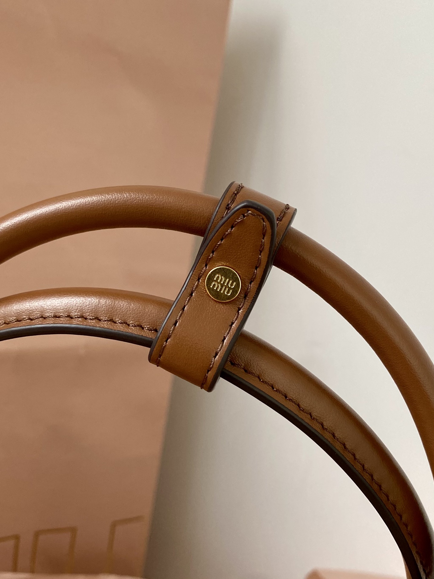 미우미우 아르카디 마테라쎄 나파 가죽 백 캐러멜