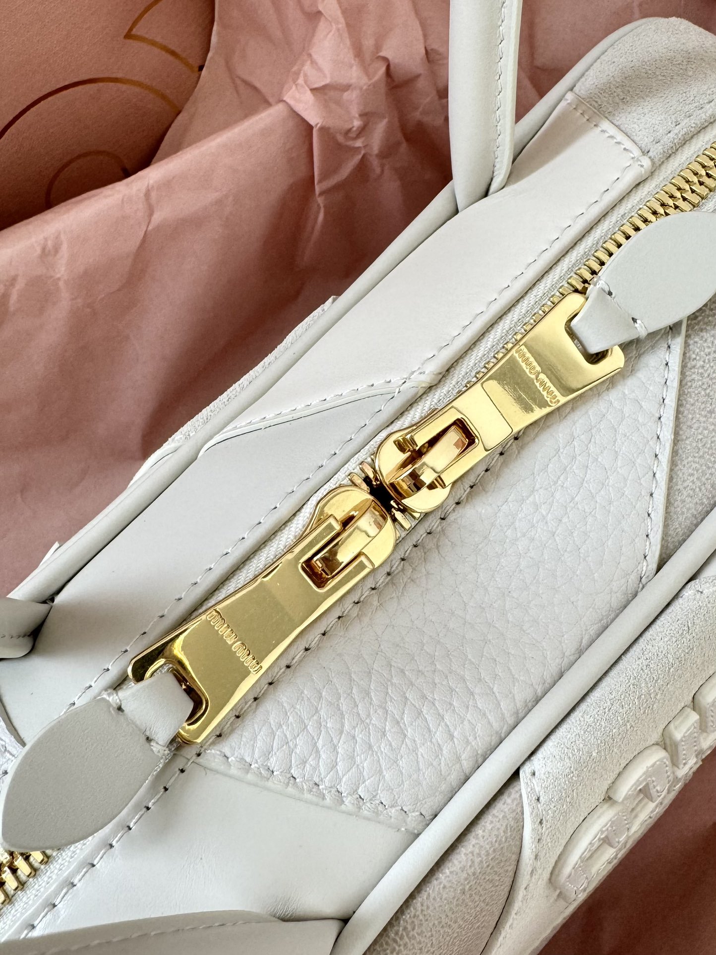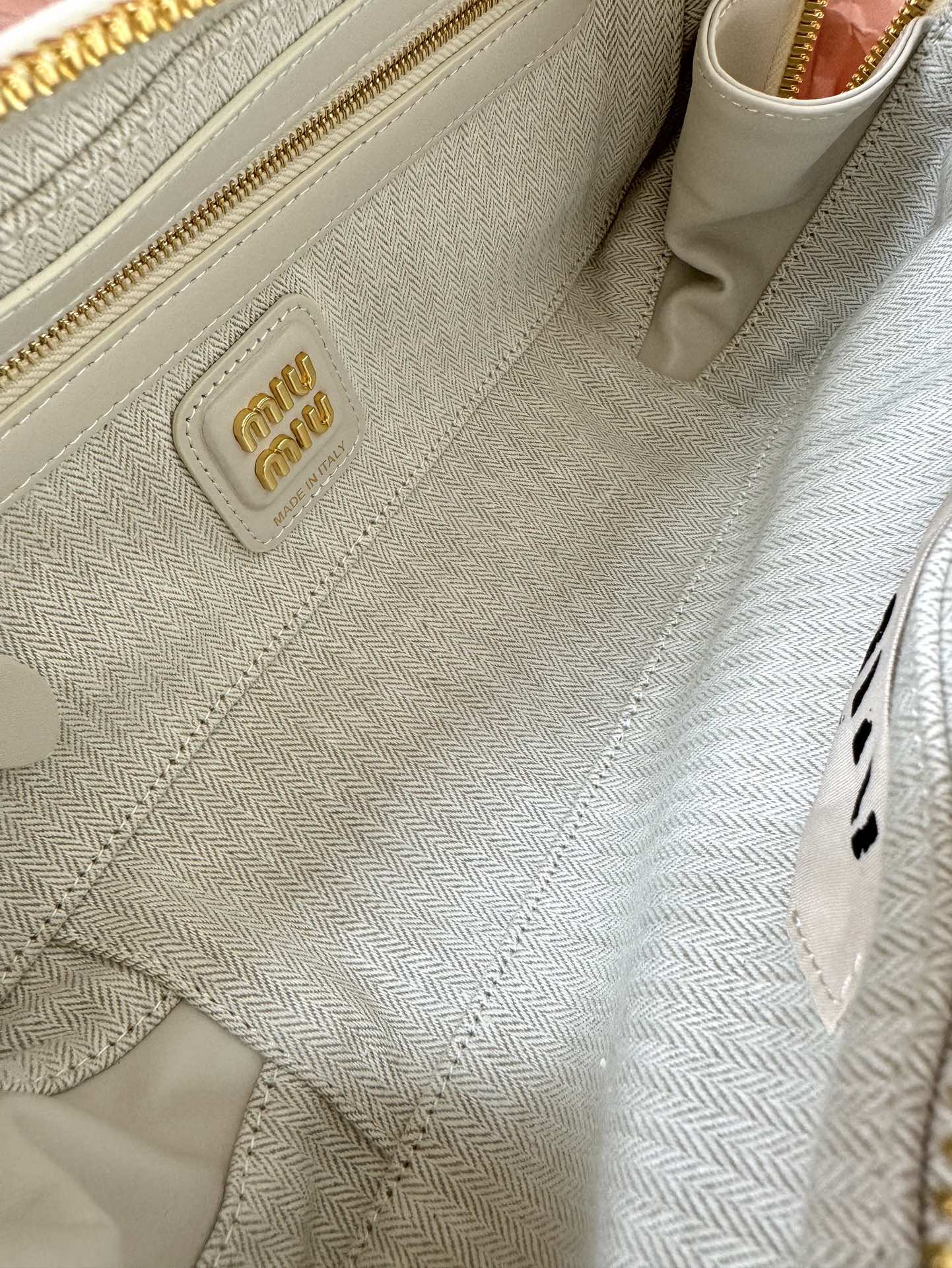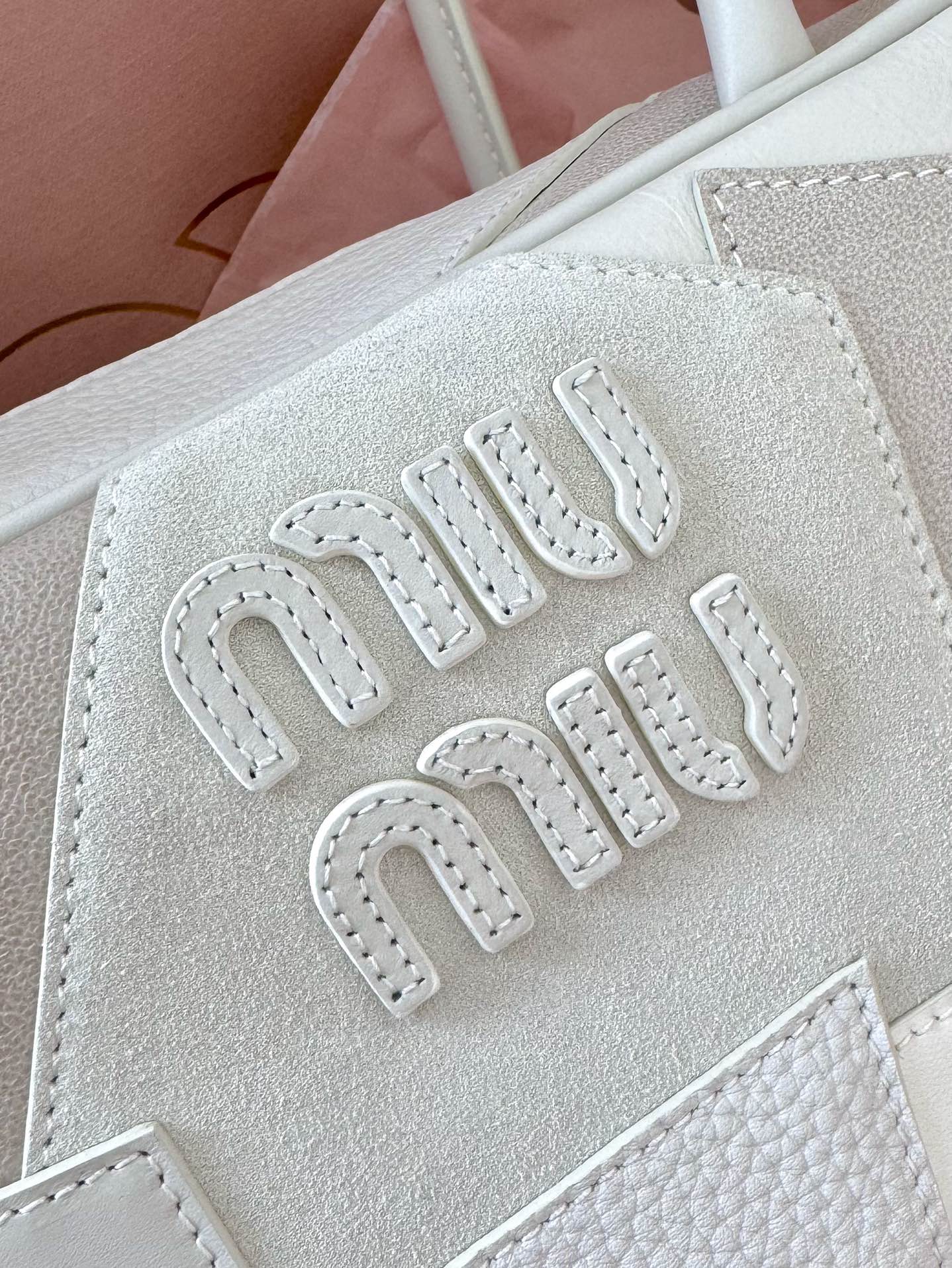 미우미우 아르카디 가죽 패치워크 백 (오크,화이트) > MIU MIU