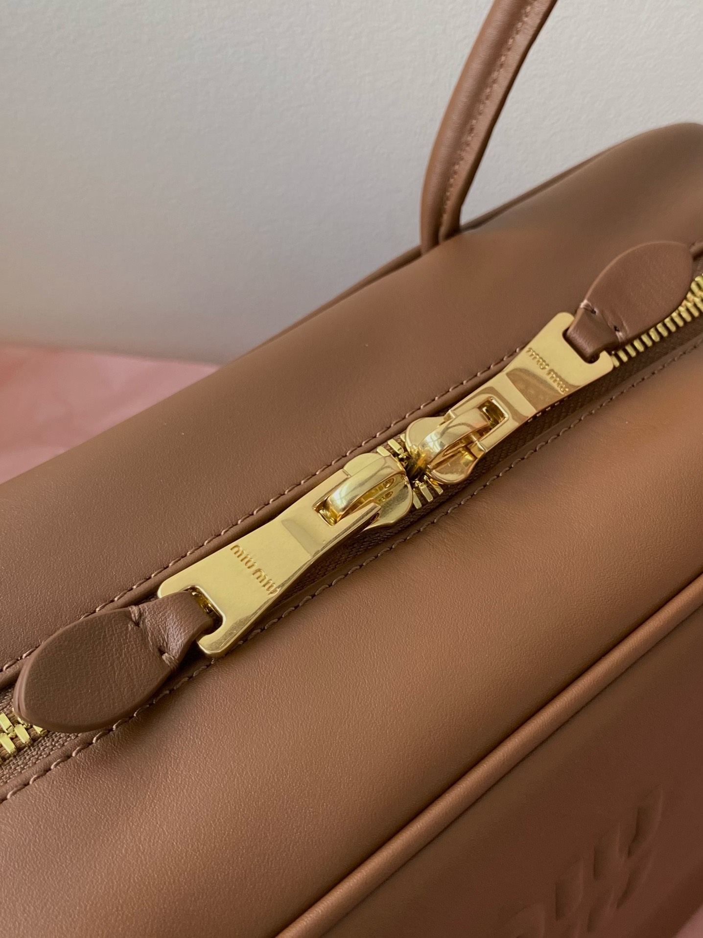 미우미우 레더 탑 핸들 백 (베이지,브라운,블랙) > MIU MIU