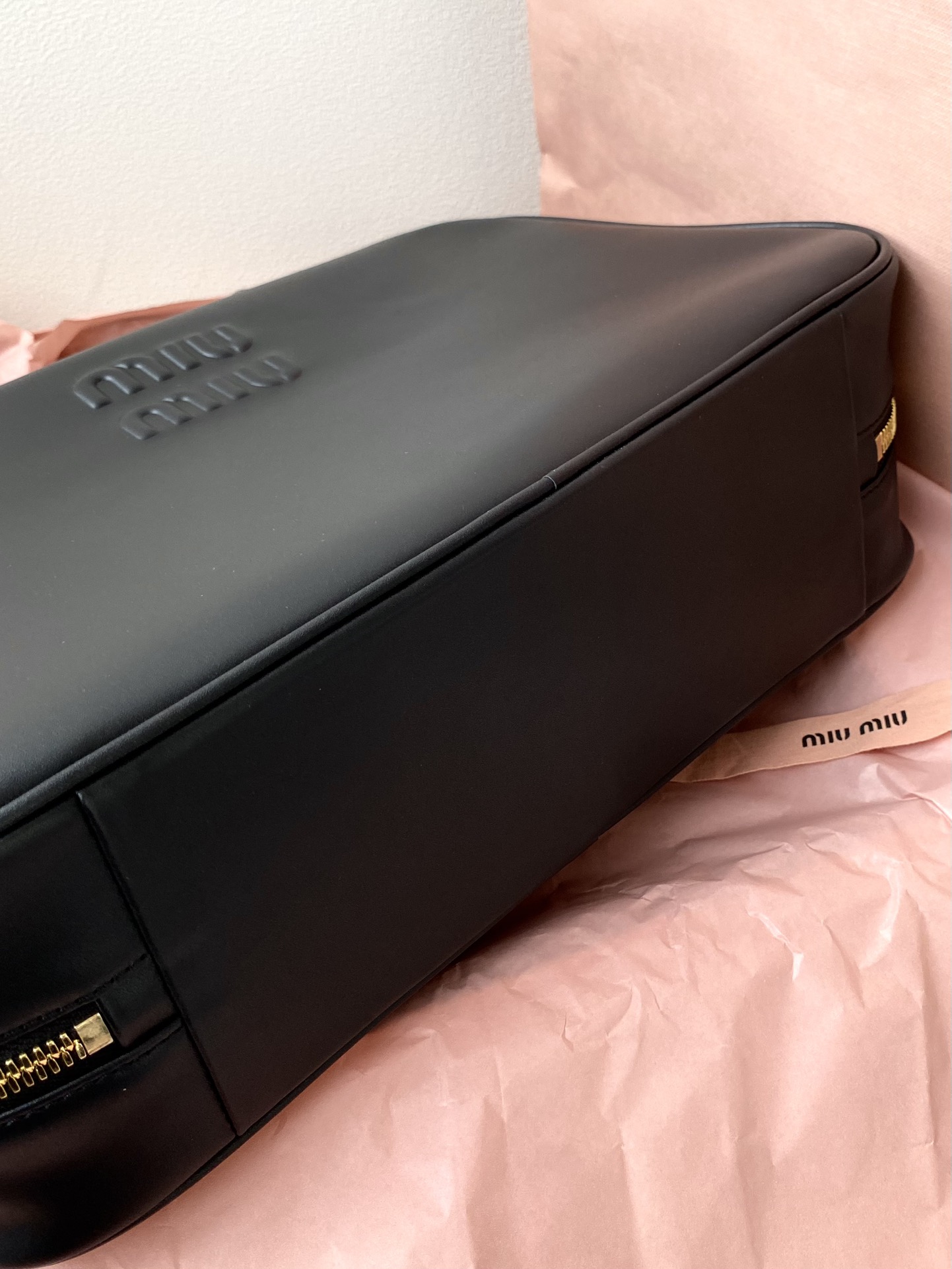 미우미우 마테라쎄 나파 가죽 토트백 블랙