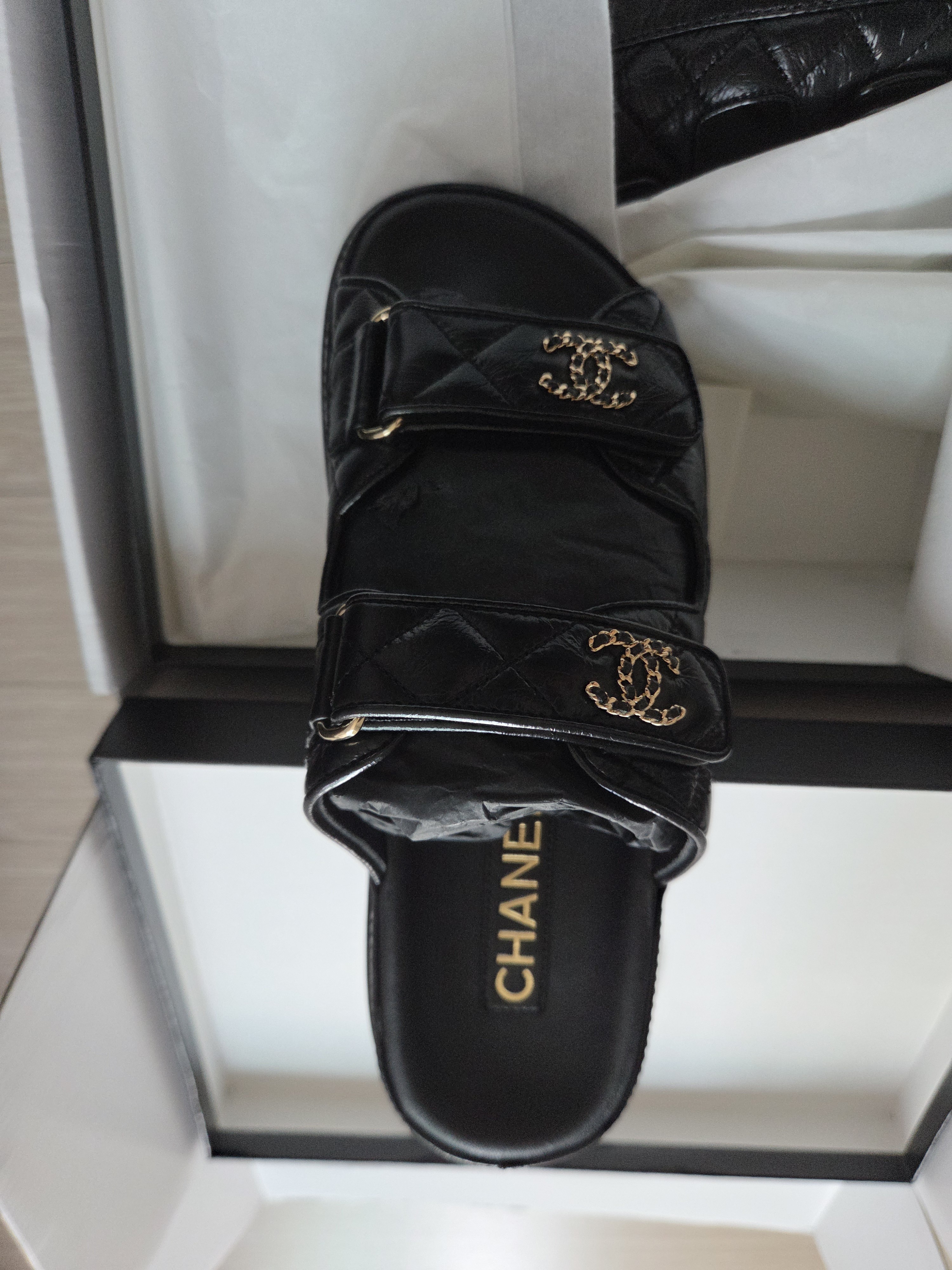 샤넬 CC로고 벨크로 뮬 샌들 슬리퍼 블랙