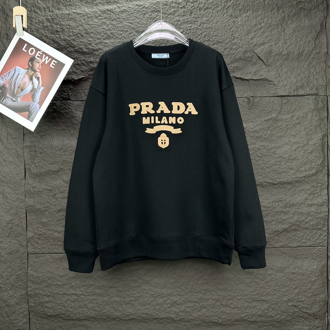 프라다 2024 문자 로고 라운드넥 스웨트 셔츠 (블랙,화이트)