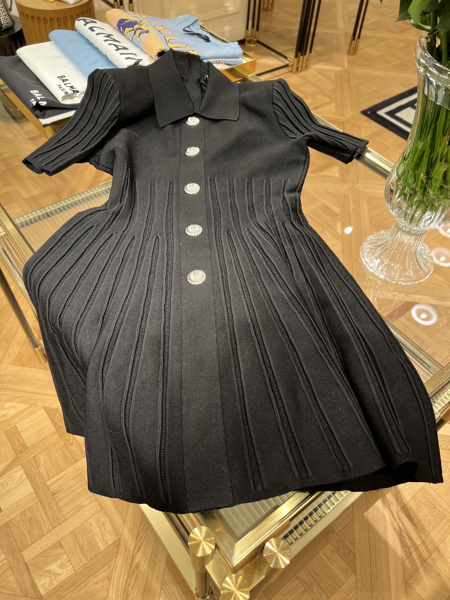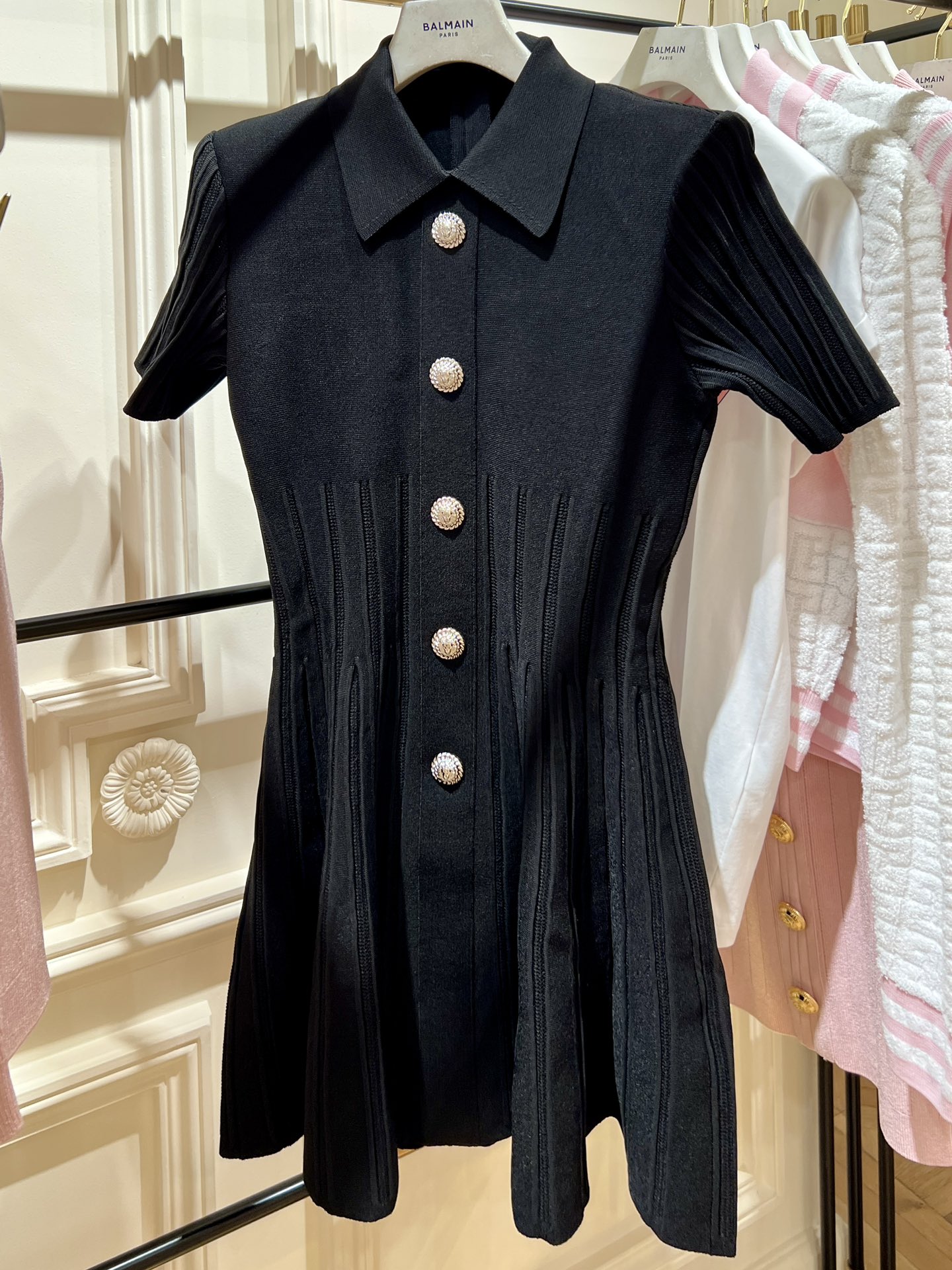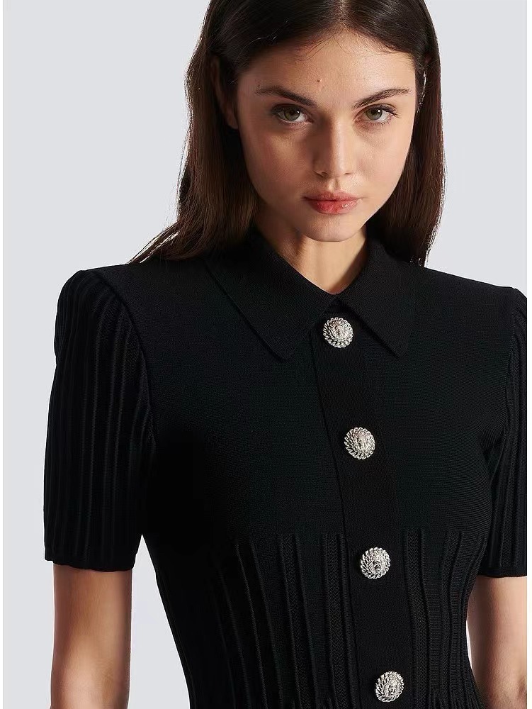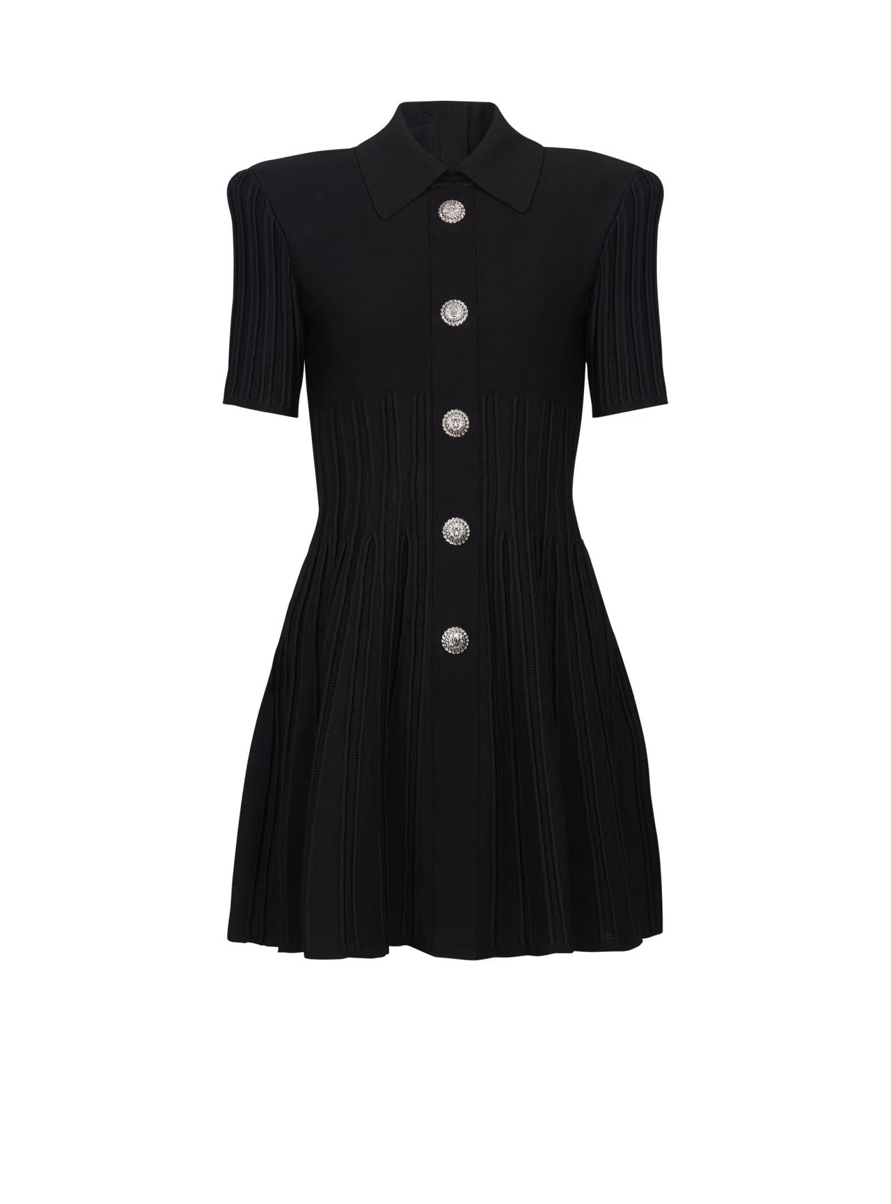 발망 버튼 디테일 플레어 니트 드레스 > 드레스/원피스
