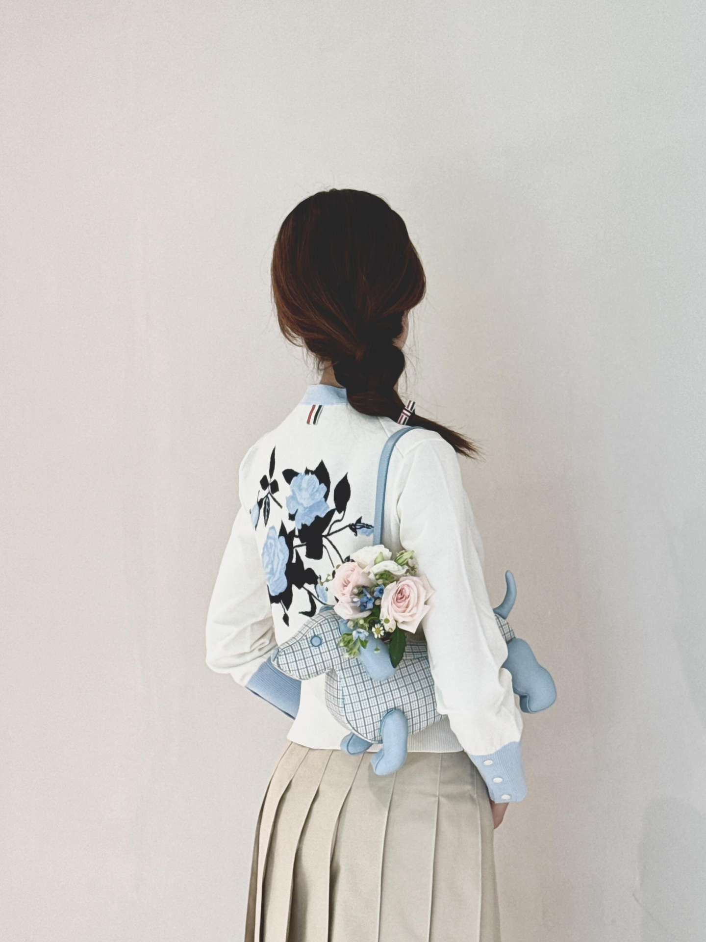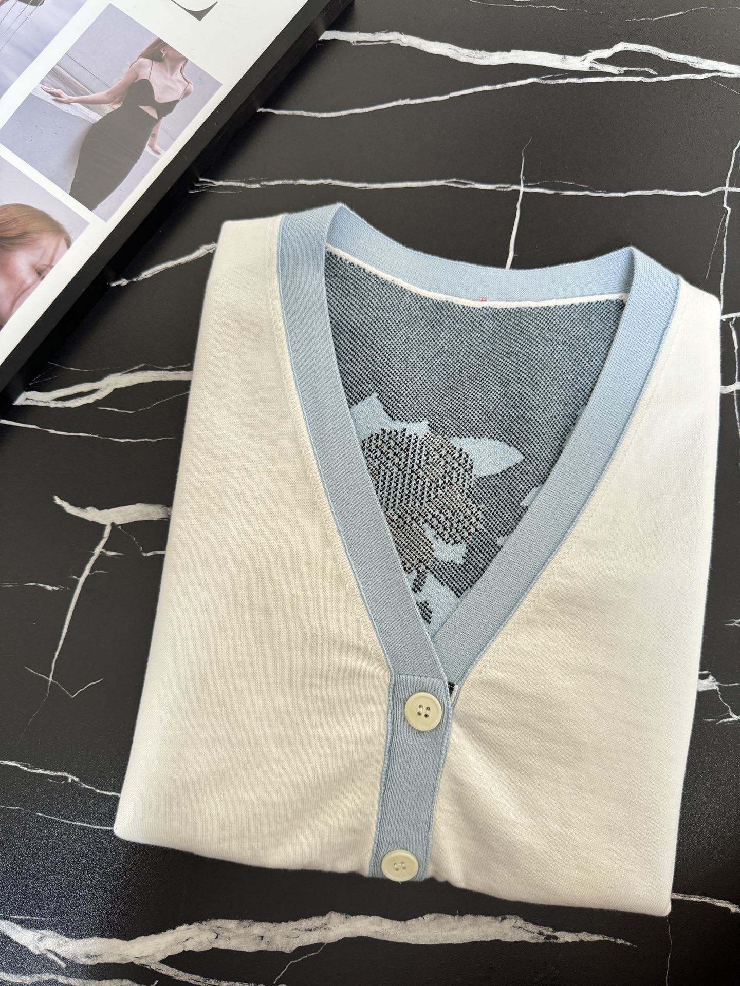 셀린느 페어 아일 가디건 모헤어 실크 블루 오프 화이트