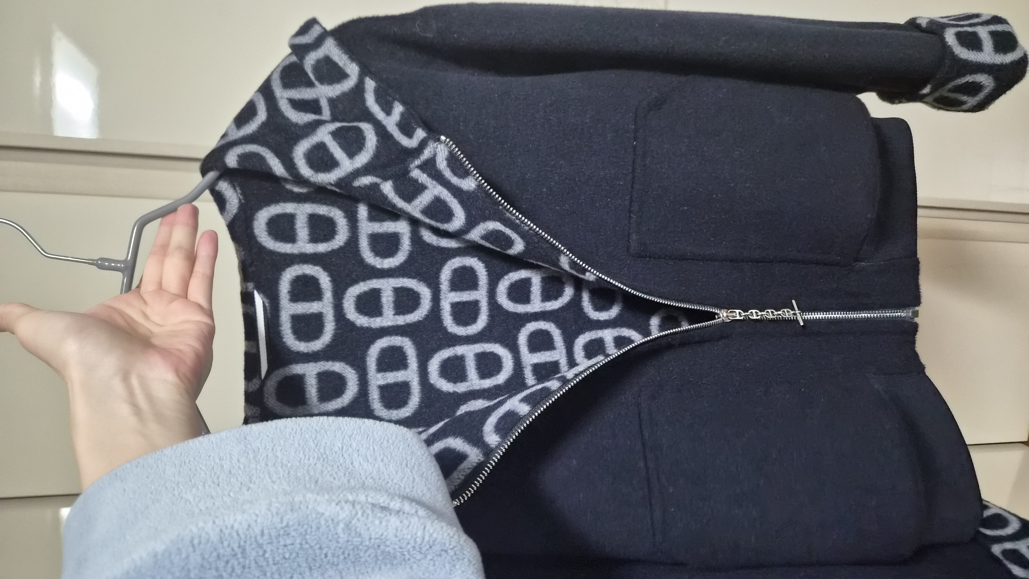 에르메스 피그 코 링 캐시미어 집업 쇼트 코트