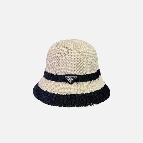 프라다 배색 아이보리 니트 버킷 햇