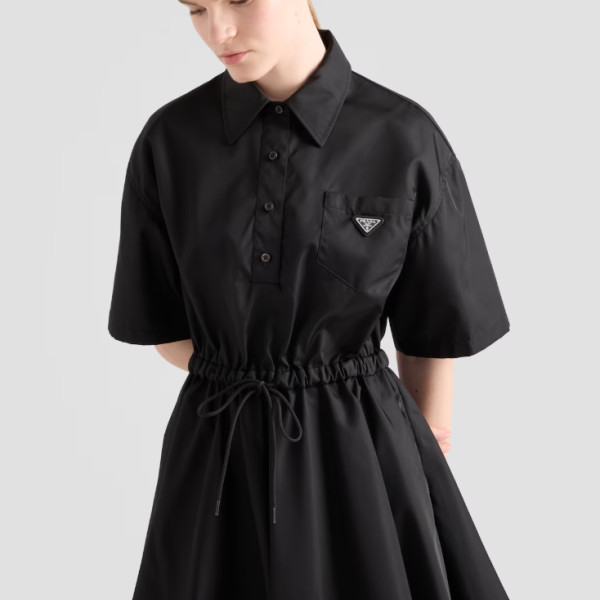 프라다 쇼트 슬리브 리나일론 드레스