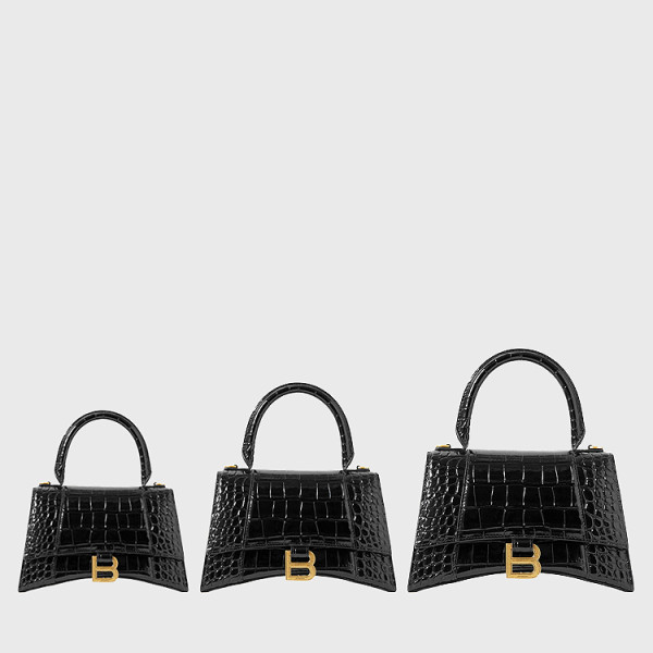 발렌시아가 아워글래스 크로커다일 엠보싱 블랙/골드 탑 핸드백