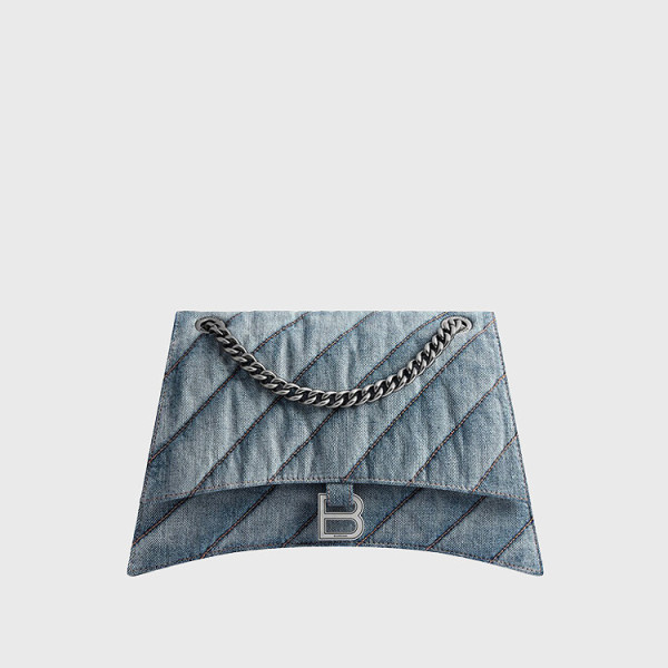발렌시아가 CRUSH 퀼팅 데님 미디엄 체인 숄더백