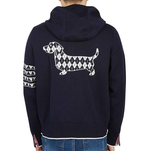 톰브라운 코튼 헥터 자카드 후드 집업 (네이비,그레이)